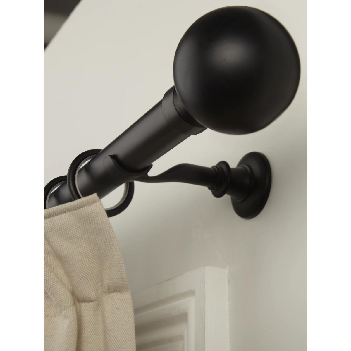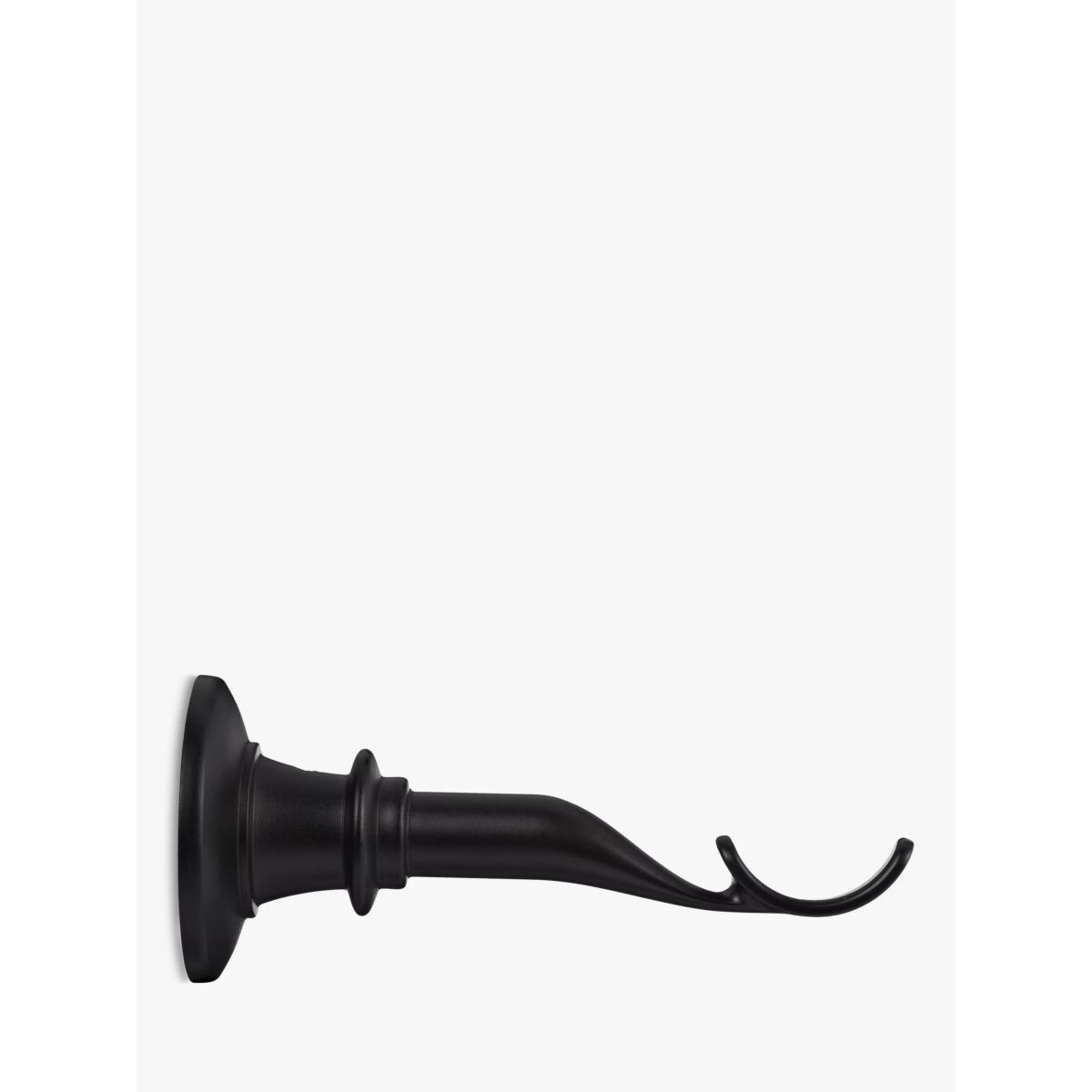 An essential accessory for allowing a curtain to pass over rather than stop at a wall bracket, to be used in conjunction with the black 28mm curtain pole and passing rings (both available separately). Suitable for use with bay windows or long pole runs, this traditional version has ornate curves. Sold singly. Polished to a smooth finish, this range of jet black curtain poles and accessories will introduce a good-looking monochrome element to your décor. Discreet when paired with a neutral, homely palette and chic when styled with fabulously luxe soft furnishings and trimmings, it creates a winning look in a contemporary home. Please note that this range is not suitable for damp or humid conditions.