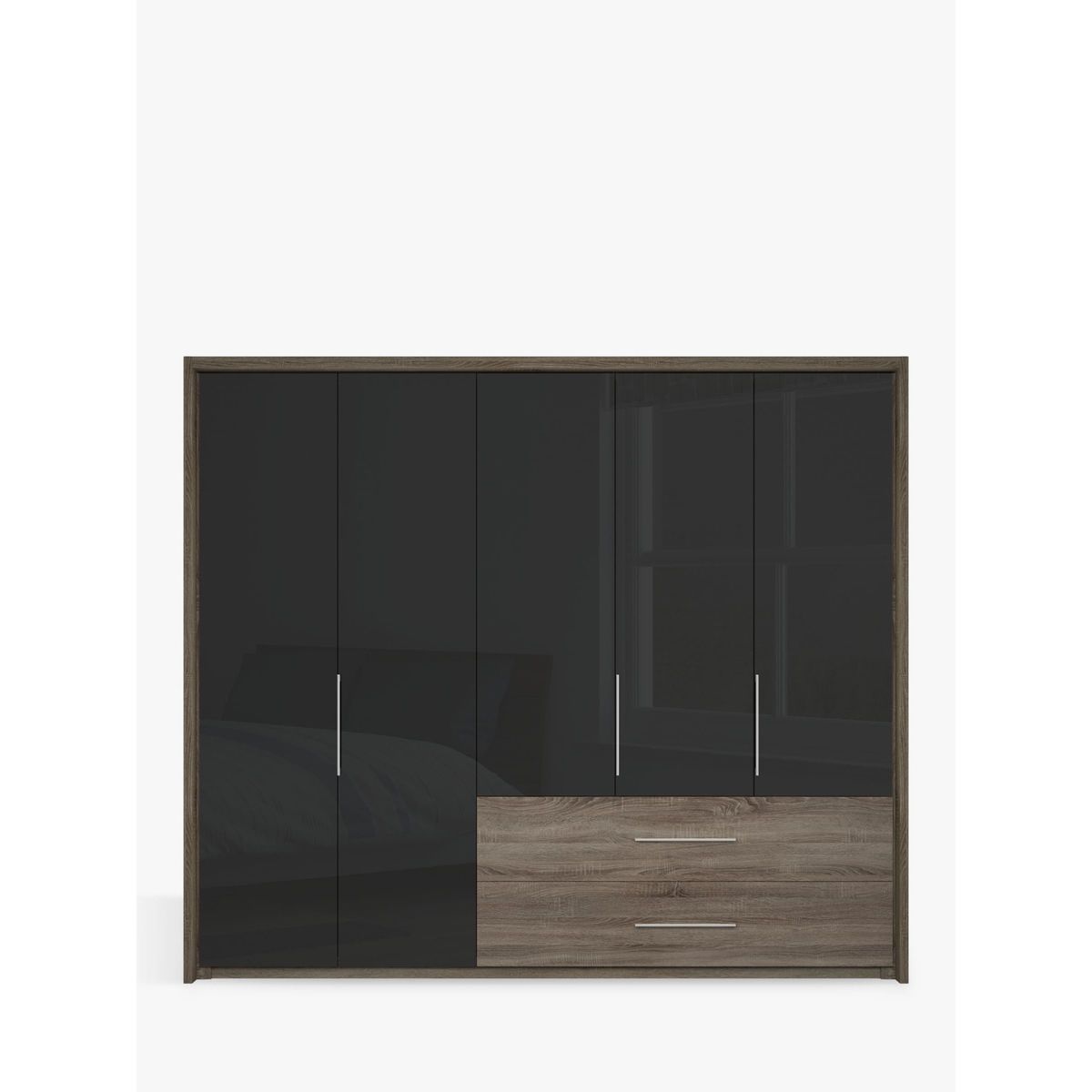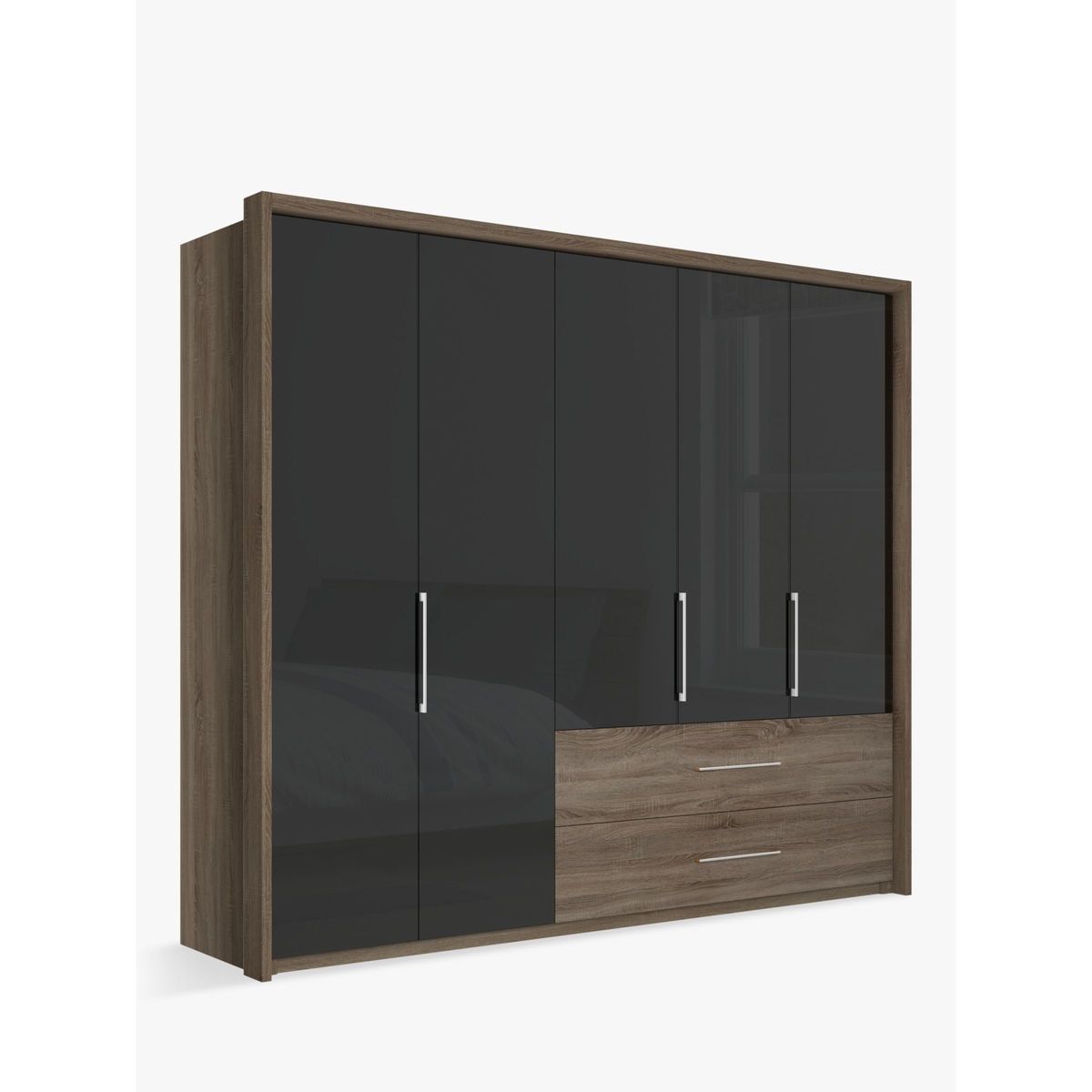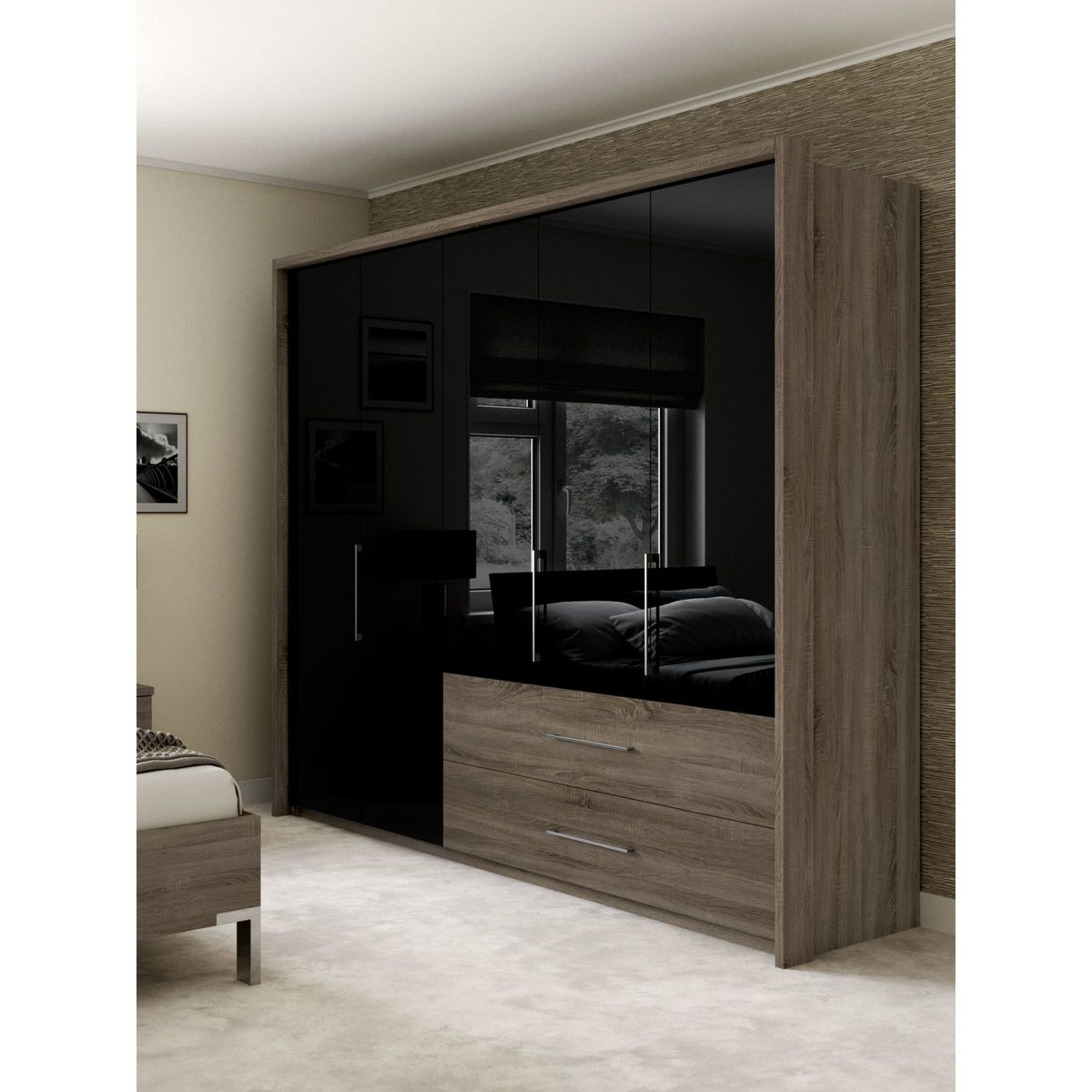 The sleek styling of this Satis wardrobe would look the part in any contemporary bedroom. This wardrobe is a stylish contrast of rustic wood effect and glass doors, helping to bring warmth and tactility to the design. Light Rustic Oak and Dark Rustic Oak wood frame finishes are paired with coloured glass for extra attractive detailing. All wardrobes have a light maple interior and each compartment comes with 2 shelves and a hanging rail, all fully adjustable to your preference. Soft close hinged doors are fitted as standard. For extra storage, two pull-out drawers beneath the doors offer additional space for clothes, accessories and other belongings.