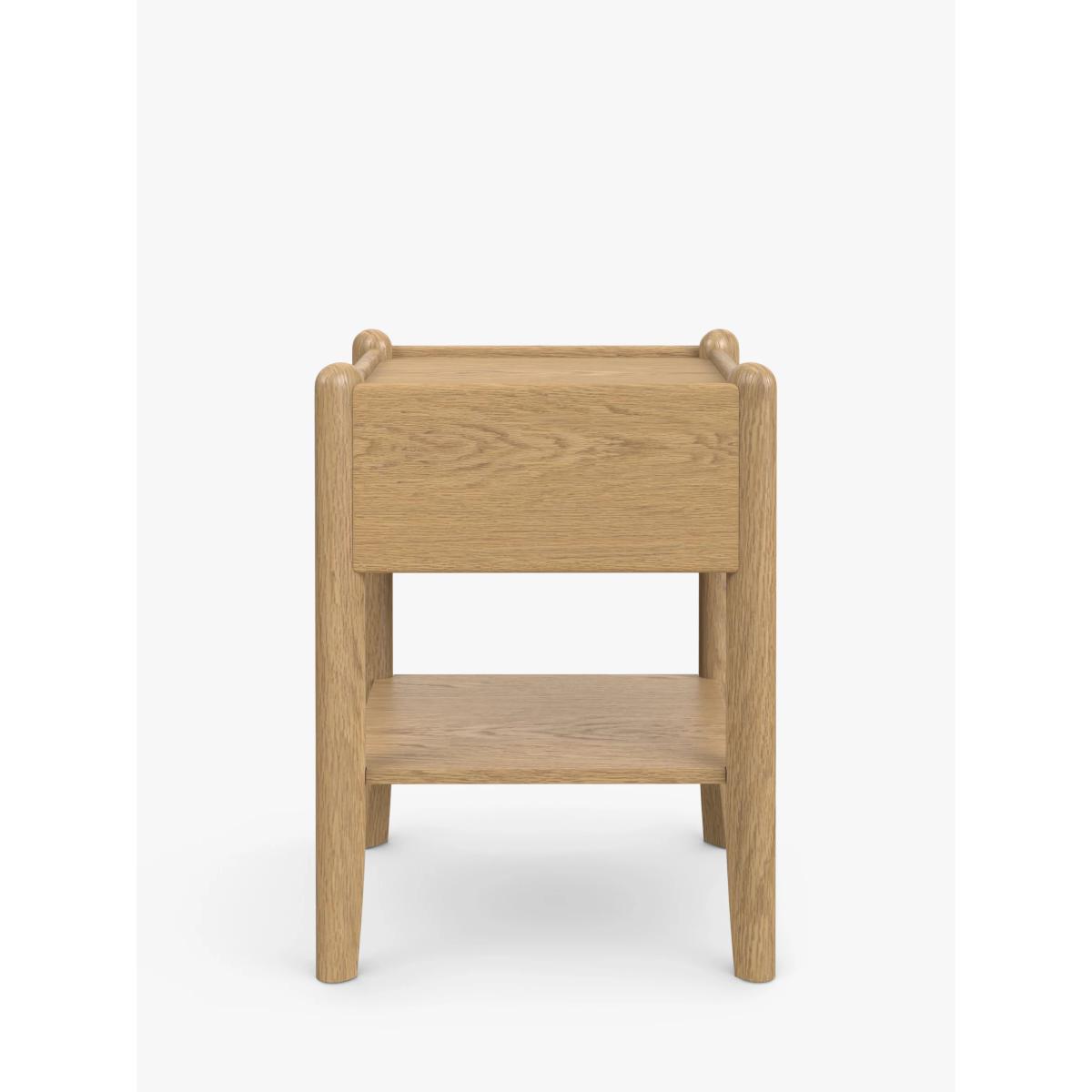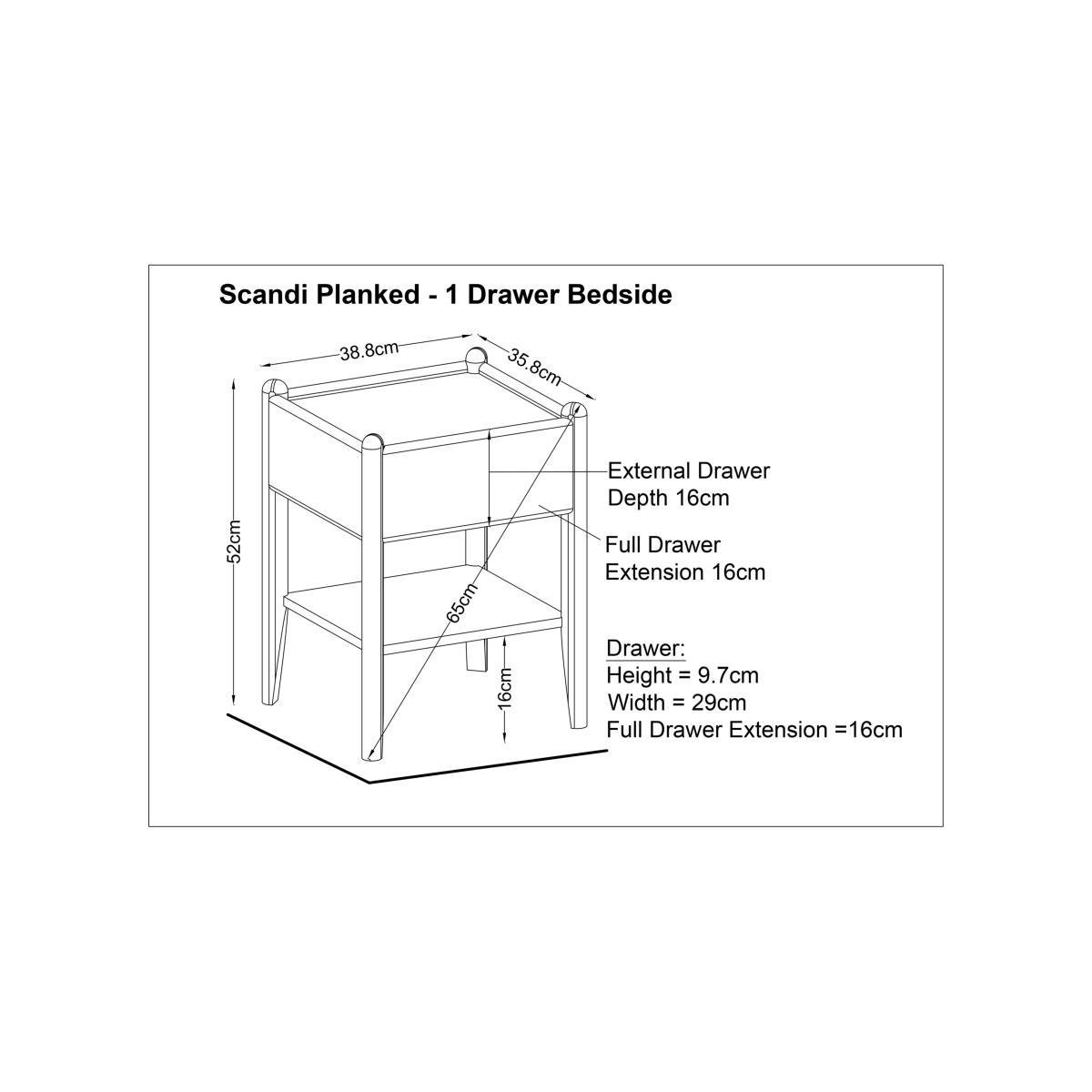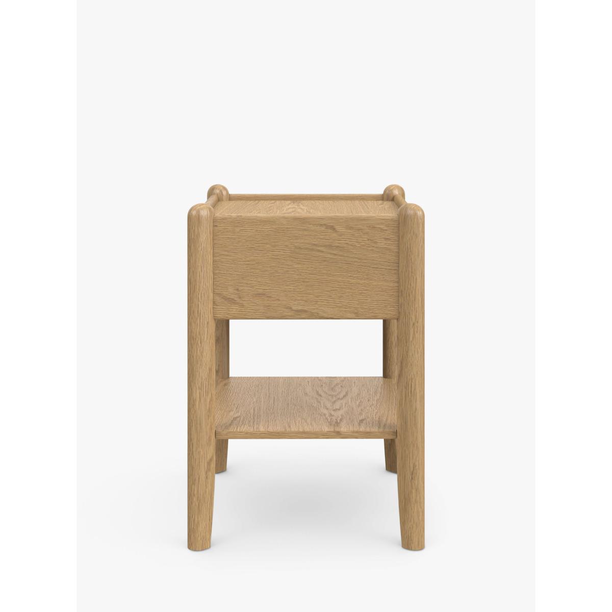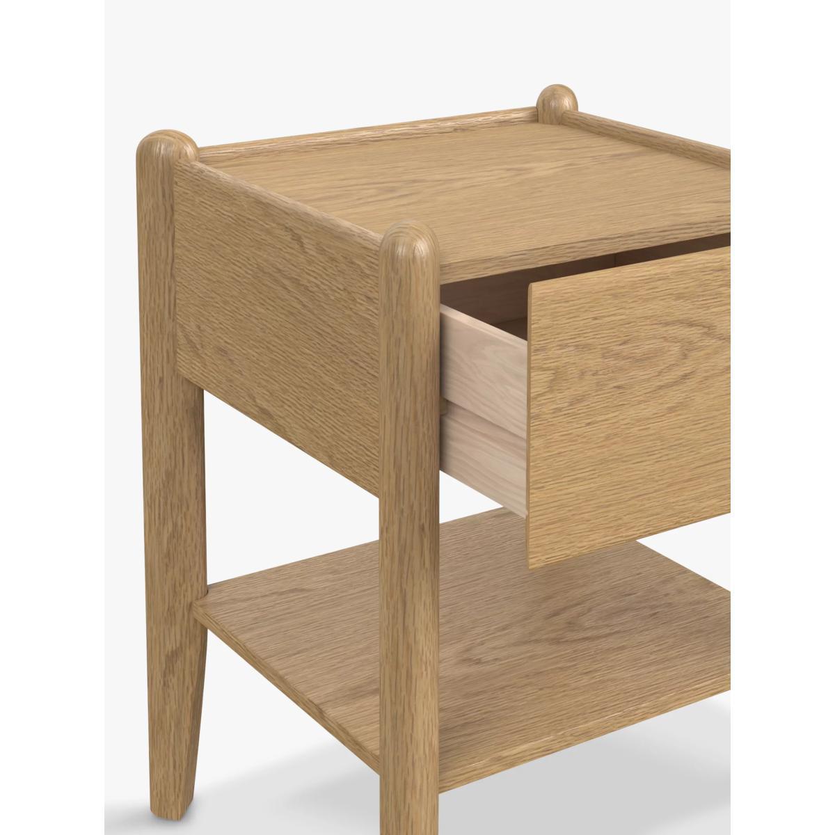 Our Scandi range of bedroom furniture is a celebration of natural and minimalist design, built from solid oak and oak veneers. This bedside table is brilliant if space is limited. With a single storage drawer and lower shelf, it's just the right size for your bedside essentials. Its rounded posts, tapered legs and sleek, handle-less drawer all honour Scandi design principles, so it's perfect for keeping your bedroom a calm, uncluttered and simple space. Want to see it first? You may want to see and get a feel for the furniture in one of our shops before ordering. We'll be able to tell you where the range you'd like to view is on display.