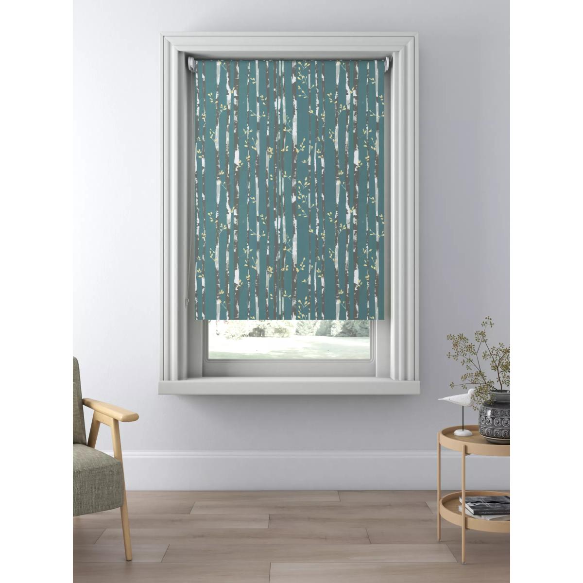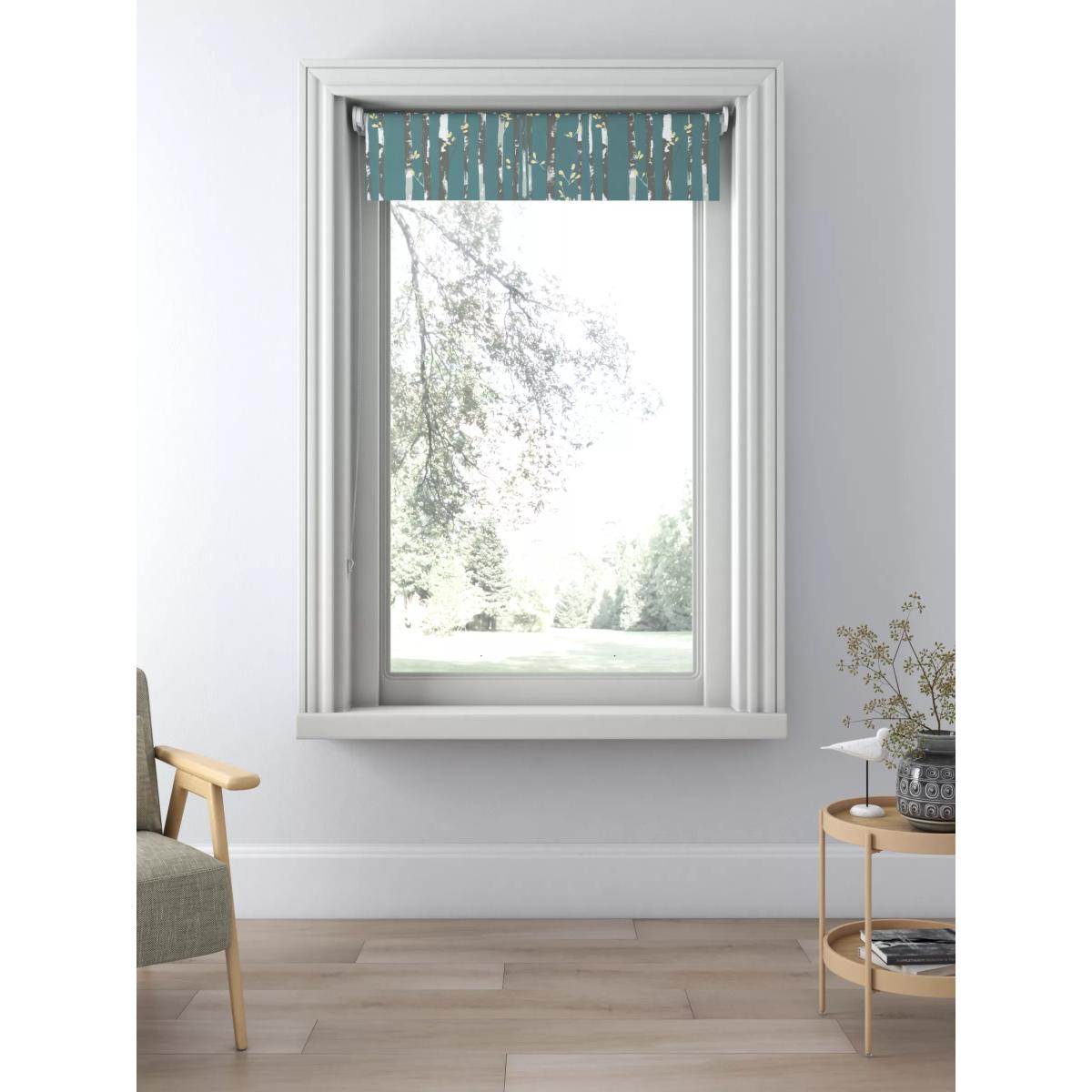 Our Scandi Lundby roller blind features slim and nearly bare tree trunks, just with the odd leaf growing giving the suggestion that spring is coming. It's a blackout blind which means it eliminates light and gives complete privacy. You can get a sound night's sleep and not be disturbed by the early rising sun in the summer months. Key features: Can be installed either inside or outside the window recess, to the wall or ceiling Can be standard or reverse rolled. Standard gives a close fit to the window, helping eliminate light. Reverse brings the material forward over the roll which conceals it and creates space between the blind and window Chain mechanism can be attached on the left or right-hand side, without affecting the way the blind is rolled Width can be cut to size Supplied with easy fit universal brackets Includes safety devices to keep children safe Warm in winter, cool in summer As the blackout lining on this blind blocks out sunlight it helps keep your room cool as well as dark. This 3 layer blackout coating also adds an extra layer of insulation, giving the blind thermal properties which aren't found on non-blackout blinds. It protects against both heat loss and heat gain, regulating the temperature of your room so you're kept warm in winter and cool in summer. Worth knowing... The width stated in our product specifications is the total width of the blind including mechanisms and brackets. The width of the fabric alone will be a few centimetres less than this. Safety warning Young children can be strangled by loops in pull cords, chains, tapes and inner cords that operate the product. To avoid strangulation and entanglement, keep cords out of the reach of young children - cords may become wrapped around a child's neck Move beds, cots and furniture away from window covering cords Do not tie cords together. Make sure cords do not twist and create a loop More information on child safety can be found on our Child Safety Hub