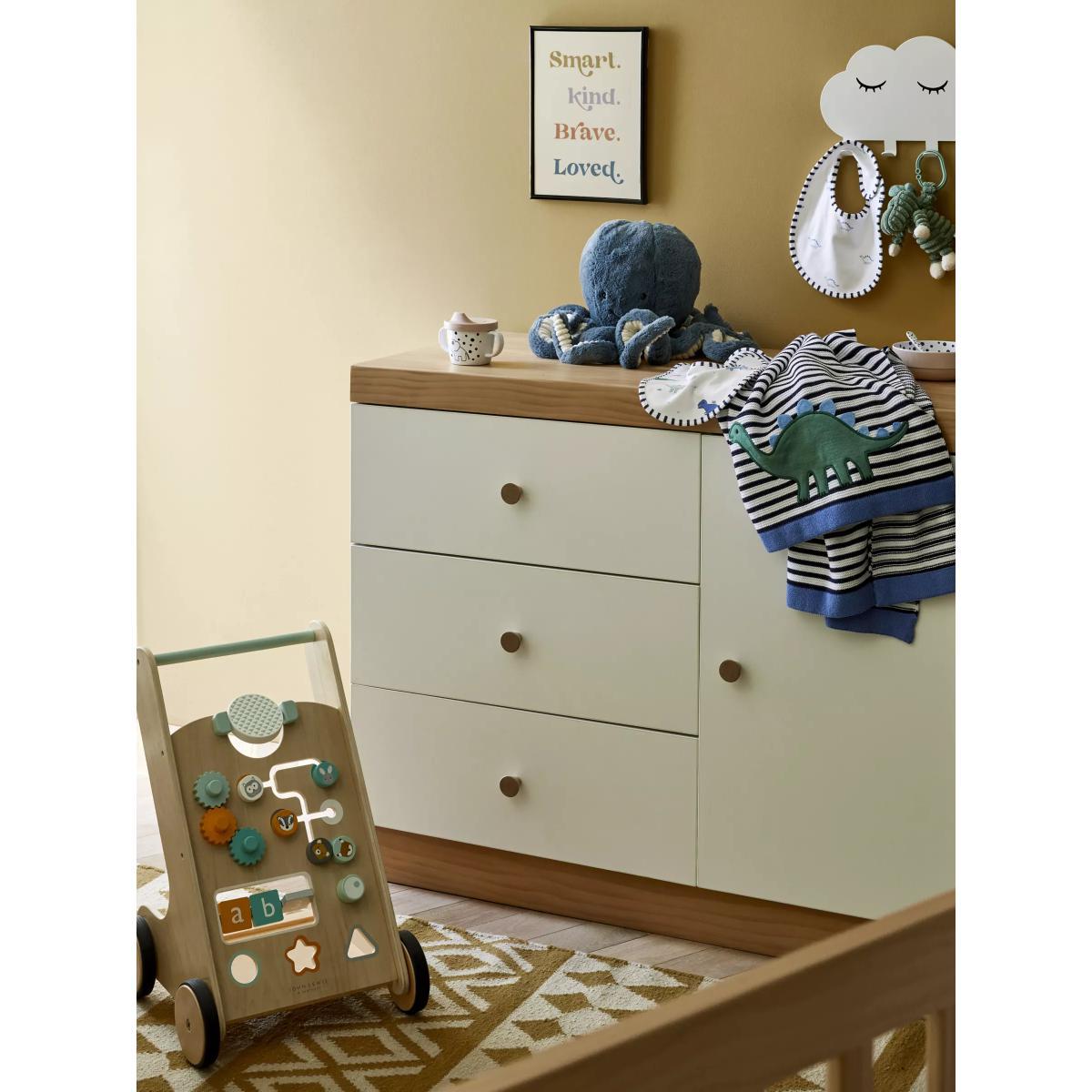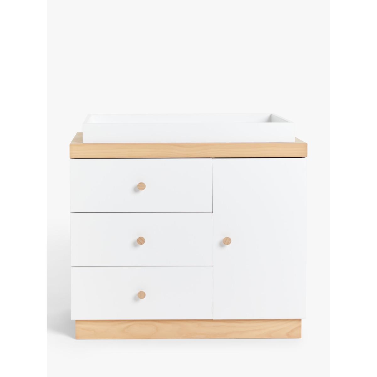 I love the John Lewis & Partners Scandi solution dresser for its clean, minimal design and practical layout. The white and natural wood finish make it versatile for a range of nursery or children's room styles, from Scandi-inspired to contemporary or even more eclectic interiors. It works particularly well in spaces that aim for a calm, uncluttered feel. For styling, I recommend pairing it with soft pastel accessories or textured storage baskets to add warmth and personality. It’s practical too, with spacious drawers perfect for organising clothes, nappies or toys, making it an ideal combination of style and function for a child's room.