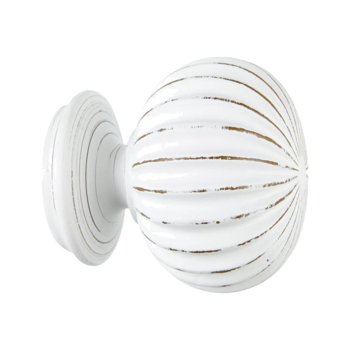 A pumpkin finial for the 35mm scratched-effect white wood curtain pole (available separately). This finial will add approximately 70mm to the length of the pole once attached.
