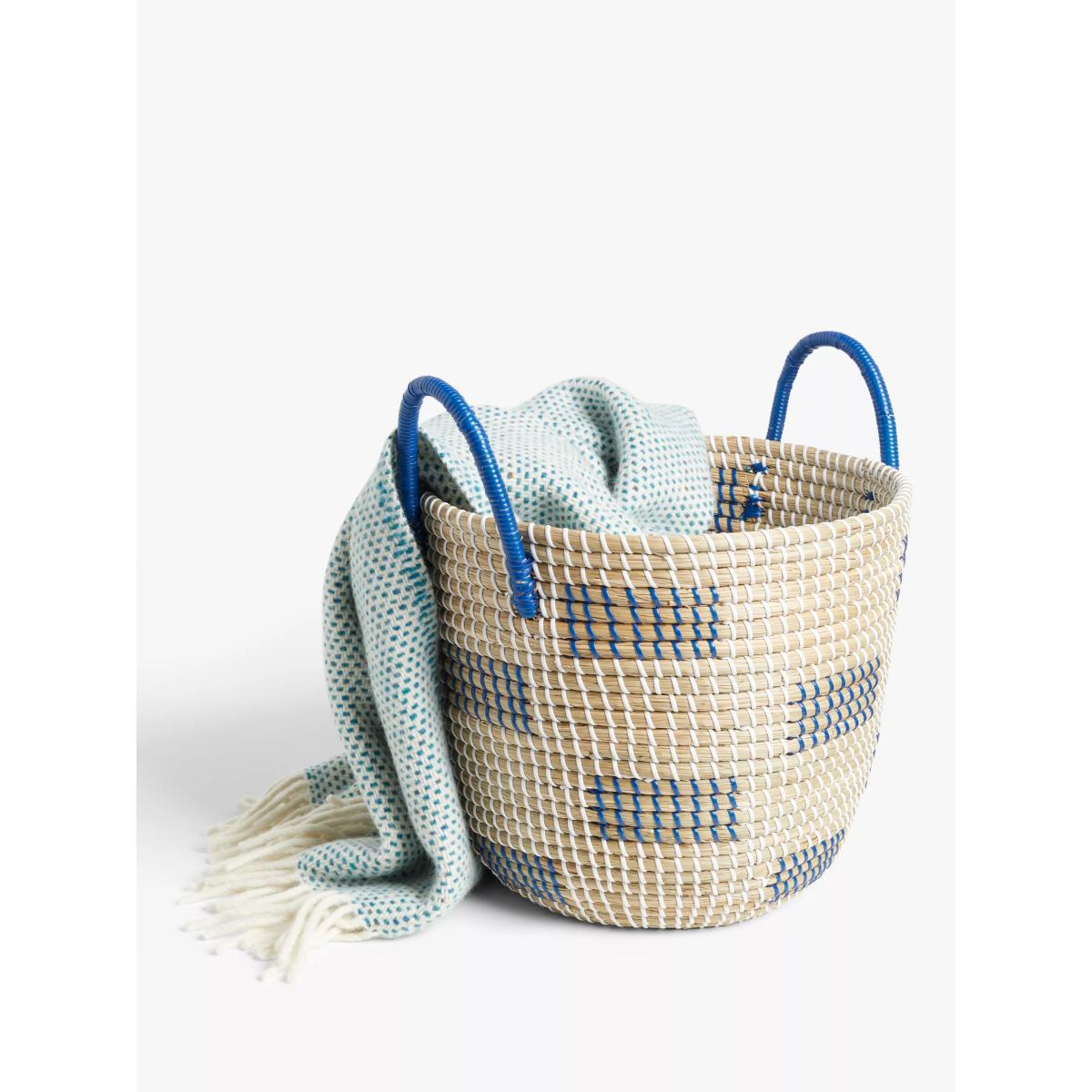 John Lewis & Partners Seagrass Basket with Handles, Natural / Blue