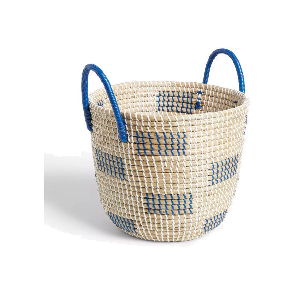 Perfect for storing craft materials, or a cosy blanket beside your bed or sofa, this seagrass basket is woven with blue plastic string for an eye-catching finish. Fast-growing seagrass is hand-woven by highly skilled artisans. Its durability and strength make it ideal for basket-weaving.