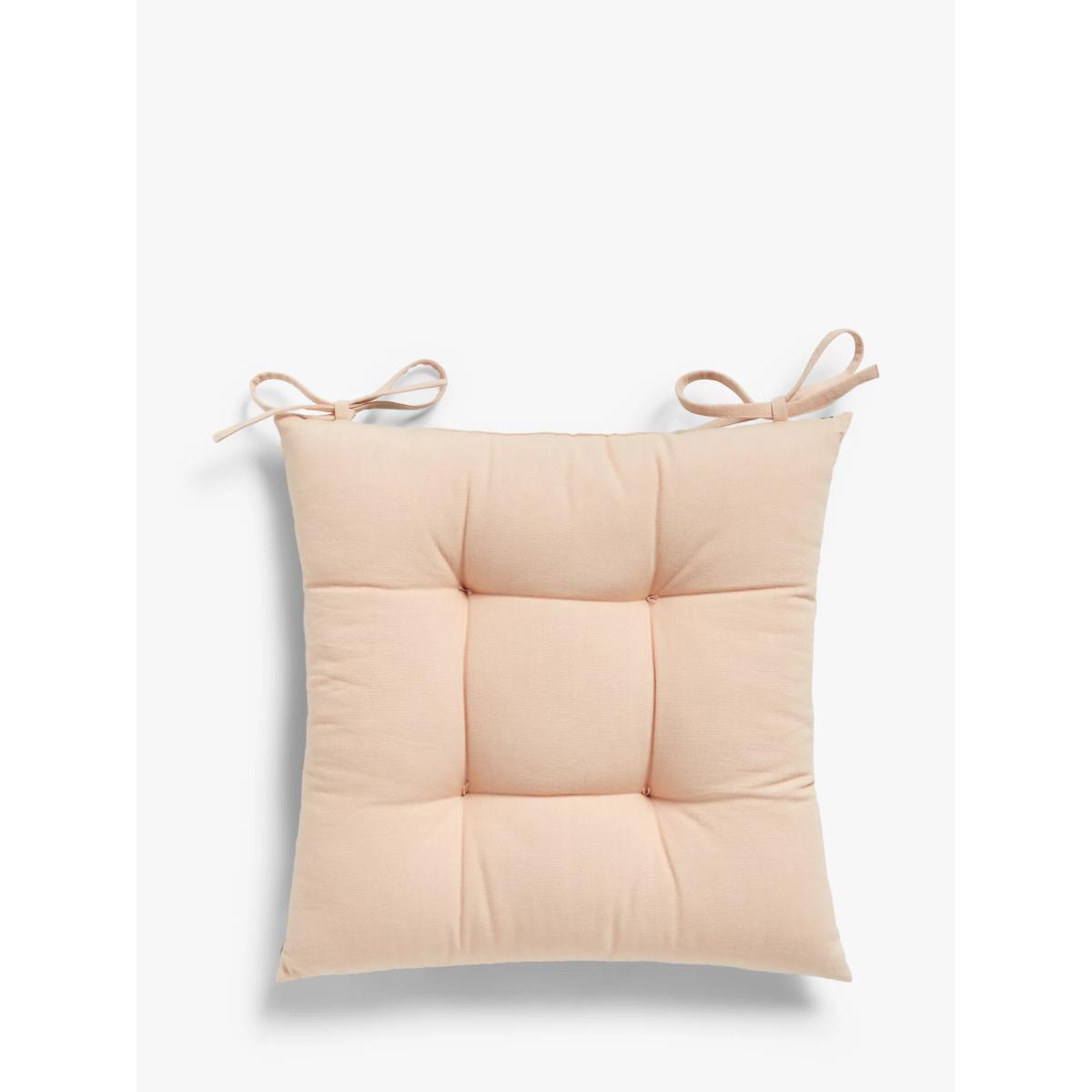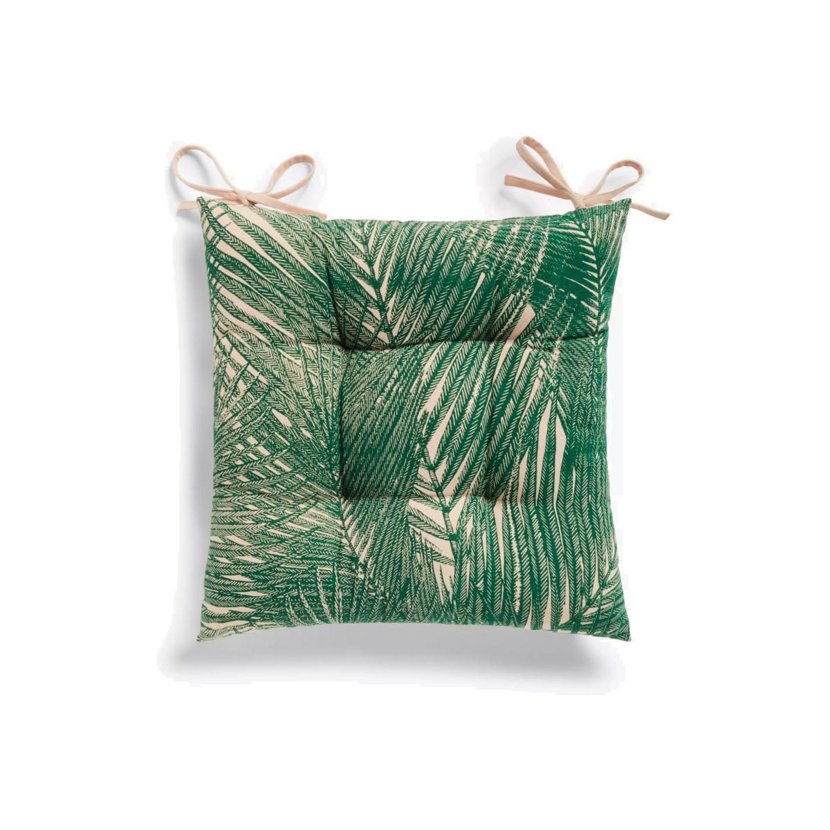 This polyester-filled seat pad has a hand screen printed palm leaf fabric on the front and a pale pink reverse. It can be used with either side facing upwards.