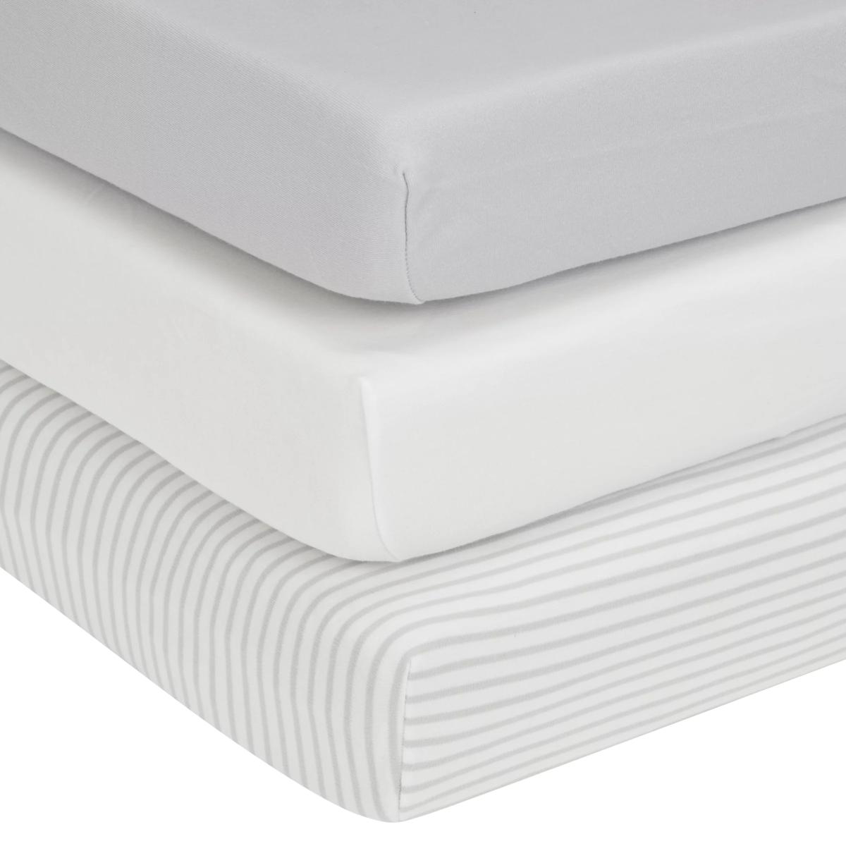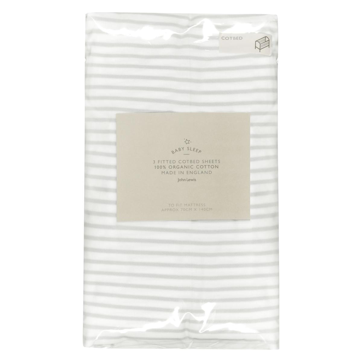 John Lewis & Partners Seconds GOTS Organic Fitted Cotbed Sheets, 3 Pack, Grey/Stripe