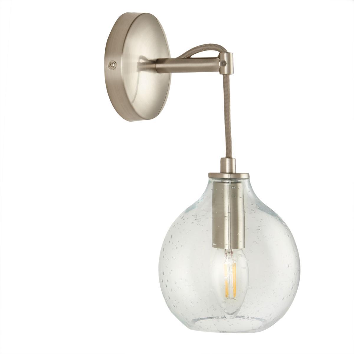 Part of the Selsey family, this wall light has a beautiful cloche design. Each piece is unique, as the stunning, lake blue bubble glass is hand-blown. Based on the Czech technique of using bubbles to create a decorative effect, this natural "imperfection", exquisitely crafted, results in the perfect light effect being created. Elegant and eye-catching, use with LED filament bulbs to maximize the decorative appearance.