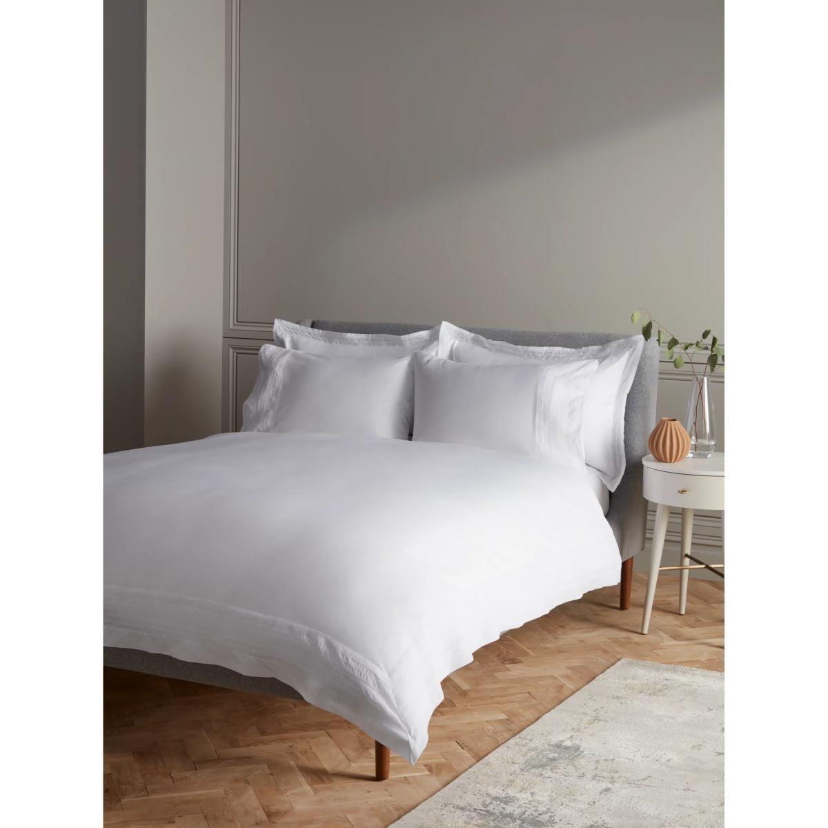Fresh and simple, this 300 thread count white bedding is finished with embroidery stripe detailing for a crisp and clean look that will never date. The naturally breathable fabric will help keep you cool and comfortable all night long. Please note that duvet covers and pillowcases are available to purchase separately and not in sets. Bedding sizes To fit duvet/pillow size (cm) Standard pillowcase, L75 x W50cm Oxford pillowcase, L75 x W50cm (excluding trim) Single duvet cover, L200 x W135cm Double duvet cover, L200 x W200cm King duvet cover, L220 x W225cm Super king duvet cover, L220 x W260cm