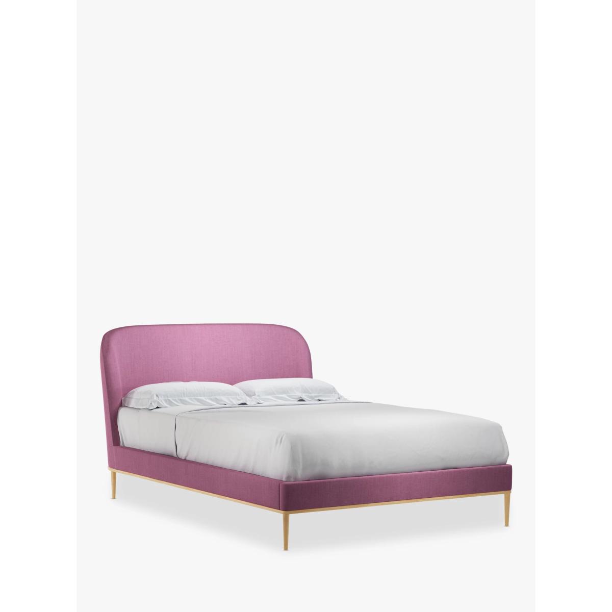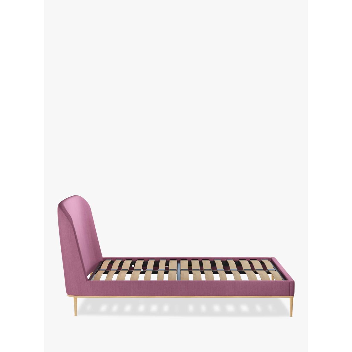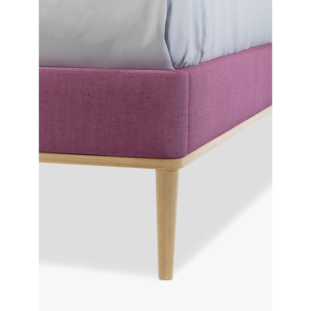 A modern design that incorporates sleek lines and smooth curves, our Show-Wood bed frame will bring a softer style to your bedroom. It's supported by tapered legs and we've added sprung slats to the base for extra support. Available to order in a choice of fabrics. Built with Smart Slats This bed frame is designed with wider slats at the shoulders, lumbar and feet. They provide maximum support for you and your mattress so that you experience perfect spinal alignment while you sleep. The standard slat caps are black so we have added grey slat caps to ensure that you know where to place the wider slats. Choose from one of our fabrics: Our Band A fabric, Topaz is woven to create a linen-effect feel Our Band A fabric, Saga is woven with man-made fibres, making it exceptionally durable and versatile Our Band B fabric, Erin has a velvet-style, chenille feel. It's woven with man-made fibres to create a beautifully soft yarn and can appear two-tone in different lights Our Band B fabric, Opulence is a soft and luxurious velvet-like fabric Our Band B fabric, Mole is a soft and cosy woven wool-blend. Piling and bobbling may occur naturally over time Our Band B fabric, Relaxed Linen is durable, resilient and versatile, woven from man-made and natural fibres Our Band C fabric, Aquaclean Harriet is made from a short, dense pile of velvet that has a soft, brushed finish. An Aquaclean treatment has been applied to this resilient fabric which means you can banish the majority of household stains with water. The treatment covers every fibre with an invisible coating so it doesn't need to be retreated or re-coated. It will naturally develop lines, scuffs and shading over time. Want to see it first? You may want to see and get a feel for the furniture before ordering. Pop into one of our shops to see the full range of colours and fabrics on offer. We'll be able to tell you where the range you'd like to view is on display.