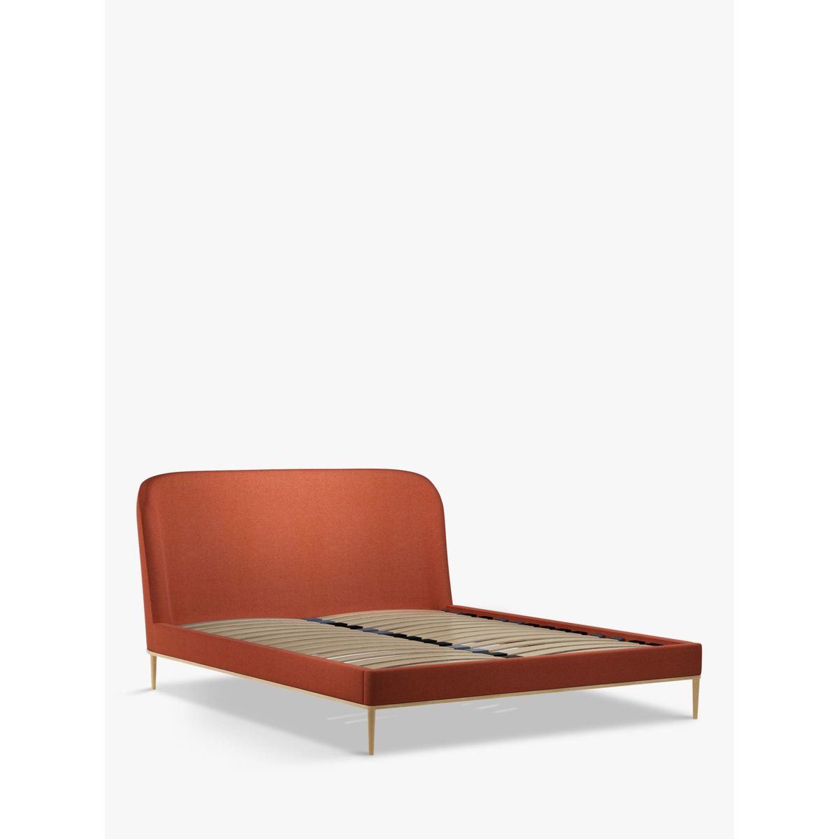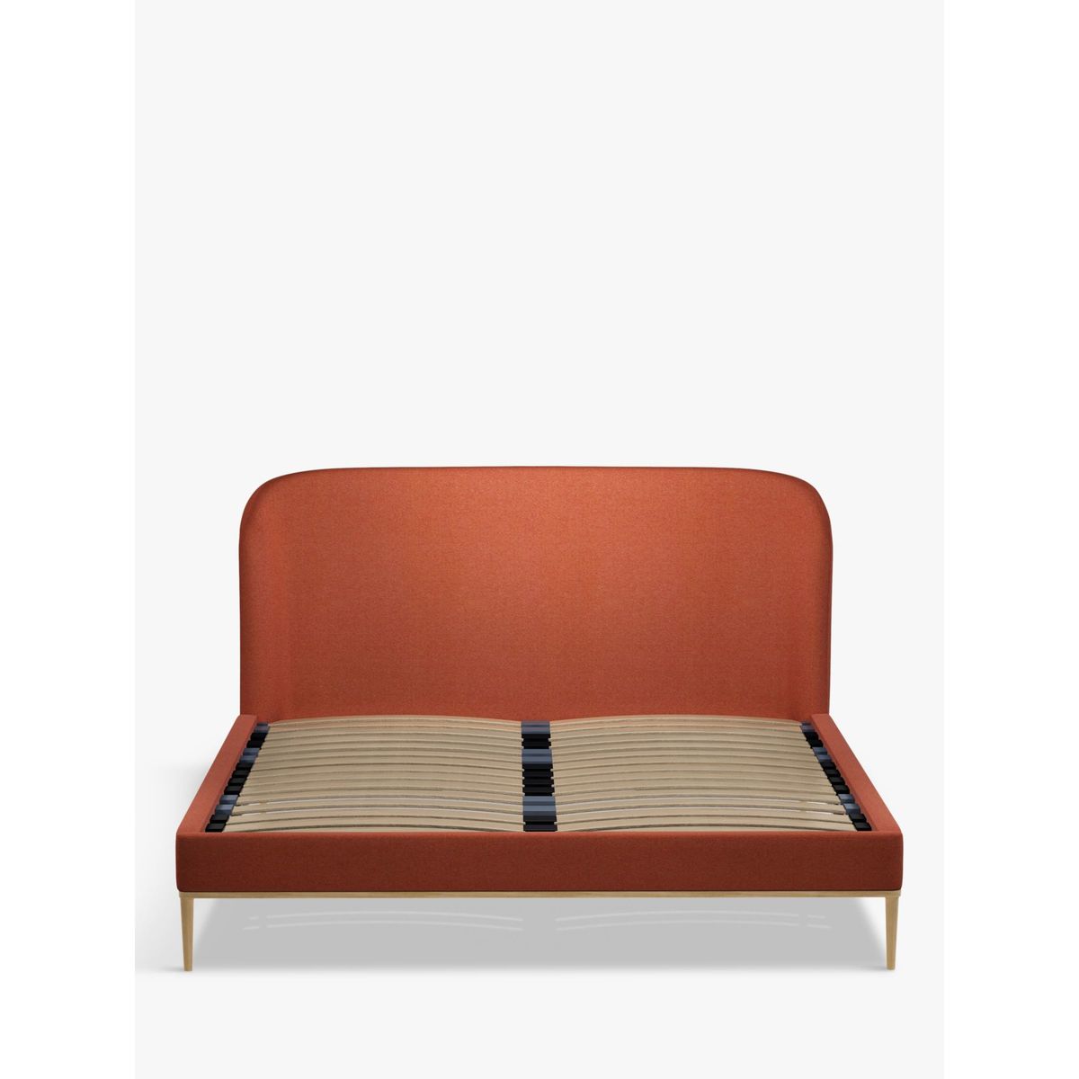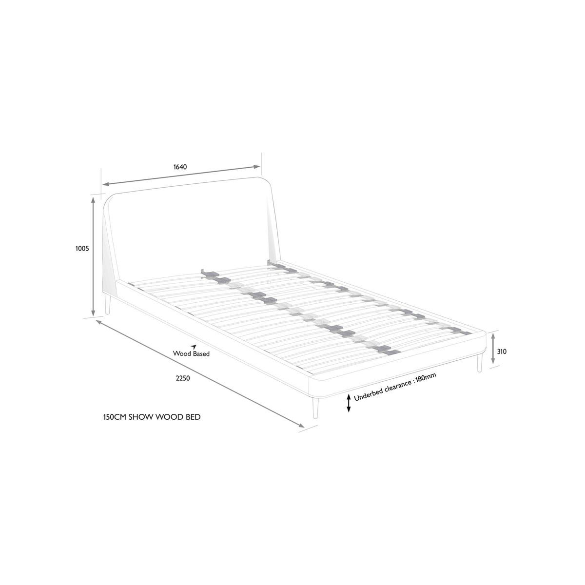 The Show-Wood bed frame has a strikingly modern profile, thanks to a curved headboard that's designed at a subtle angle for comfort. Showcasing an accent of wood at the base, it's supported by sleek legs and features sprung slats that offer additional support for you and your mattress. Smart Slats This bed frame is designed with wider slats at the shoulders, lumbar and feet, that provide maximum support for your mattress so that you experience perfect spinal alignment while you sleep. Standard slat caps are black so we have added grey slat caps to ensure that you know where to place the wider slats.