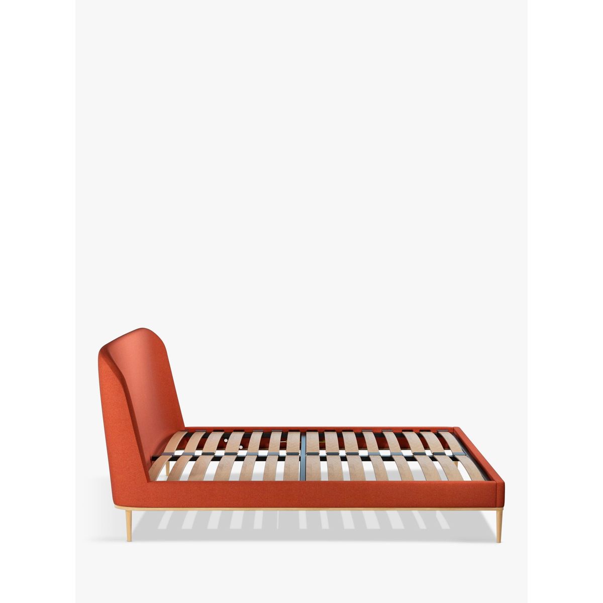 The Show-Wood bed frame has a strikingly modern profile, thanks to a curved headboard that's designed at a subtle angle for comfort. Showcasing an accent of wood at the base, it's supported by sleek legs and features sprung slats that offer additional support for you and your mattress. Smart Slats This bed frame is designed with wider slats at the shoulders, lumbar and feet, that provide maximum support for your mattress so that you experience perfect spinal alignment while you sleep. Standard slat caps are black so we have added grey slat caps to ensure that you know where to place the wider slats.