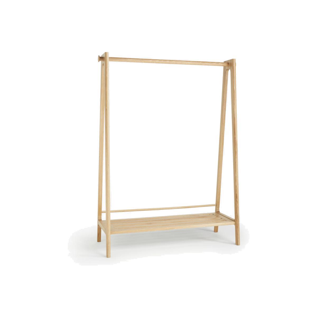 Our in-house designers focused on minimalist design, smooth shapes and soft curves when creating this clothes rail, which is made from solid European oak. Ideal if you have restricted cupboard space, its natural aesthetic won't make your room feel cluttered, and there's plenty of storage space thanks to an additional slatted lower shelf. Want to see it first? You may want to see and get a feel for the furniture in one of our shops before ordering. We'll be able to tell you where the range you'd like to view is on display.
