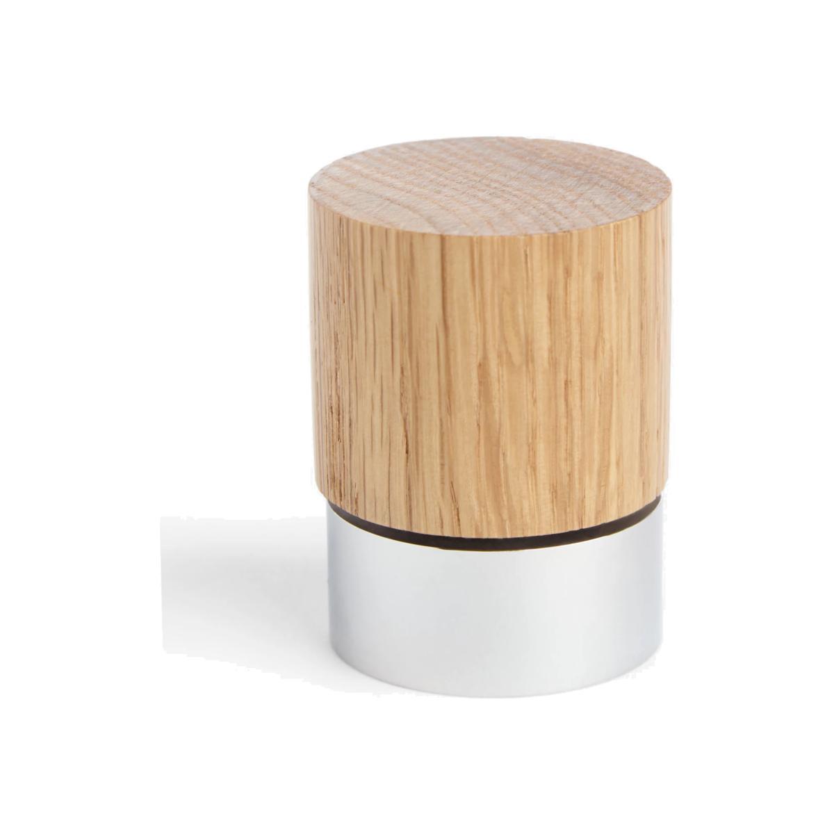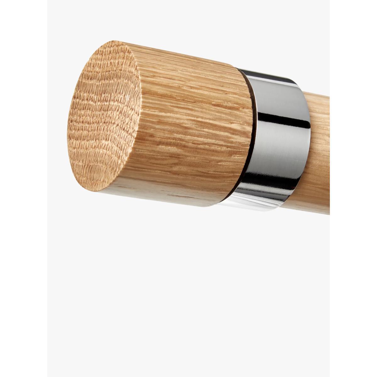 A contemporary curtain pole finial combining wood and metal. Suitable poles with a 35mm diameter.