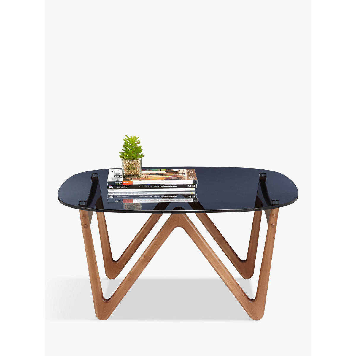 This sleek mid-century inspired coffee table is perfectly positioned in your living space to create a sophisticated aesthetic with real style appeal. Its opulent glass top is the perfect place to display books, magazines and decorative pieces, while the smooth wooden leg frame offers a distinctive finish.