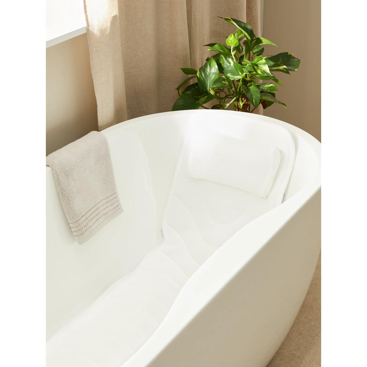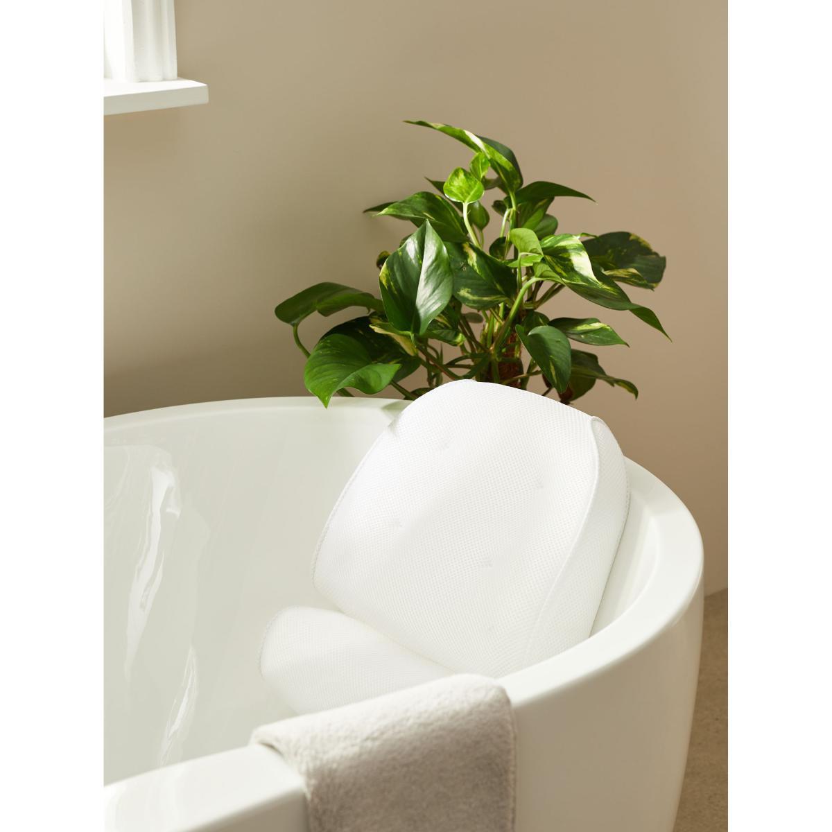 This bath pillow is designed to provide luxury, comfort and relaxation in the bath. It's clever suction cups keep it in place during use and it comes with its own wash and storage bag. Plus, it has a quick-drying cover. Suitable for regular washing Washable at 40°C, allowing for an effective clean that's much kinder to the environment. We recommend washing this pillow in the provided wash and storage bag.