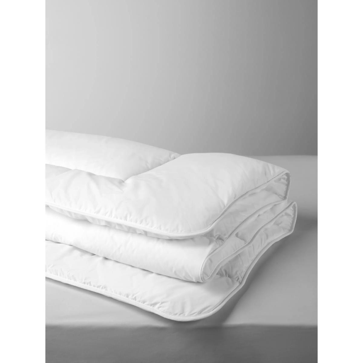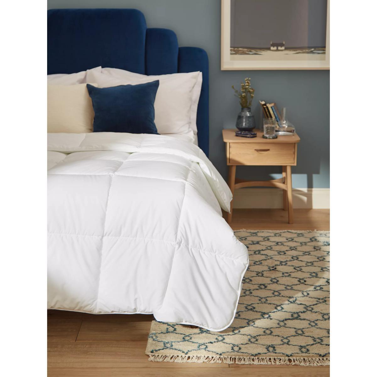 This luxurious vegan-friendly duvet is filled with 100% recycled blown-fibre clusters and is encased in a multi-pocketed construction which mimics a feather and down duvet, creating blissful warmth without weight. This product has not been tested on animals, doesn't contain any animal-derived ingredients and is registered with The Vegan Society. Warmth without weight This premium filling creates an airy and open structure that traps heat, so it gives excellent insulation while being much lighter. This means you feel perfectly warm, without being weighed down. More sustainably sourced We always strive to obtain raw materials from more sustainable sources. This product is made with recycled materials, certified as fully traceable and adhering to environmental, social and labelling requirements, at all points in the supply chain. By buying cotton products from John Lewis & Partners, you're supporting more sustainable cotton farming through the Better Cotton Initiative. BCI is a not-for-profit organisation which exists to make global cotton production better for the people who produce it, better for the environment it grows in, and better for the sector's future. BCI works with partners around the world such as WWF, Solidaridad and Cotton Connect to train farmers to produce cotton more sustainably. Better Cotton is sourced via a principle of mass balance and is not physically traceable to end products. However, BCI Farmers benefit from the demand for Better Cotton in equivalent volumes to those we source. Learn more about mass balance here.
