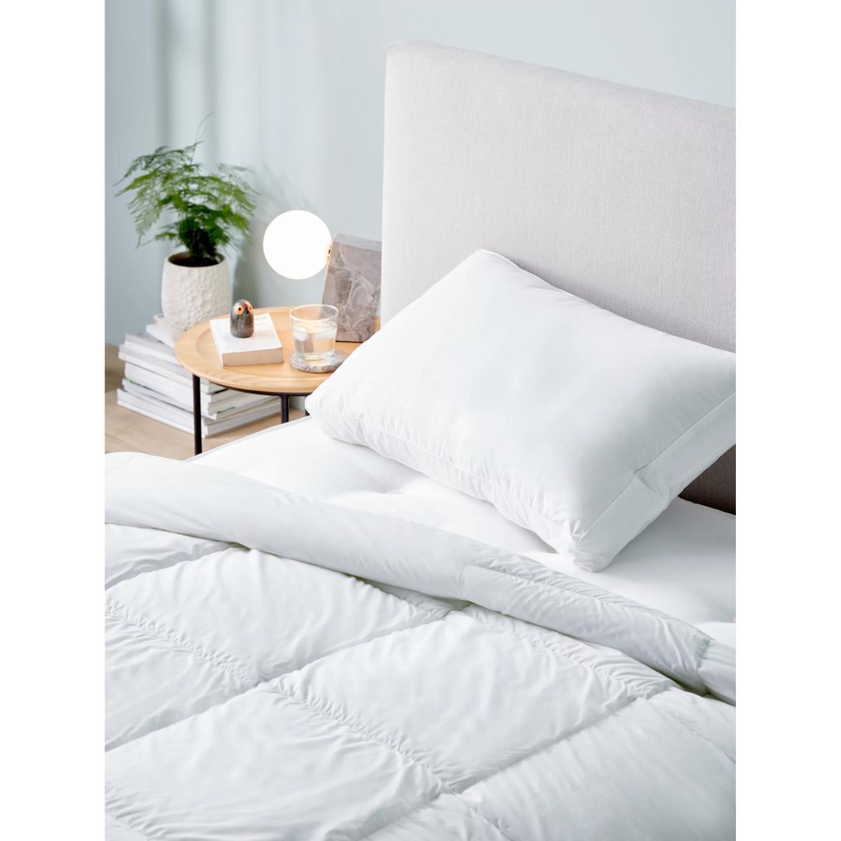 This luxurious vegan-friendly pillow has a specialist fibre-cluster filling that traps air to create a lofty, natural goose down-like feel. The 280 thread count cotton-tencel™ cover is more sustainably sourced. This product has not been tested on animals, does not contain any animal-derived ingredients and is registered by The Vegan Society. Perfect for those who sleep on their back or side, this pillow helps keep your spine aligned for a comfortable and undisturbed night's sleep. More sustainably sourced We always strive to obtain raw materials from more sustainable sources. This product is made with recycled materials, certified as fully traceable and adhering to environmental, social and labelling requirements, at all points in the supply chain. By buying cotton products from John Lewis & Partners, you're supporting more sustainable cotton farming through the Better Cotton Initiative. BCI is a not-for-profit organisation which exists to make global cotton production better for the people who produce it, better for the environment it grows in, and better for the sector's future. BCI works with partners around the world such as WWF, Solidaridad and Cotton Connect to train farmers to produce cotton more sustainably. Better Cotton is sourced via a principle of mass balance and is not physically traceable to end products. However, BCI Farmers benefit from the demand for Better Cotton in equivalent volumes to those we source. Learn more about mass balance here.
