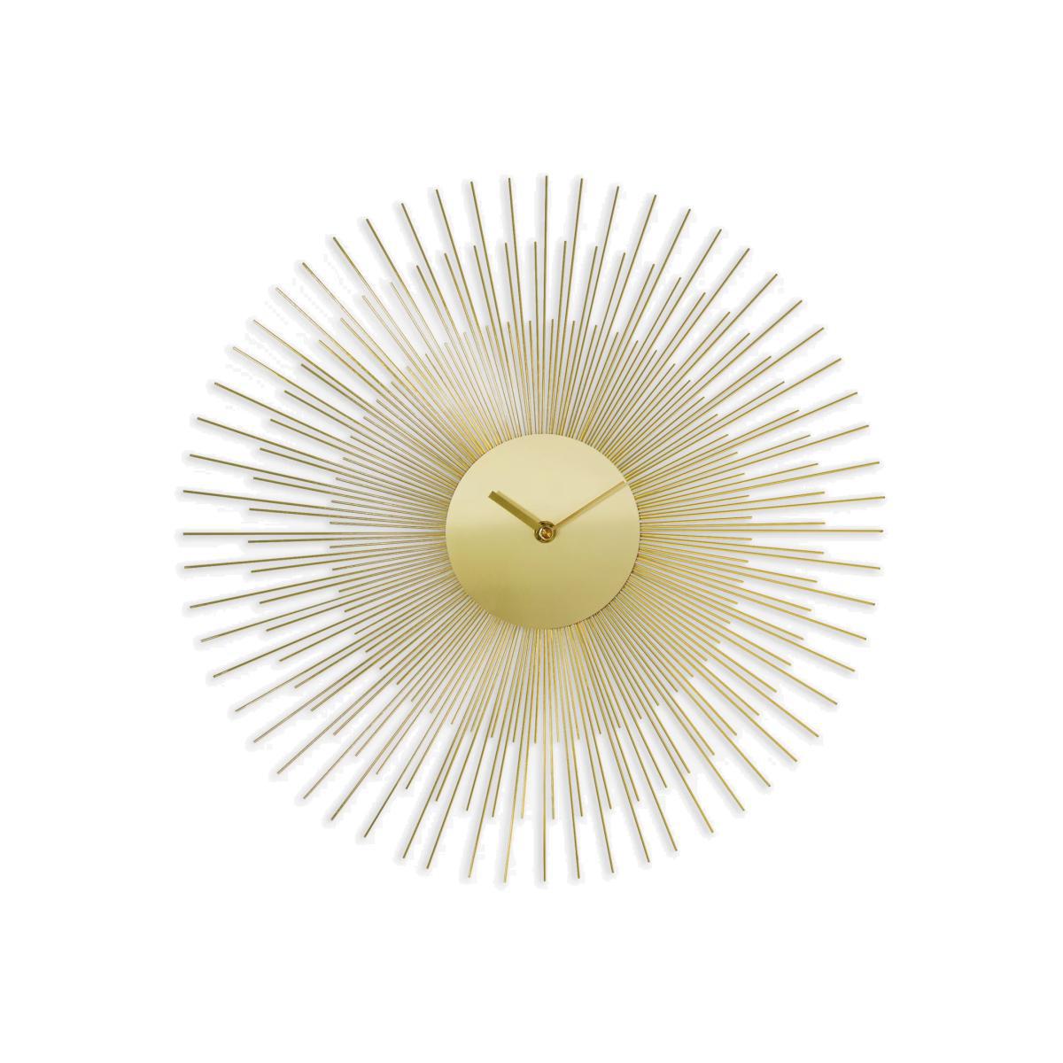 Metal spindles radiate outwards on this sunburst-style analogue wall clock. The pared-back design of the centre clock face and clock hands add contemporary style to a room.