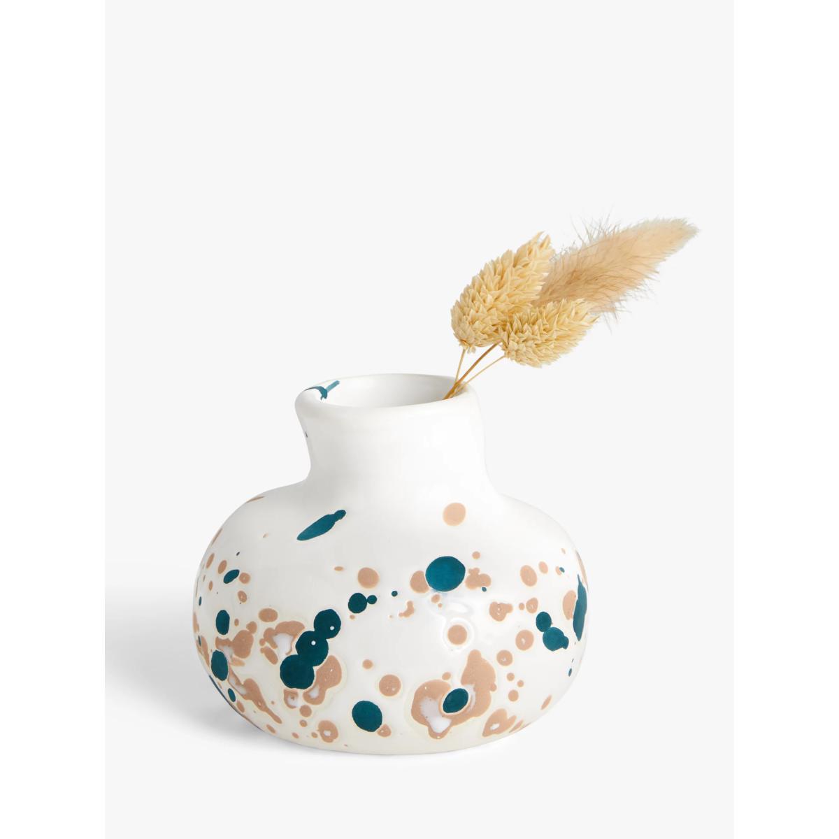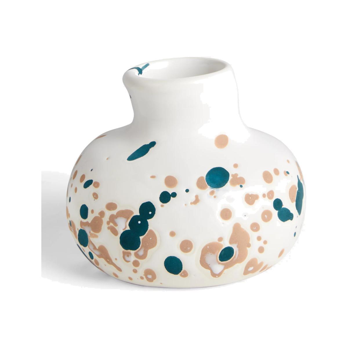 Our mini Splash vase has erratic splodges of colour, much like a paint splash. Being so petite it's best for displaying the odd short stem or piece of foliage. Alternatively, go with the art studio look and use it as a container for paintbrushes and other art supplies. Be aware that as it's handmade there could be variations in the colour of this vase. It means each piece is unique. We also cannot guarantee that this particular vase will be watertight due to its materials and the way it's made. We'd recommend using faux flowers or placing it on a protective surface.