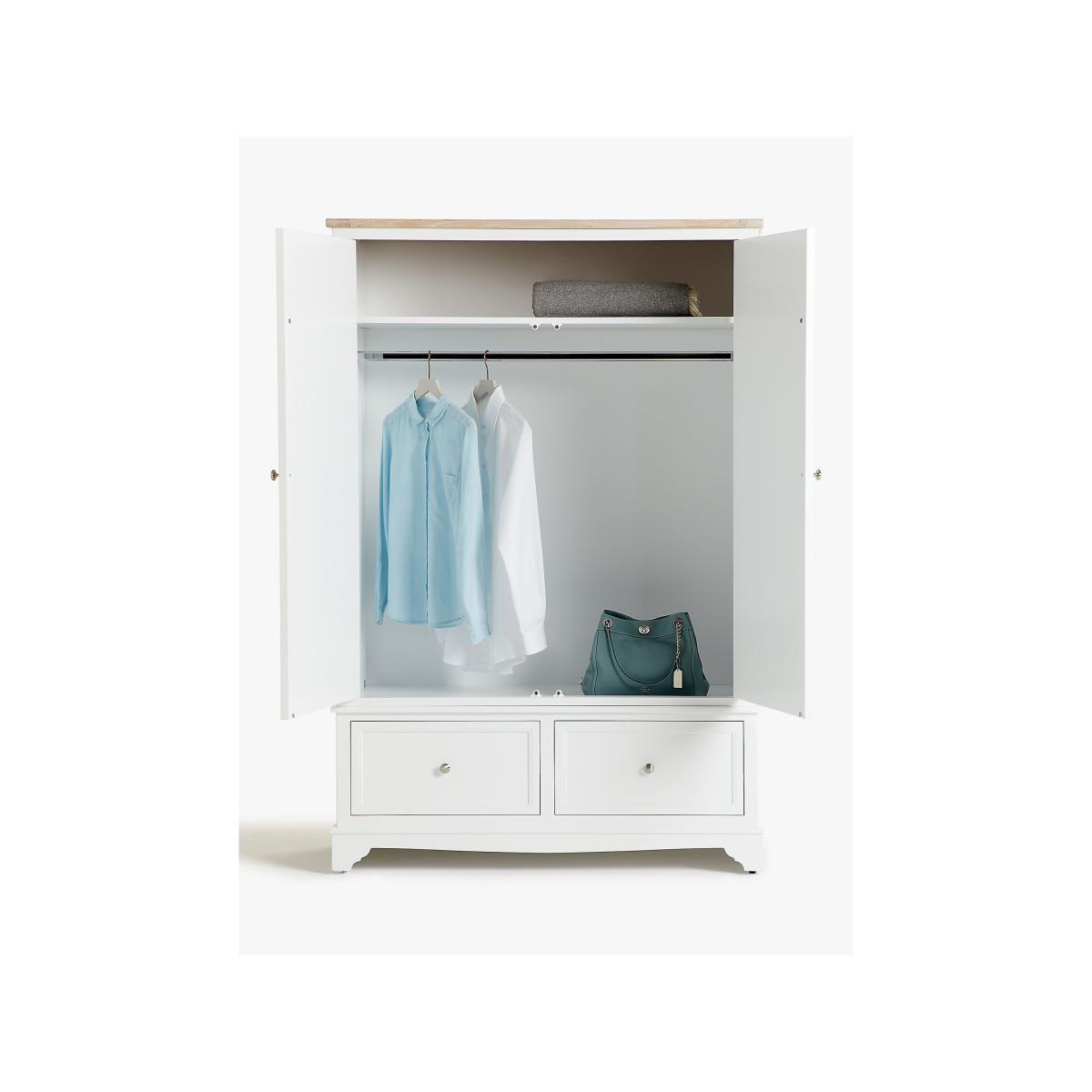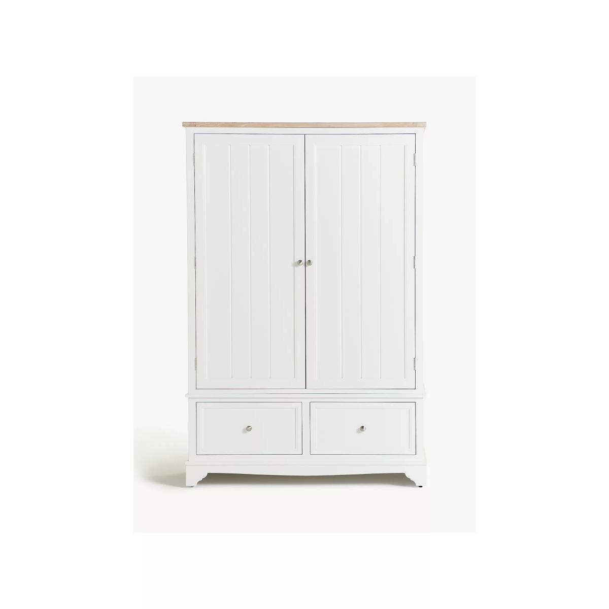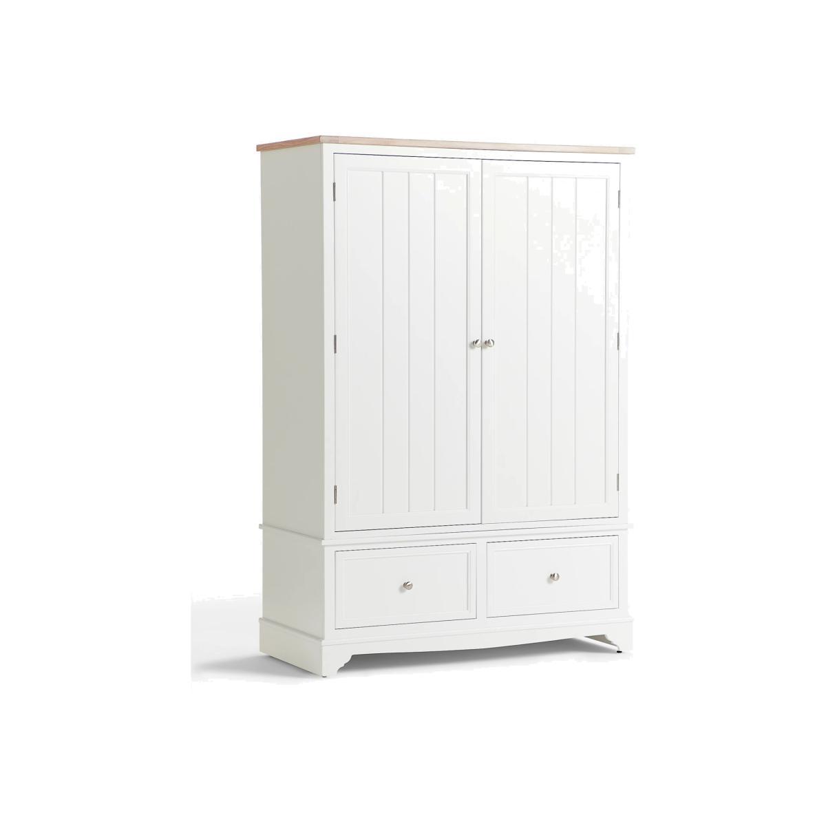 Inspired by the coastal town itself, our St Ives range of bedroom furniture encapsulates its fresh, charming feel. This spacious wardrobe is made from an impressive combination of solid oak and birch wood, with MDF and oak veneers adding to its reassuringly sturdy build. Inside, you'll find a metal hanging rail and shelf and there are two deep drawers for even more storage space. Panel detailing to the front gives the design a classic look, but the painted finish feels crisp and modern. The Haze options are designed with a contrast surface in a natural finish that highlights the wood grain. Want to see it first? You may want to see and get a feel for the furniture in one of our shops before ordering. We'll be able to tell you where the range you'd like to view is on display.
