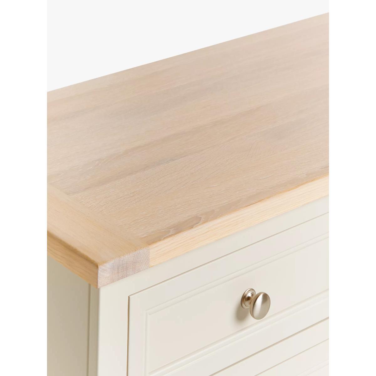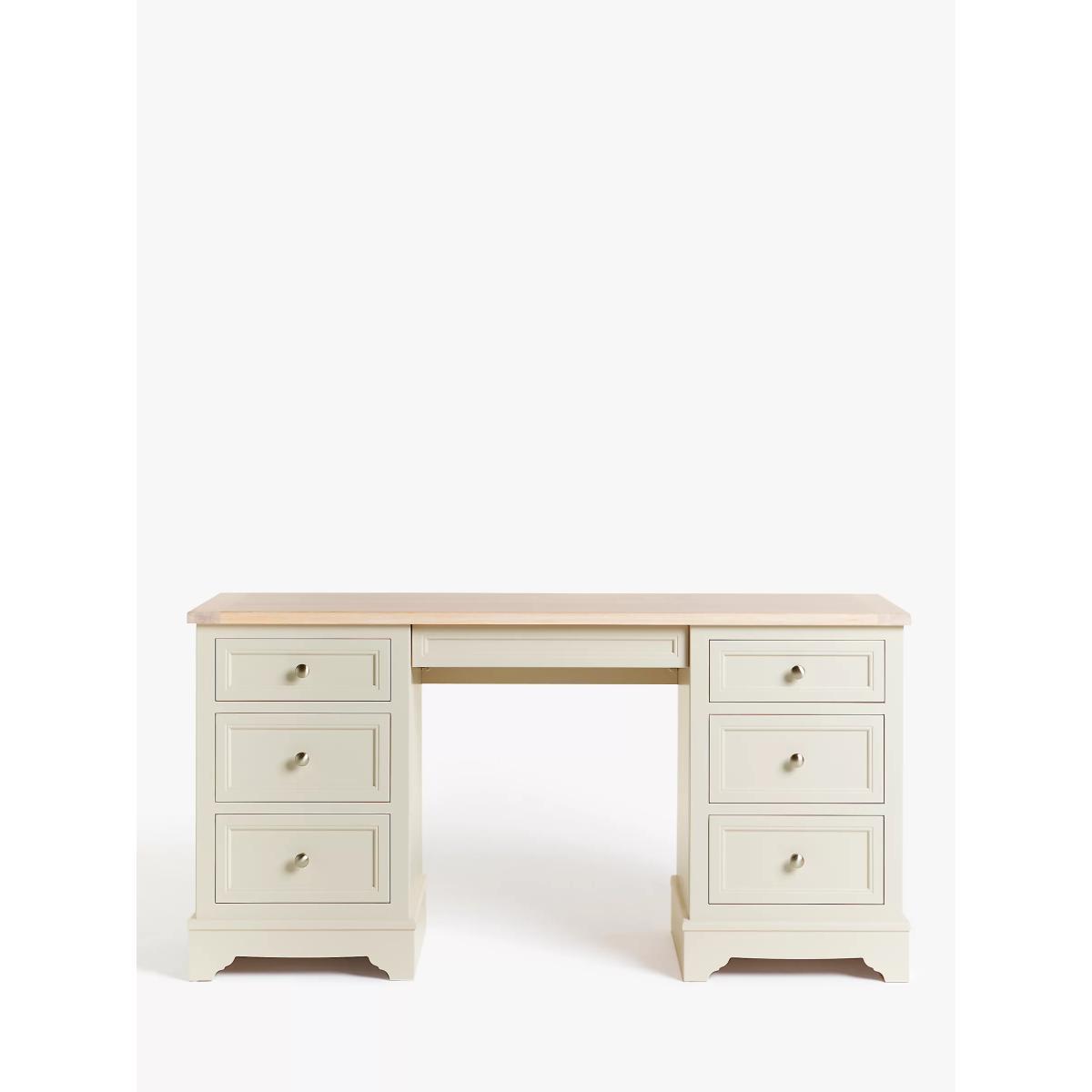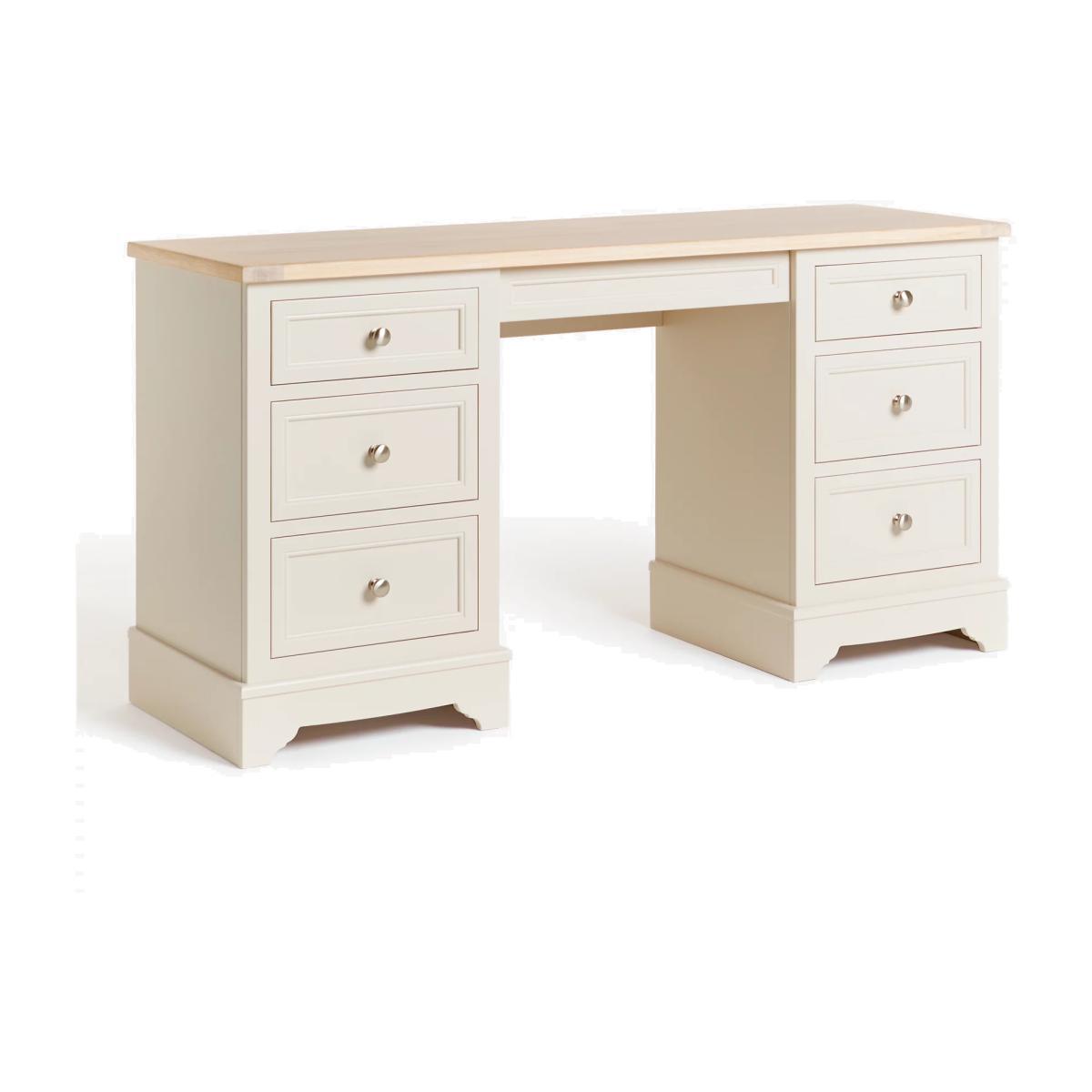 Inspired by the coastal town itself, our St Ives range of bedroom furniture encapsulates its fresh, charming feel. This dressing table is made from an impressive combination of solid oak and birch wood, with MDF and oak veneers adding to its reassuringly sturdy build. There are three spacious drawers on either side of the frame and a concealed drawer in the centre which is perfect for storing jewellery and trinkets. Panel detailing on the drawer fronts adds a classic, traditional quality to the design and its painted finish makes it easy to style in both modern or more traditional interiors. Want to see it first? You may want to see and get a feel for the furniture in one of our shops before ordering. We'll be able to tell you where the range you'd like to view is on display.
