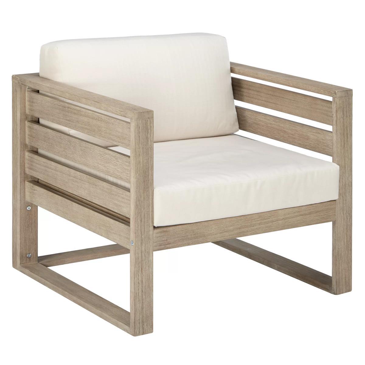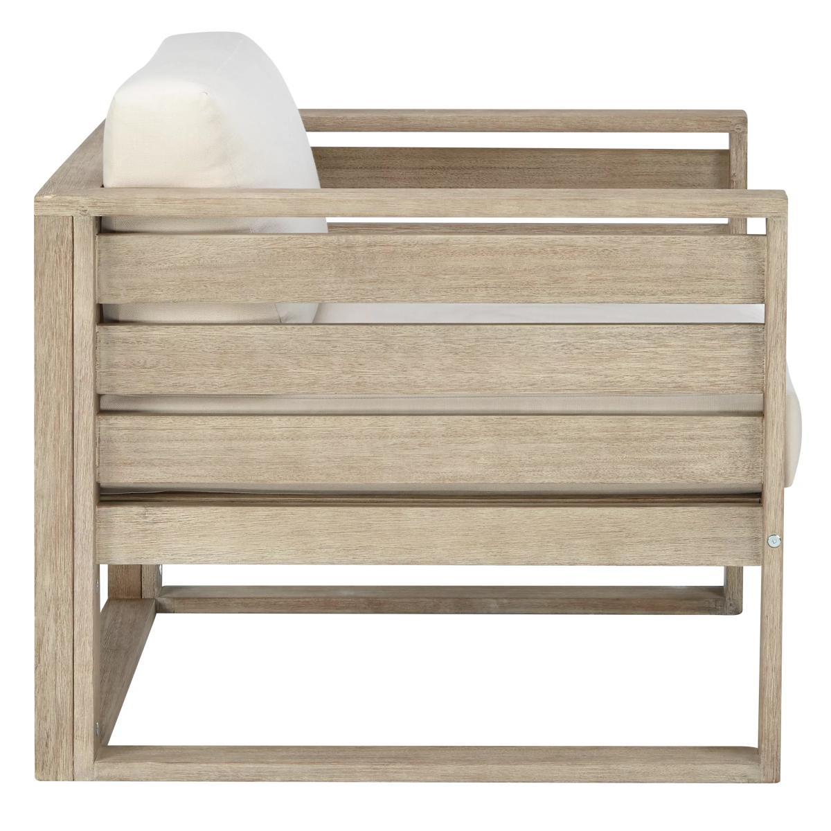 FSC-certified This distinctive lounging chair is part of our St Ives range. It's equally suitable for indoor or outdoor use and comes with sumptuous shower-resistant cushioning. Made from high-quality FSC-certified eucalyptus wood, our St Ives range is inspired by the quaint seaside town in Cornwall. The range combines the best of traditional English and contemporary Scandinavian design. Robust seating frames in this range have been tested to withstand 20 stone (127kg), exceeding the industry standard. Features: FSC-certified eucalyptus wood Shower-resistant cushions Suitable for indoor and outdoor use Part of the St Ives range of garden furniture Want to see it first? You may want to see and get a feel for the product in one of our shops before ordering. We'll be able to tell you where the range you'd like to view is on display. Choose the perfect outdoor furniture We have a selection of wooden furniture for you to choose from which will suit the home or garden. Below are a few options to consider when choosing your perfect outdoor furniture. Teak A premium and popular wood with an attractive appearance which ages beautifully. Strong, durable and resistant to rot and decay, this furniture requires little maintenance Eucalyptus Distinctive scent and appearance which darkens as it ages. Provides similar natural benefits to teak including moisture resistance, hardness and durability. It's plentiful in supply which makes the furniture an inexpensive choice. Acacia Naturally durable, this wood is incredibly hard and is unlikely to suffer damage during everyday use. It provides similar natural benefits to teak, yet unlike many other hardwoods, acacia is also relatively fast growing which minimises the environmental impact.