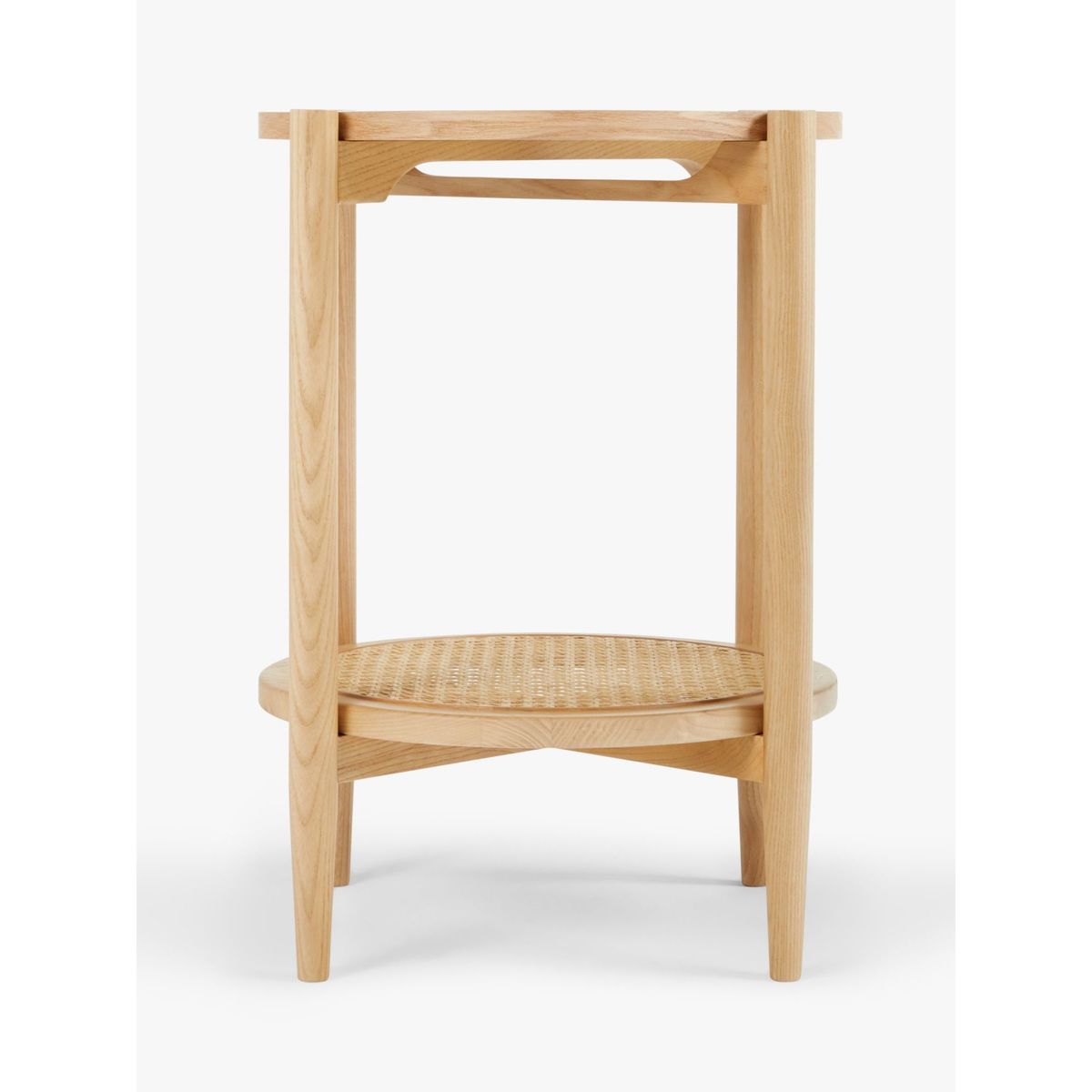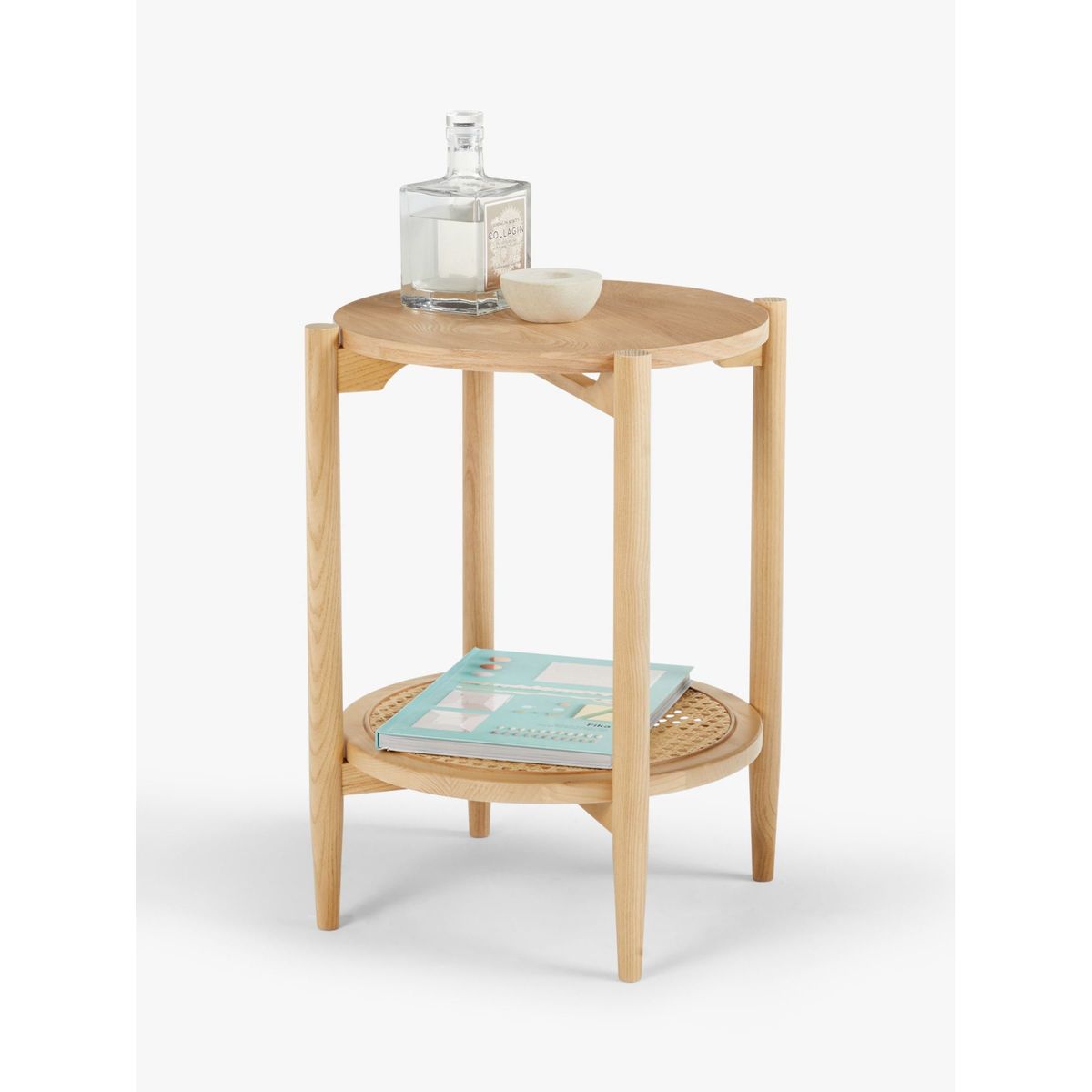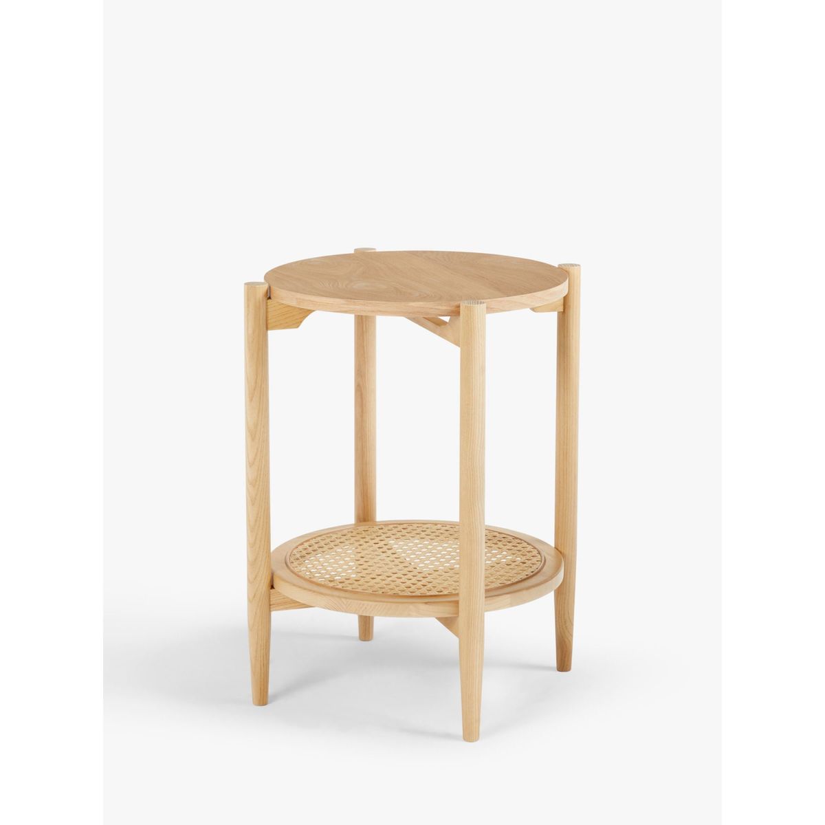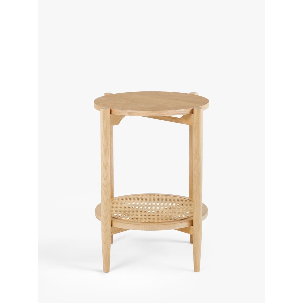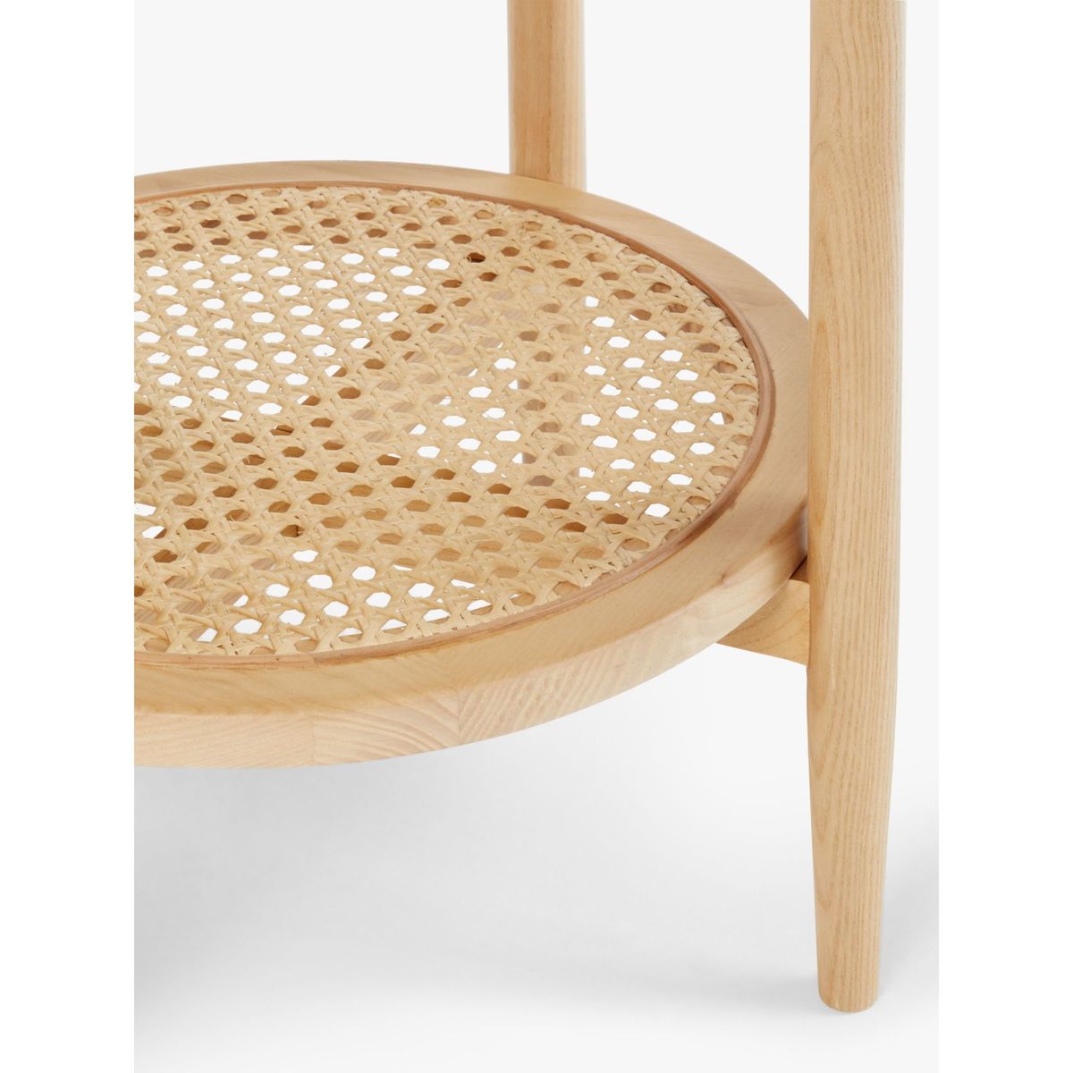 Restore a sense of calm in your space with natural, minimalist furniture. This side table is so easy to style in bedrooms or living spaces. It's made predominantly from high-quality ash wood in a stained finish, with a second shelf made from rattan. Complete with a spindle-shaped frame, we like its visual lightness and smooth, rounded shape. Fuss-free furniture, at an affordable price. Want to see it first? You may want to see and get a feel for the furniture in one of our shops before ordering. We'll be able to tell you where the range you'd like to view is on display With great prices and great design, our new brand offers style and quality for modern living today. Whatever you need, there's joy to be found in.
