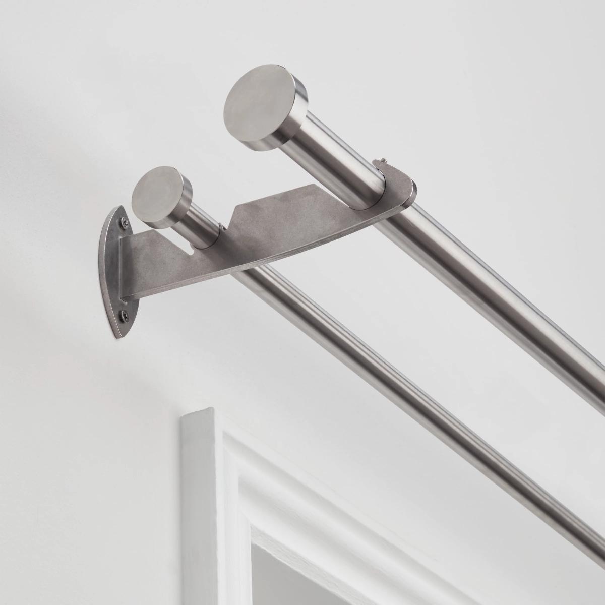 A double side bracket to accommodate both a 25mm and 19mm stainless steel curtain pole. Stainless steel guarantees a clean, sleek and stylish look that's in harmony with any decor. It's a great option for rooms prone to moisture such as kitchens. Sold singly.