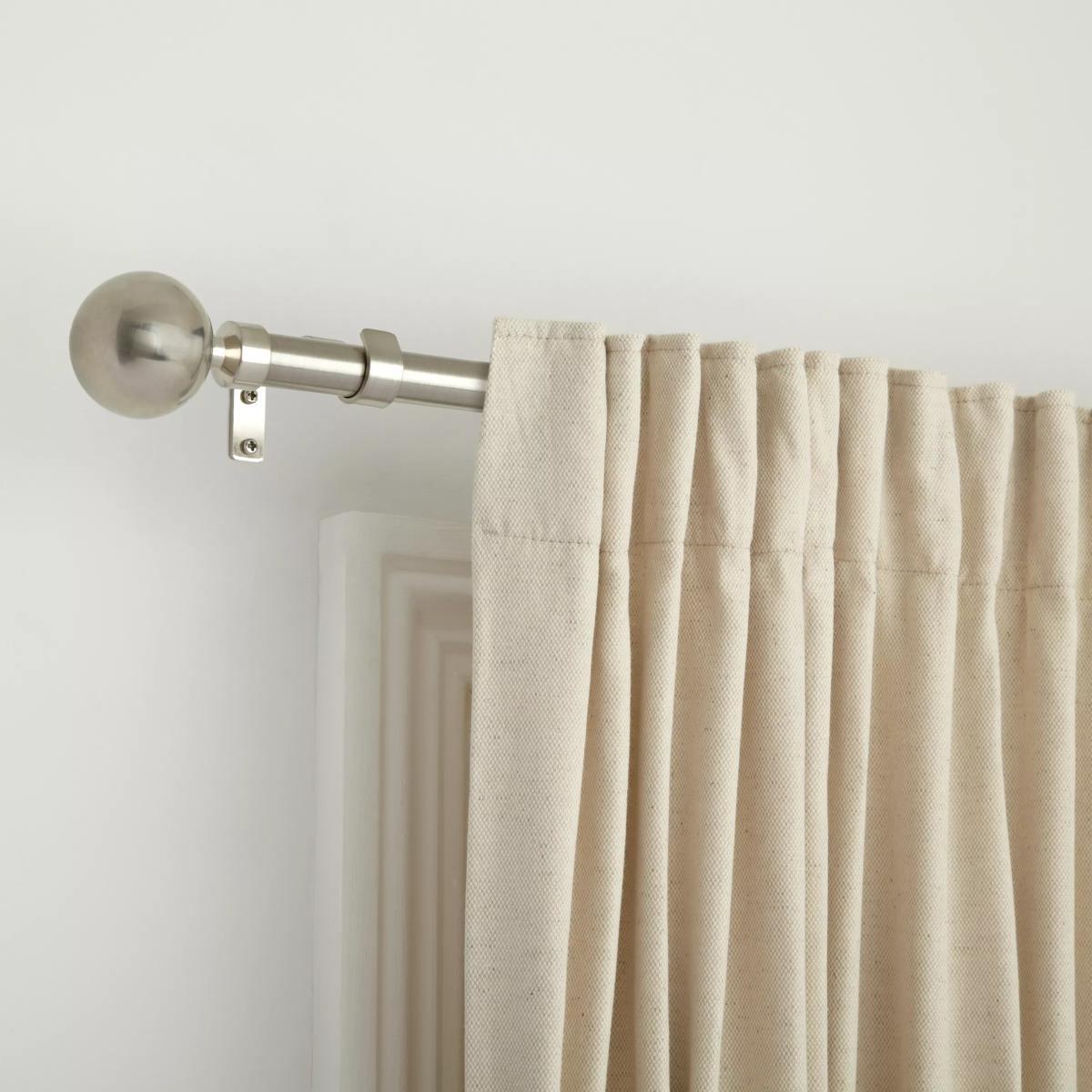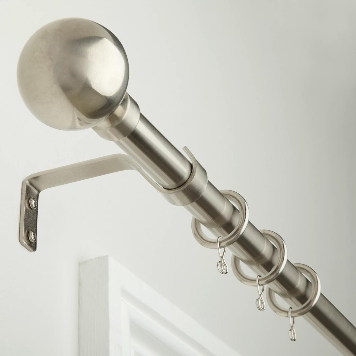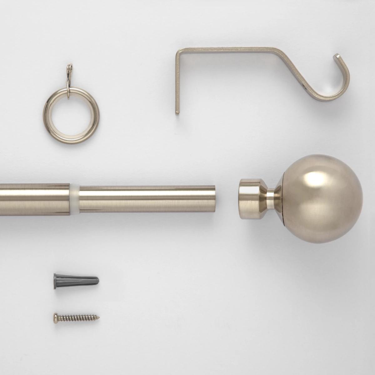 This steel extendable curtain pole kit which gives you more flexibility in fitting it to your space. This kit contains all the accessories and fittings you'll need to fit your pole, so all that's left is to choose your curtains. Comprehensive instructions offer a step-by-step guide, whether you're using the pole as it comes or cutting it to size. Kit includes: L125-216cmL200-300cm. Curtain pole12 plus a connectorBrackets33Finials22Rings2030Other. Screws and wall plugs. Screws, wall plugs and a double-ended joining screw Additional rings are available separately. Shop them here