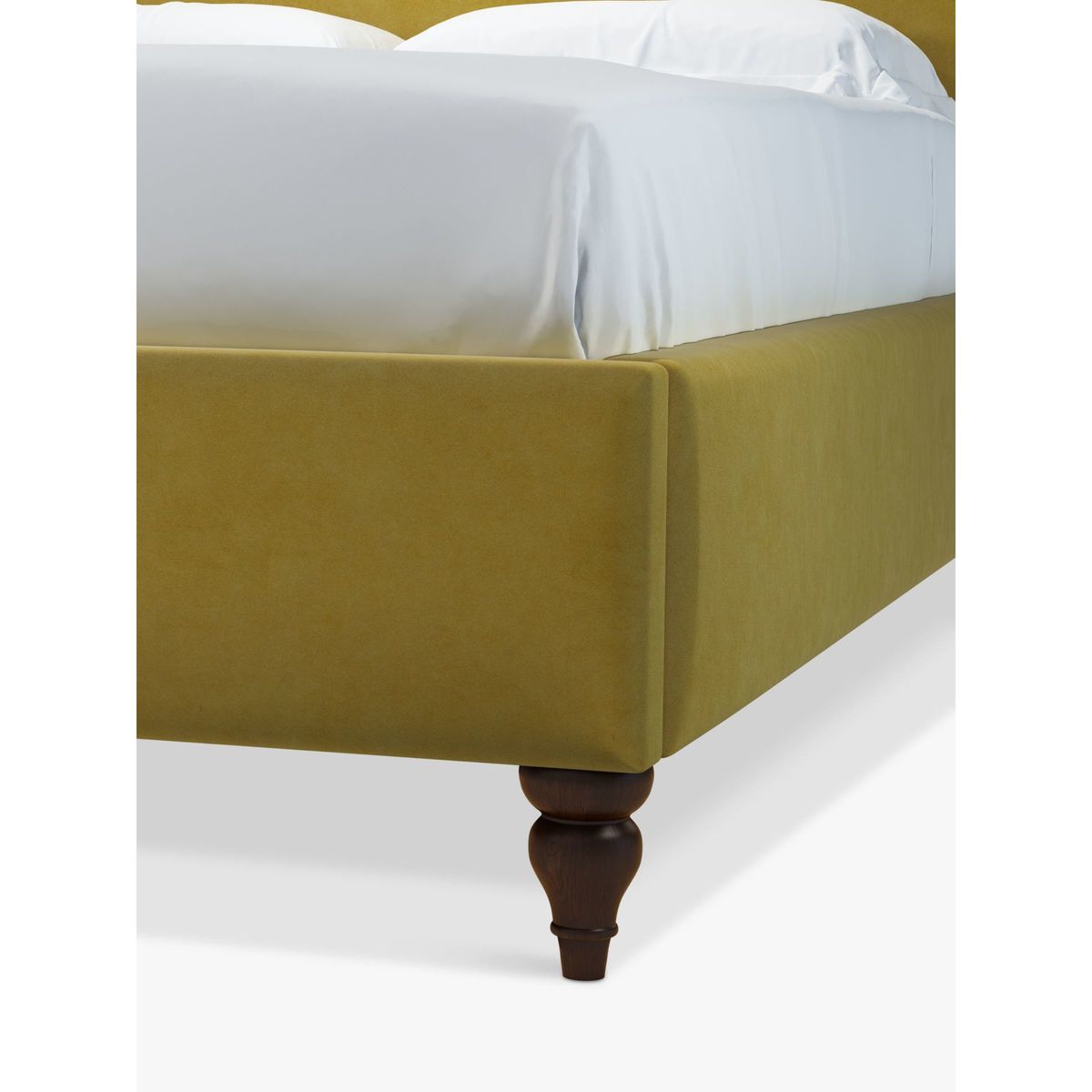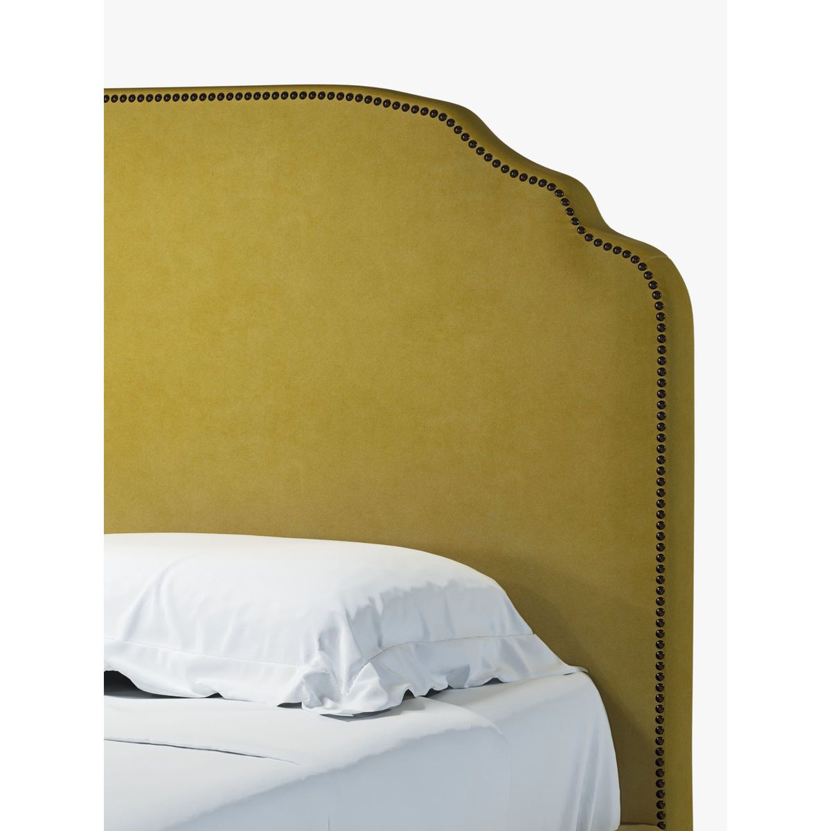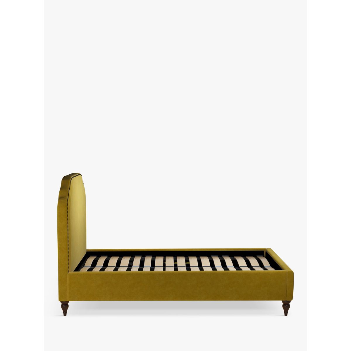 Designed with studs around the edge of its large headboard, our Studded bed frame oozes vintage glamour. The shape is classic but the upholstered finish gives it a modern edge, making it easy to tie into different interior styles. It sits on low, twisted wooden legs and its sprung slats provide a supportive base for you and your mattress. Smart Slats This bed frame is designed with wider slats at the shoulders, lumbar and feet, that provide maximum support for you and your mattress so that you experience perfect spinal alignment while you sleep. Standard slat caps are black so we have added grey slat caps to ensure that you know where to place the wider slats. Choose from one of our fabrics: Our Band A fabric, Topaz is woven to create a linen-effect feel Our Band A fabric, Saga is woven with man-made fibres, making it exceptionally durable and versatile Our Band B fabric, Erin has a velvet-style, chenille feel. It's woven with man-made fibres to create a beautifully soft yarn and can appear two-tone in different lights Our Band B fabric, Opulence is soft and luxurious like velvet Our Band B fabric, Mole is a soft and cosy woven wool-blend. Piling and bobbling may occur naturally over time Our Band C fabric, Aquaclean Harriet is made from a short, dense pile of velvet that has a soft, brushed finish. An Aquaclean treatment has been applied to this resilient fabric which means you can banish the majority of household stains with water. The treatment covers every fibre with an invisible coating so it doesn't need to be retreated or re-coated. It will naturally develop lines, scuffs and shading over time. Want to see it first? You may want to see and get a feel for the furniture before ordering. Pop into one of our shops to see the full range of colours and fabrics on offer. We'll be able to tell you where the range you'd like to view is on display.