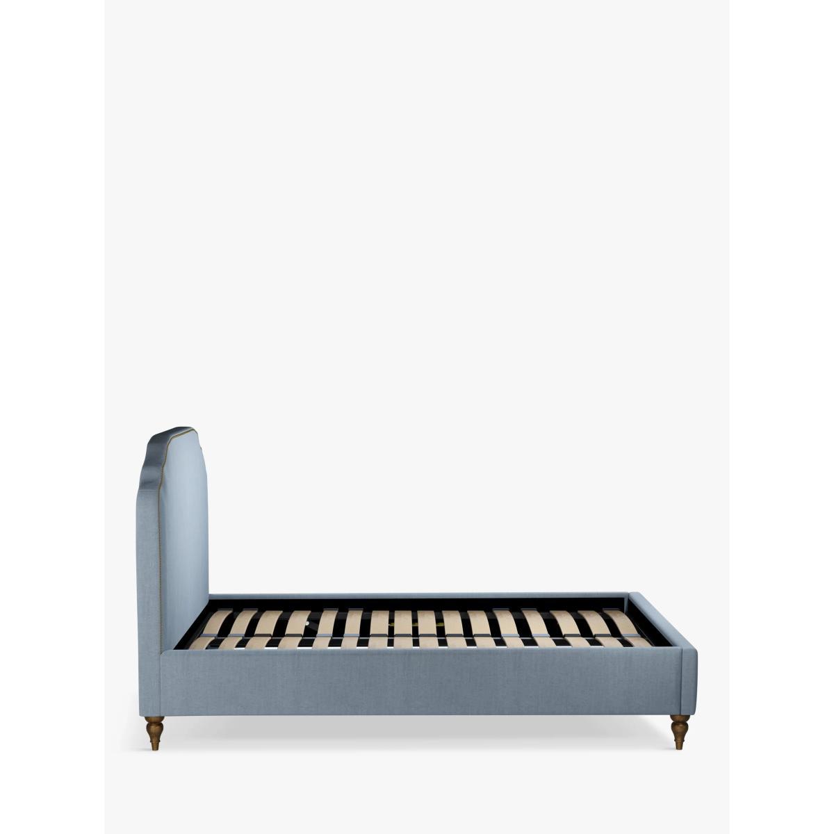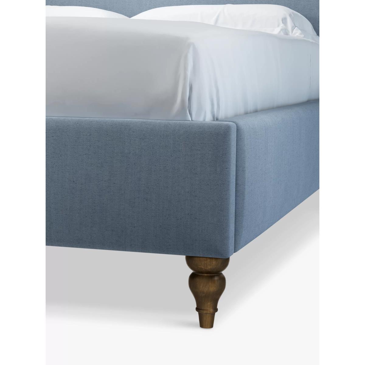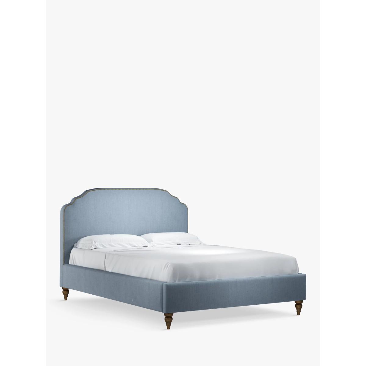 Designed with studs around the edge of its large headboard, our Studded bed frame oozes vintage glamour. The shape is classic but the upholstered finish gives it a modern edge, making it easy to tie into different interior styles. It sits on low, twisted wooden legs and its sprung slats provide a supportive base for you and your mattress. Smart Slats This bed frame is designed with wider slats at the shoulders, lumbar and feet, that provide maximum support for you and your mattress so that you experience perfect spinal alignment while you sleep. Standard slat caps are black so we have added grey slat caps to ensure that you know where to place the wider slats. Choose from one of our fabrics: Our Band A fabric, Topaz is woven to create a linen-effect feel Our Band A fabric, Saga is woven with man-made fibres, making it exceptionally durable and versatile Our Band B fabric, Erin has a velvet-style, chenille feel. It's woven with man-made fibres to create a beautifully soft yarn and can appear two-tone in different lights Our Band B fabric, Opulence is soft and luxurious like velvet Our Band B fabric, Mole is a soft and cosy woven wool-blend. Piling and bobbling may occur naturally over time Our Band C fabric, Aquaclean Harriet is made from a short, dense pile of velvet that has a soft, brushed finish. An Aquaclean treatment has been applied to this resilient fabric which means you can banish the majority of household stains with water. The treatment covers every fibre with an invisible coating so it doesn't need to be retreated or re-coated. It will naturally develop lines, scuffs and shading over time. Want to see it first? You may want to see and get a feel for the furniture before ordering. Pop into one of our shops to see the full range of colours and fabrics on offer. We'll be able to tell you where the range you'd like to view is on display.