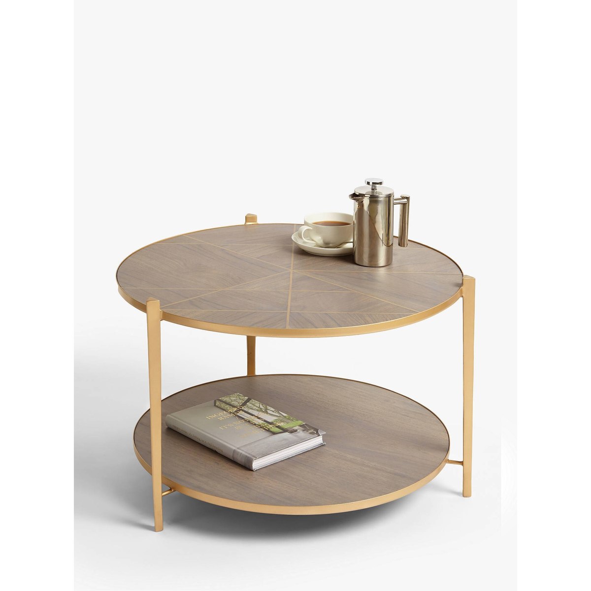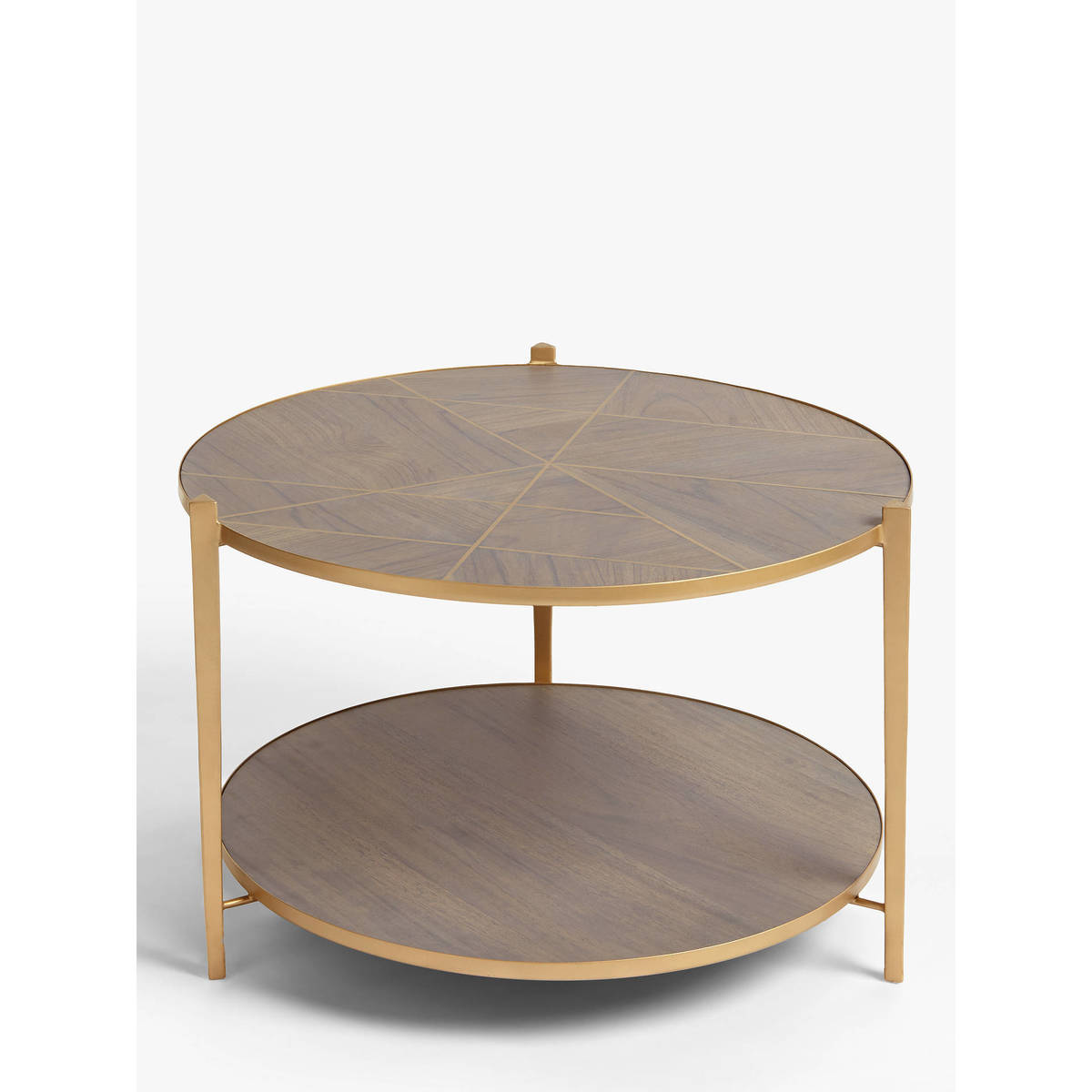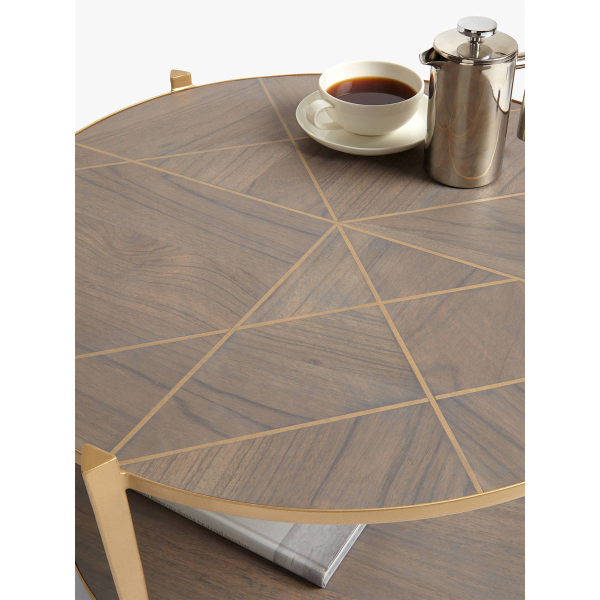 With a shared commitment to exceptional design and quality, we've collaborated to create an exclusive furniture collection for the modern home. The Emerson coffee table has a two-tier design, that highlights the appeal of its natural wood construction thanks to an offset grain direction. Its supported by three, triangular-shaped metal legs that elegantly taper down to the floor. Enhancing a modern and tactile feel, it's complete with inlaid lines of brass that are geometrically joined and scattered across the tabletop, while the subtle tray-edge on each of the two shelves provide added practicality.