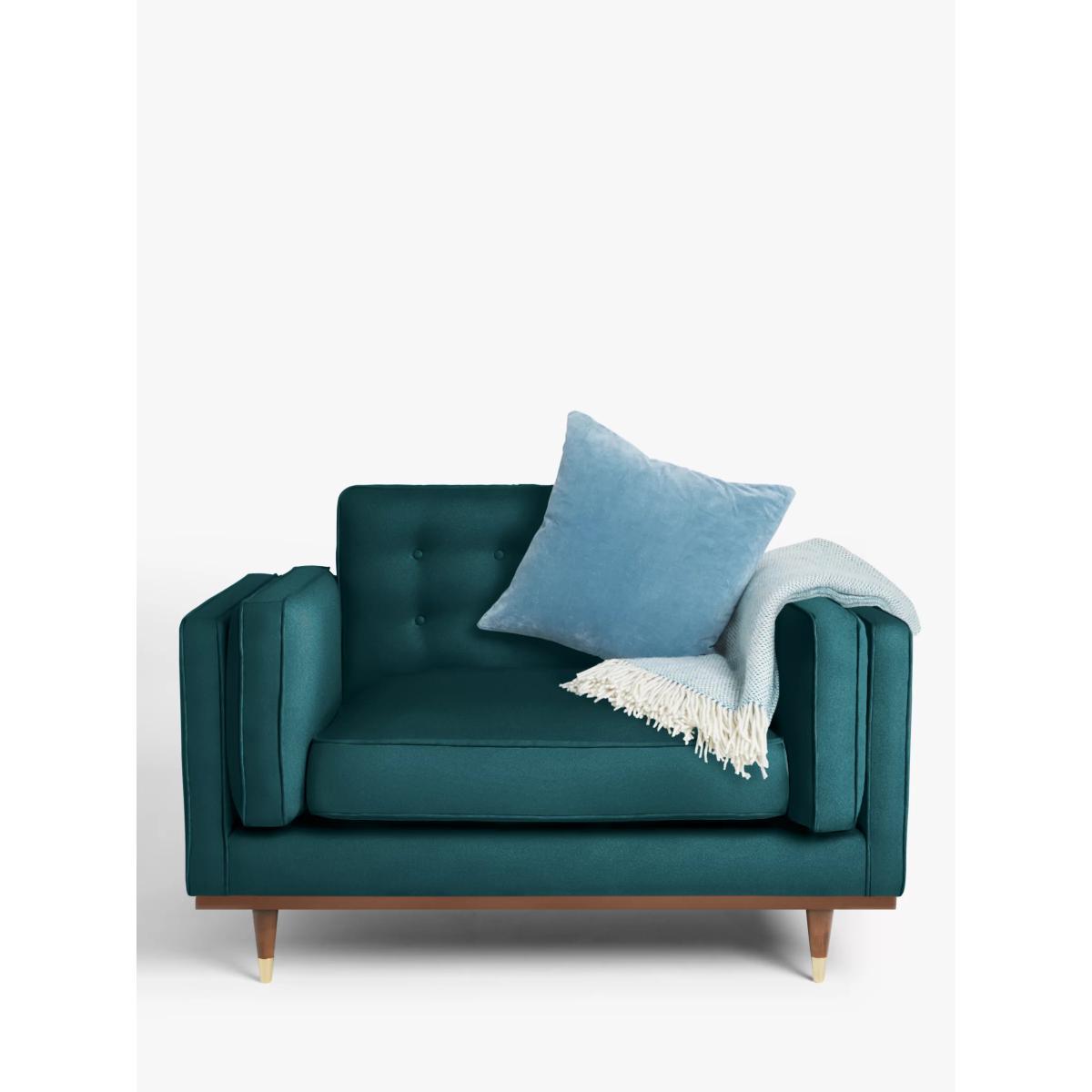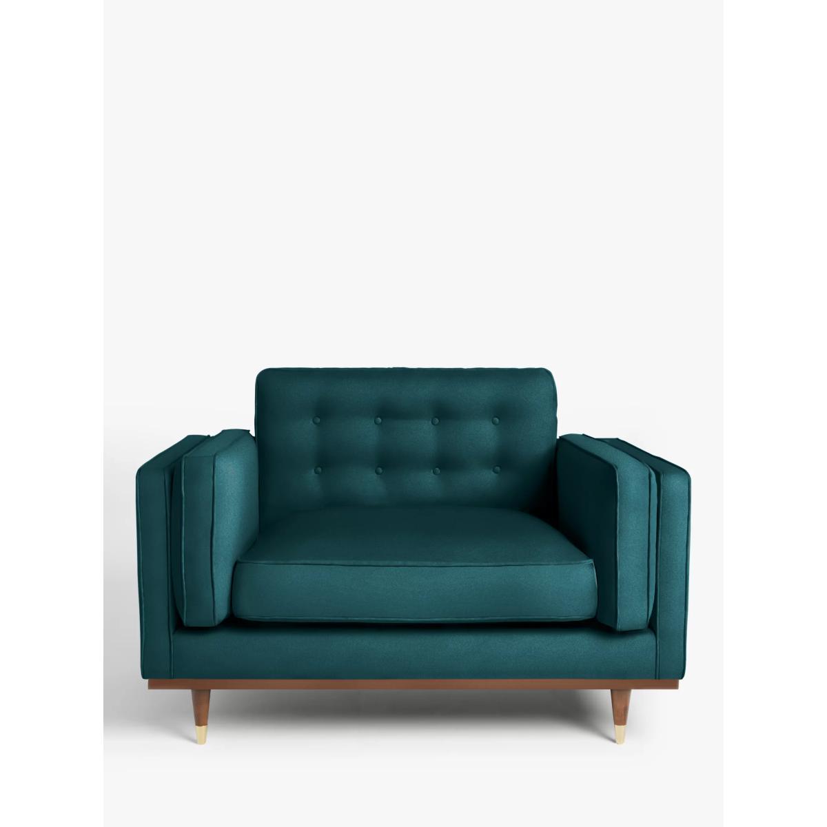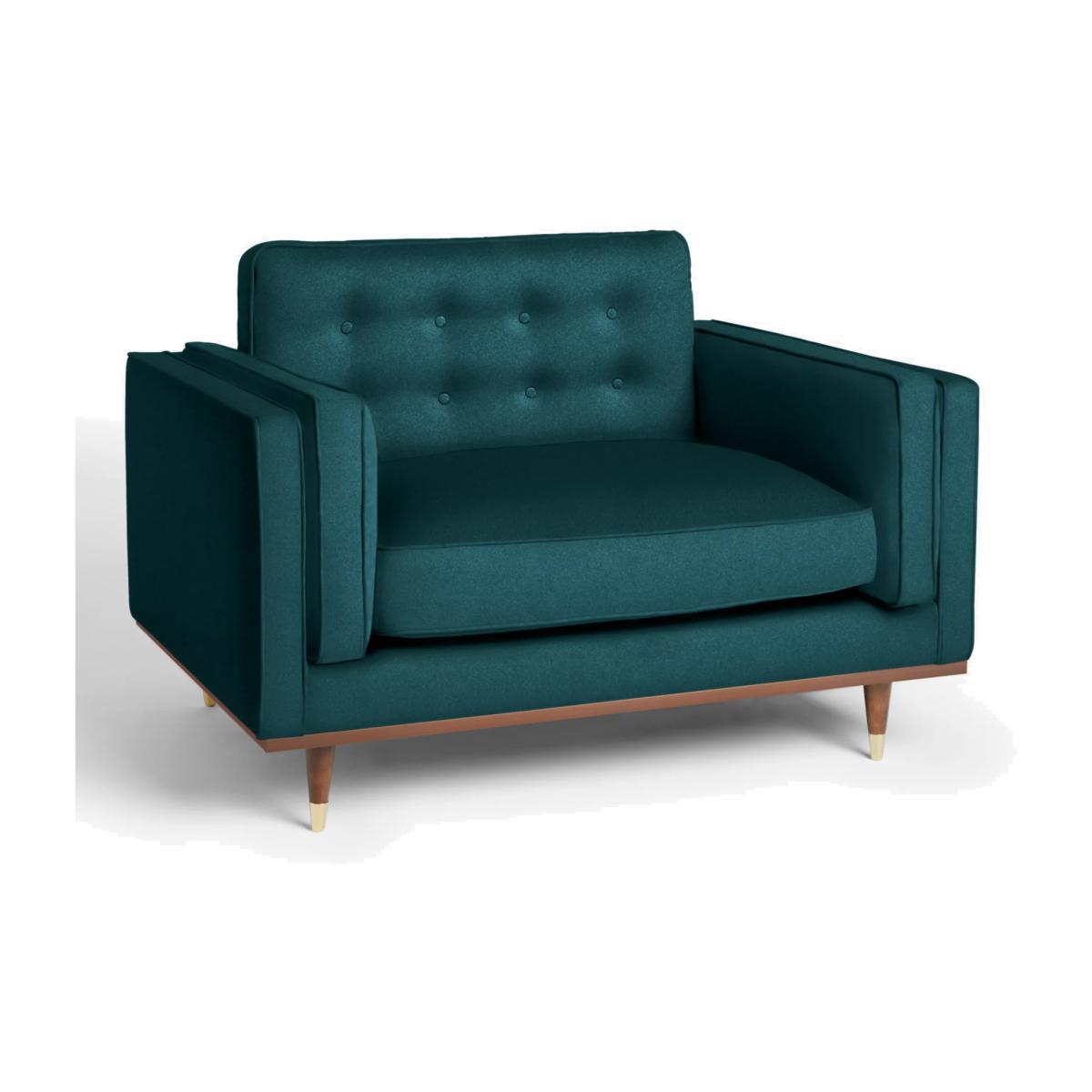 Product Information Designed by Swoon, made by us. With a shared commitment to exceptional design and quality, we've collaborated to create an exclusive furniture collection for the modern home. The Lyon racks up the points for both style and comfort. The button-tufted back and piping details are style statements, whilst the brass-capped tapered legs create a Mid-Century feel. Bolster cushions along the inside of the arms make a comfortable spot for relaxing. Want to see it first? You may want to see and get a feel for the furniture in one of our shops before ordering. We'll be able to tell you where the range you'd like to view is on display.