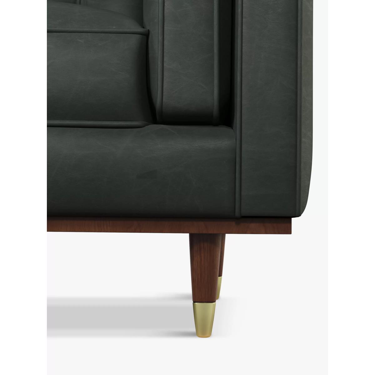 Product Information Designed by Swoon, made by us. With a shared commitment to exceptional design and quality, we've collaborated to create an exclusive furniture collection for the modern home. The Lyon racks up the points for both style and comfort. The button-tufted back and piping details are style statements, whilst the brass-capped tapered legs create a Mid-Century feel. Bolster cushions along the inside of the arms make a comfortable spot for relaxing. Worth knowing… As leather is a natural product, there are natural characteristics on each leather hide used to make our sofas. These could be things like brand marks, insect bites or wrinkles. A large sofa could be made with as many as four hides so there may also be some slight colour variation, however, we have strict guidelines to make sure any noticeable marks aren't in a prominent place. These distinctive qualities also mean that no two pieces of leather furniture will be exactly the same. Want to see it first? You may want to see and get a feel for the furniture in one of our shops before ordering. We'll be able to tell you where the range you'd like to view is on display.