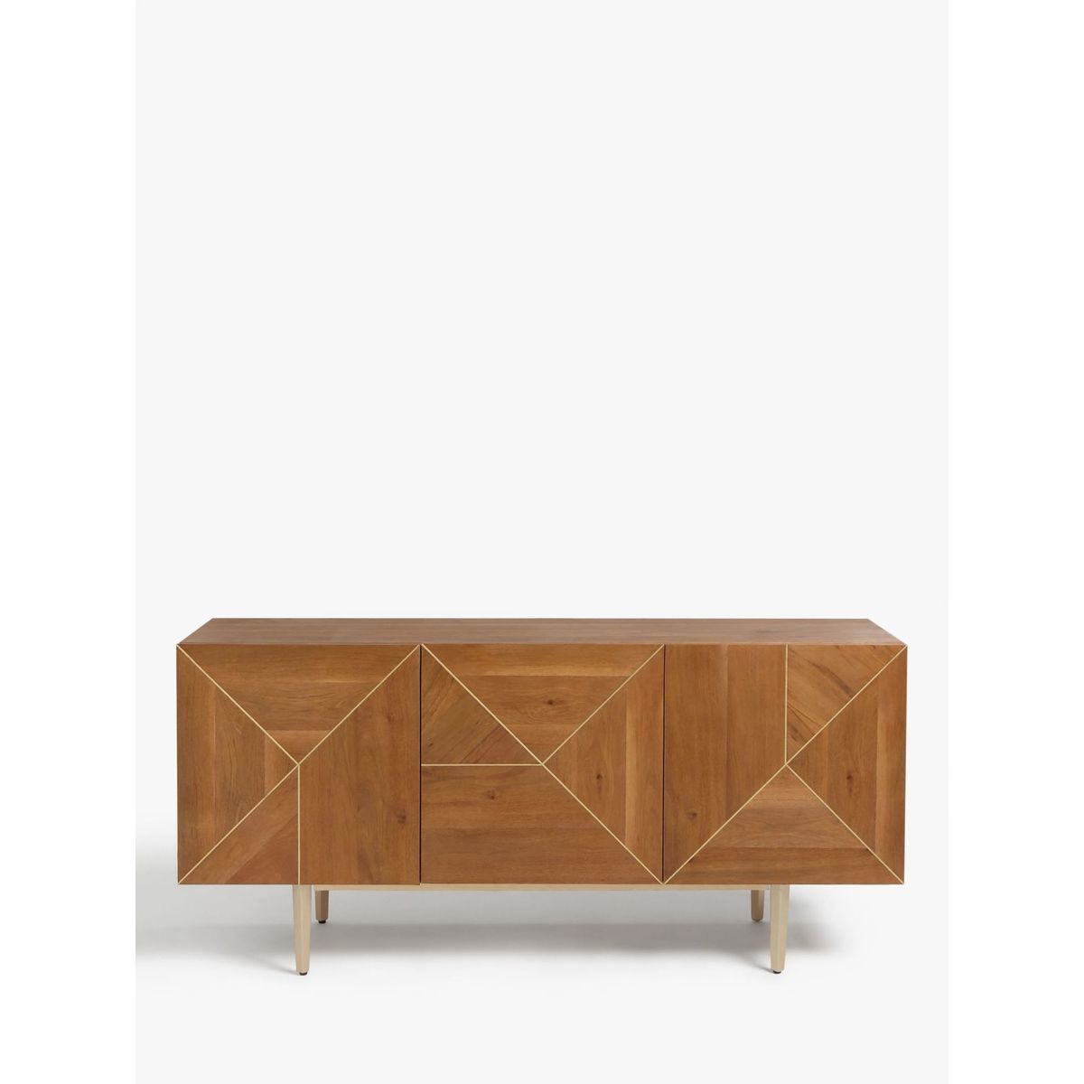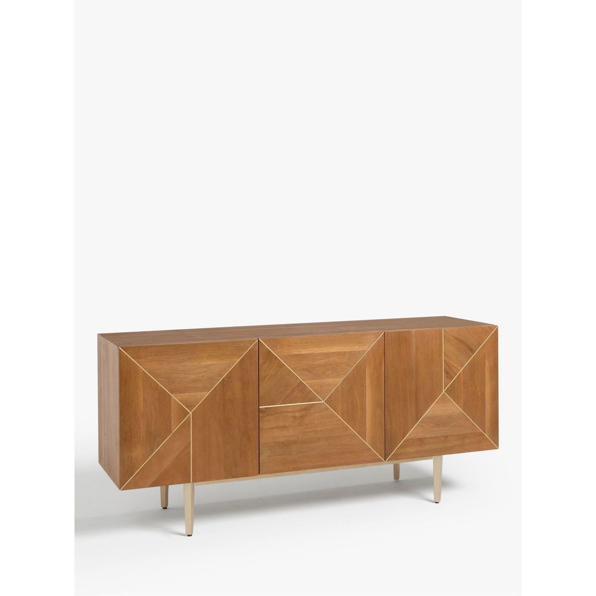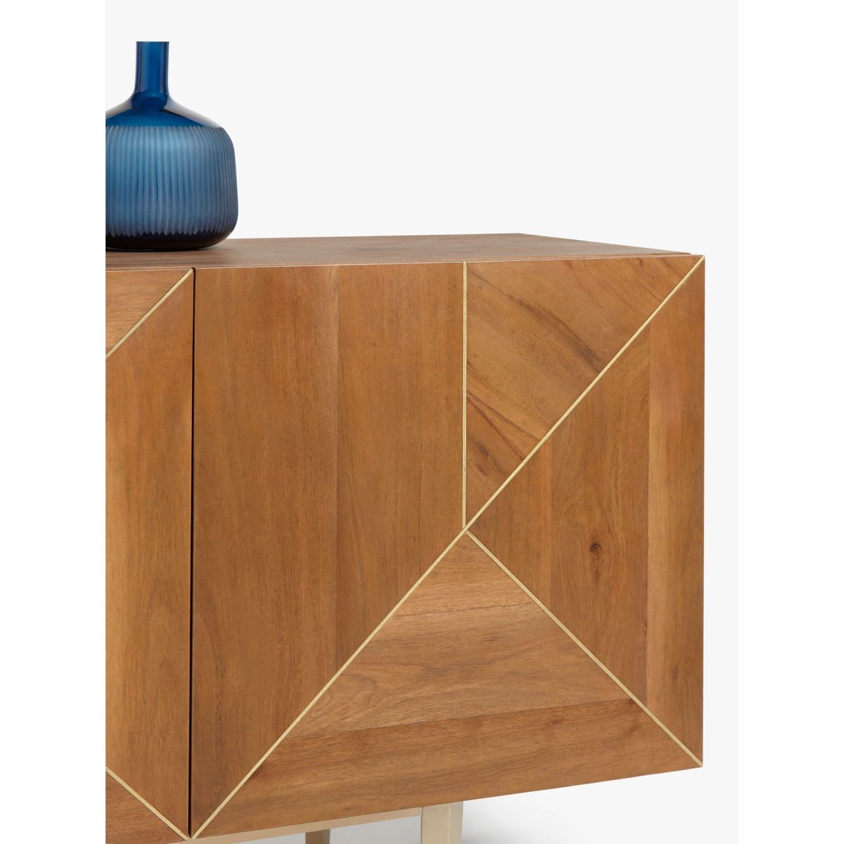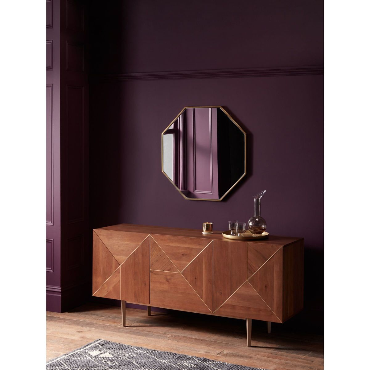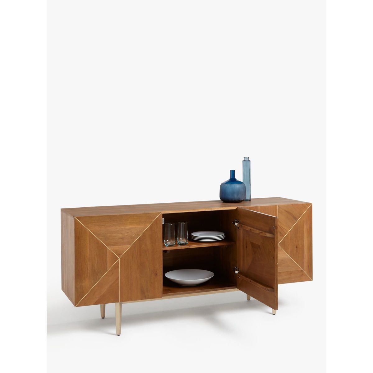 With a shared commitment to exceptional design and quality, we've collaborated to create an exclusive furniture collection for the modern home. The Mendel sideboard marries an impressive wood construction with subtle highlights of art-deco inspired design. An offset grain direction emphasises the natural beauty of its acacia wood and veneer profile, that's accented with sleek, geometric inlaid lines of brass. Complete with three adjustable internal shelves, this functional storage piece will become the striking centre feature of your living room. Want to see it first? You may want to see and get a feel for the furniture in one of our shops before ordering. If you do plan on doing this we recommend giving us a call on 03452 661805 as not all our ranges are on display in our shops. We'll be able to tell you where the range you'd like to view is on display.