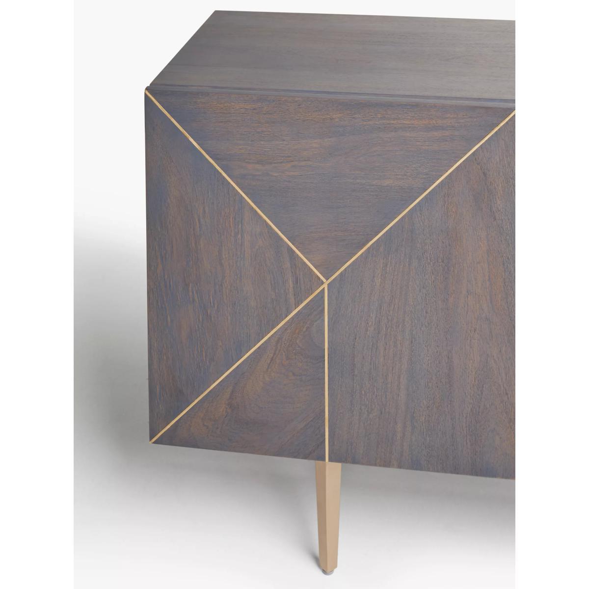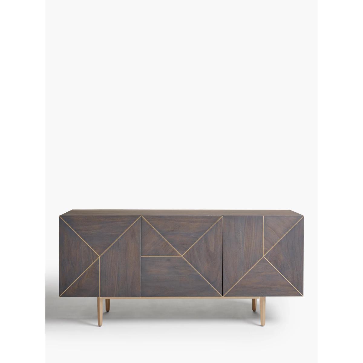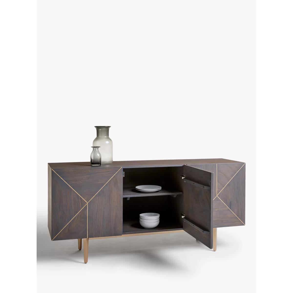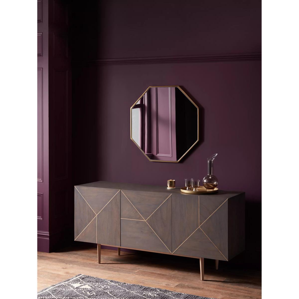 Designed by Swoon, made by us. With a shared commitment to exceptional design and quality, we've collaborated to create an exclusive furniture collection for the modern home. The Mendel sideboard marries an impressive wood construction with subtle highlights of Art Deco-inspired design. An offset grain direction emphasises the natural beauty of its acacia wood and veneer profile, that's accented with sleek, geometric inlaid lines of brass. Complete with three adjustable internal shelves, this functional storage piece will become the striking centre feature of your living room. Want to see it first? You may want to see and get a feel for the furniture in one of our shops before ordering. We'll be able to tell you where the range you'd like to view is on display.