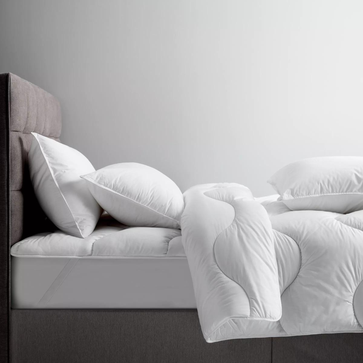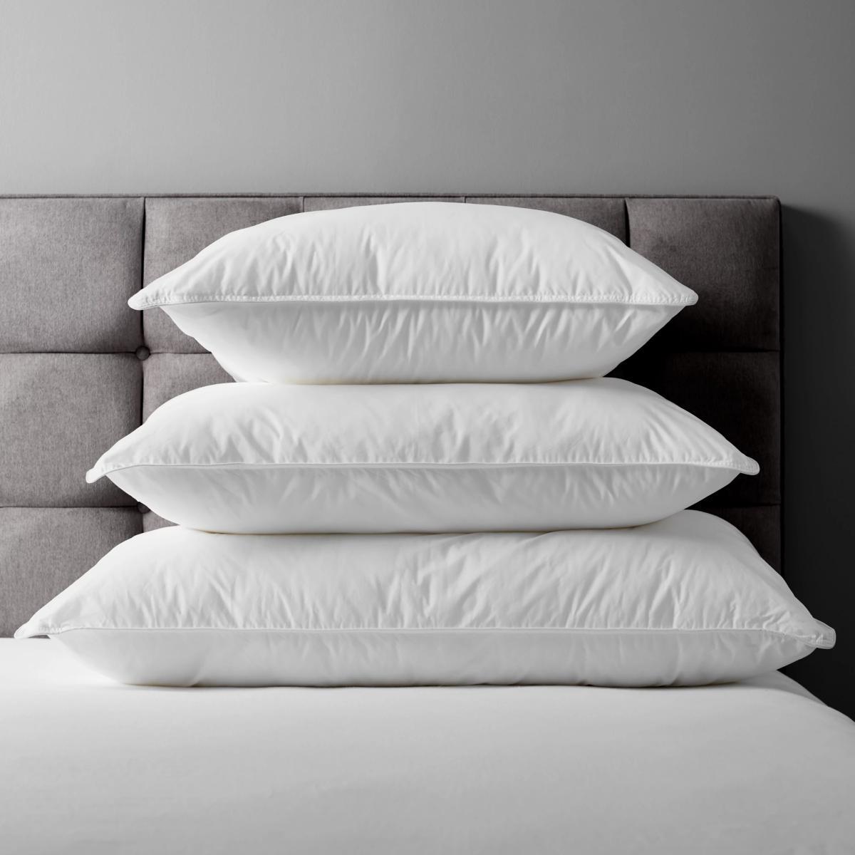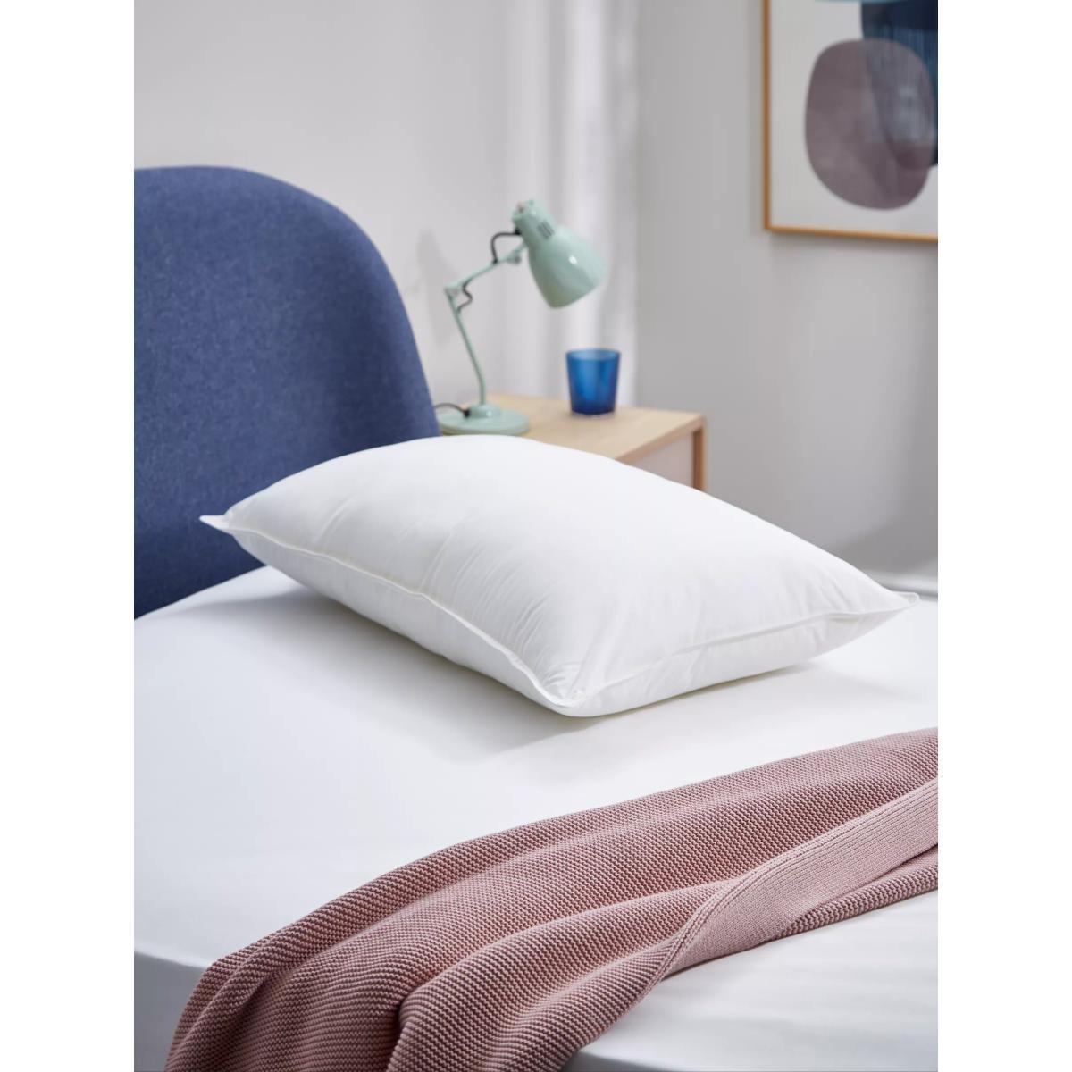 Perfect for those who sleep on their back or side, this pillow helps keep your spine aligned for a comfortable and undisturbed night sleep. Light yet warm, our hypoallergenic pillow has the feel of down, thanks to its sumptuous hollowfibre filling. The pure cotton cover is naturally breathable. Hollowfibre Each fibre of the filling has a '10 hole' hollowfibre construction. This helps air circulate and gives a lofty feel, just like natural down. It also gives greater warmth with less weight. 250 Thread Count This number refers to the density of threads per square inch: generally, higher thread counts mean a softer and smoother feel. Prolong the life of your new pillow with a pillow protector. Shop.