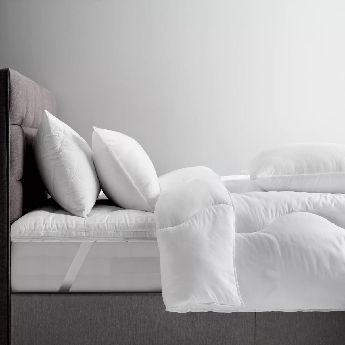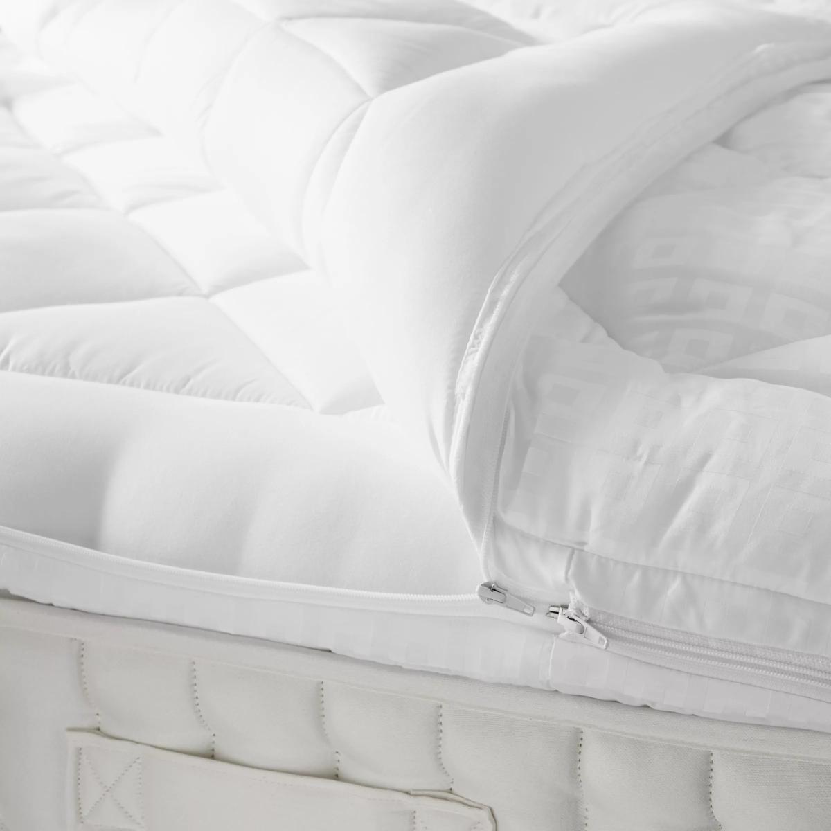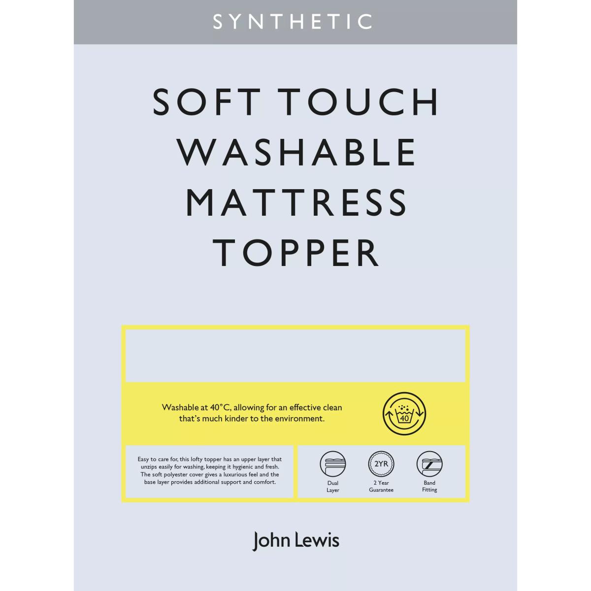 This lofty topper's upper layer unzips easily for washing. The soft polyester cover gives a luxurious feel and the base layer provides additional support and comfort. Suitable for Regular Washing Washable at 40°C, allowing for an effective clean that's much kinder to the environment. Dual Layer The base layer can stay on the mattress while the top can be removed for washing. A base layer gives support, a top layer adds comfort. Please note: we do not recommend using this mattress topper with an electric blanket as it will significantly limit its effectiveness. This topper fits mattresses up to 32cm deep.