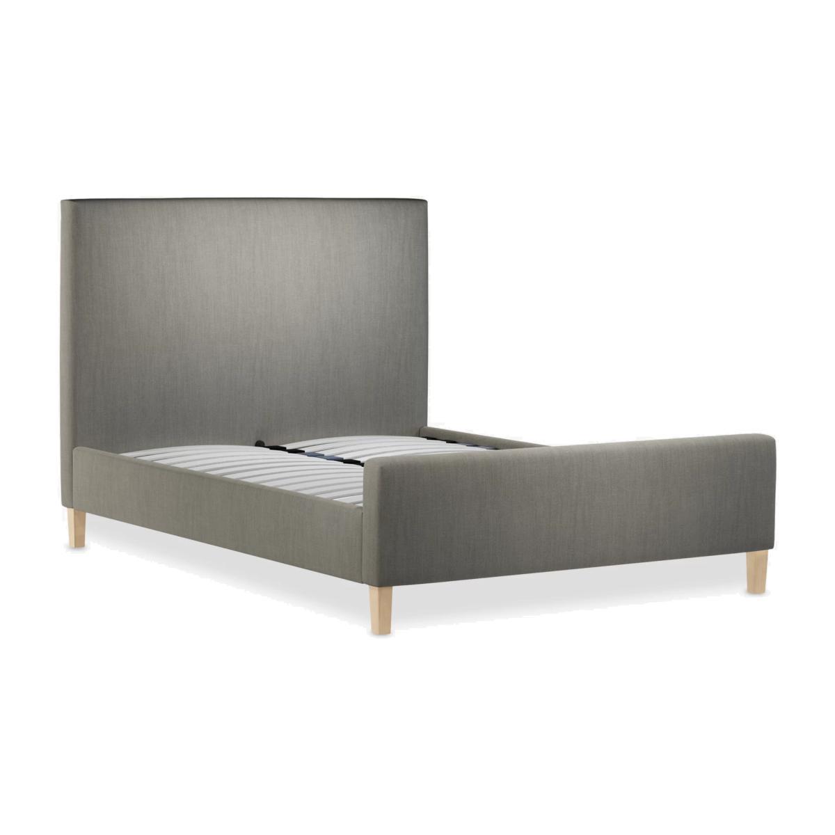 Taller in size and built with the addition of a footend, our Tall Emily bed frame is perfect for your modern bedroom. With a large headboard and minimalist wooden legs, it has a simple and clean-lined shape, and we've added supportive, sprung slats to the base. Built with Smart Slats This bed frame is designed with wider slats at the shoulders, lumbar and feet. They provide maximum support for you and your mattress so that you experience perfect spinal alignment while you sleep. The standard slat caps are black so we have added grey slat caps to ensure that you know where to place the wider slats. Choose from one of our fabrics: Our Band A fabric, Topaz is woven to create a linen-effect feel Our Band A fabric, Saga is woven with man-made fibres, making it exceptionally durable and versatile Our Band B fabric, Erin has a velvet-style, chenille feel. It's woven with man-made fibres to create a beautifully soft yarn and can appear two-tone in different lights Our Band B fabric, Opulence is a soft and luxurious velvet-like fabric Our Band B fabric, Mole is a soft and cosy woven wool-blend. Piling and bobbling may occur naturally over time Our Band B fabric, Relaxed Linen is durable, resilient and versatile, woven from man-made and natural fibres Our Band C fabric, Aquaclean Harriet is made from a short, dense pile of velvet that has a soft, brushed finish. An Aquaclean treatment has been applied to this resilient fabric which means you can banish the majority of household stains with water. The treatment covers every fibre with an invisible coating so it doesn't need to be retreated or re-coated. It will naturally develop lines, scuffs and shading over time. Want to see it first? You may want to see and get a feel for the furniture before ordering. Pop into one of our shops to see the full range of colours and fabrics on offer. We'll be able to tell you where the range you'd like to view is on display.