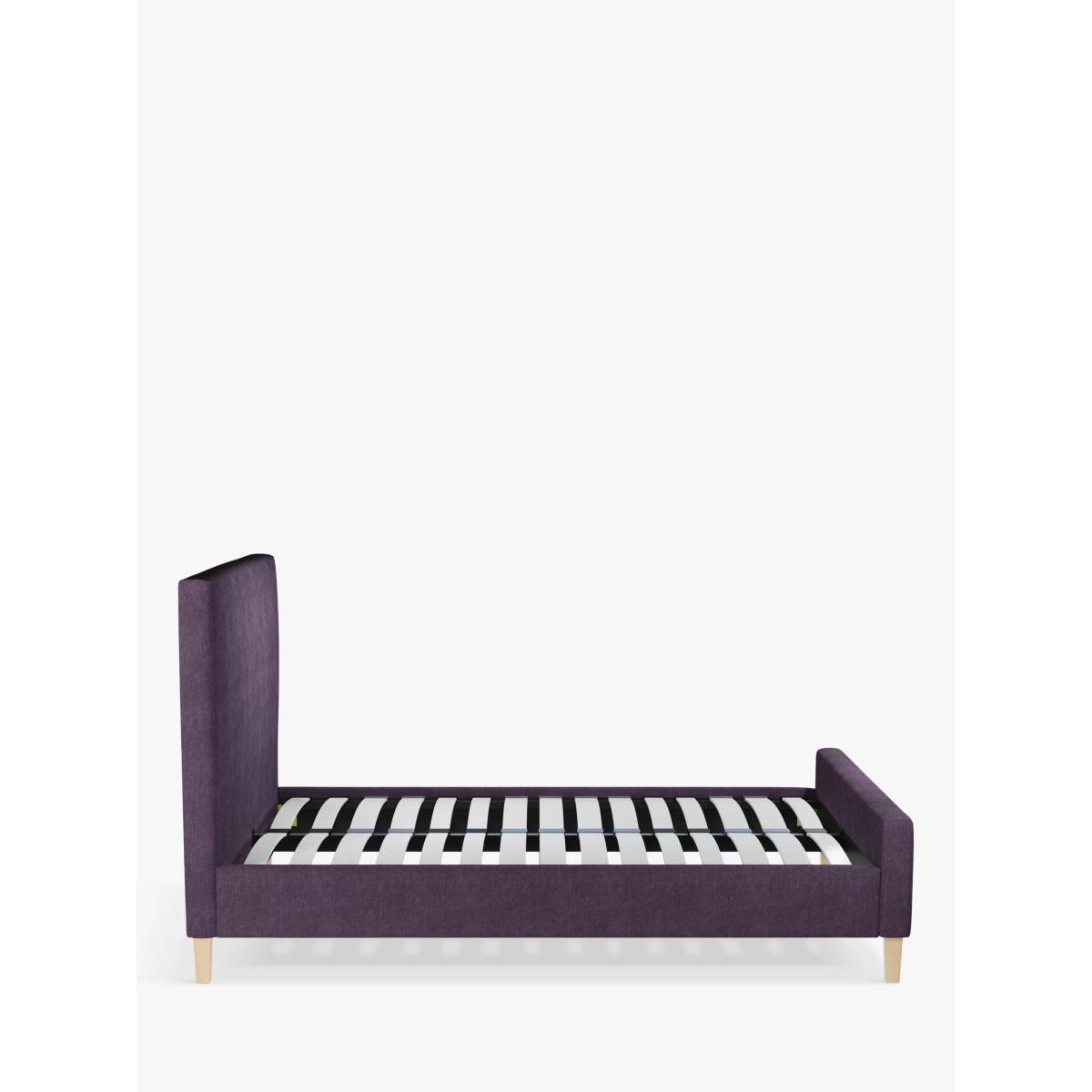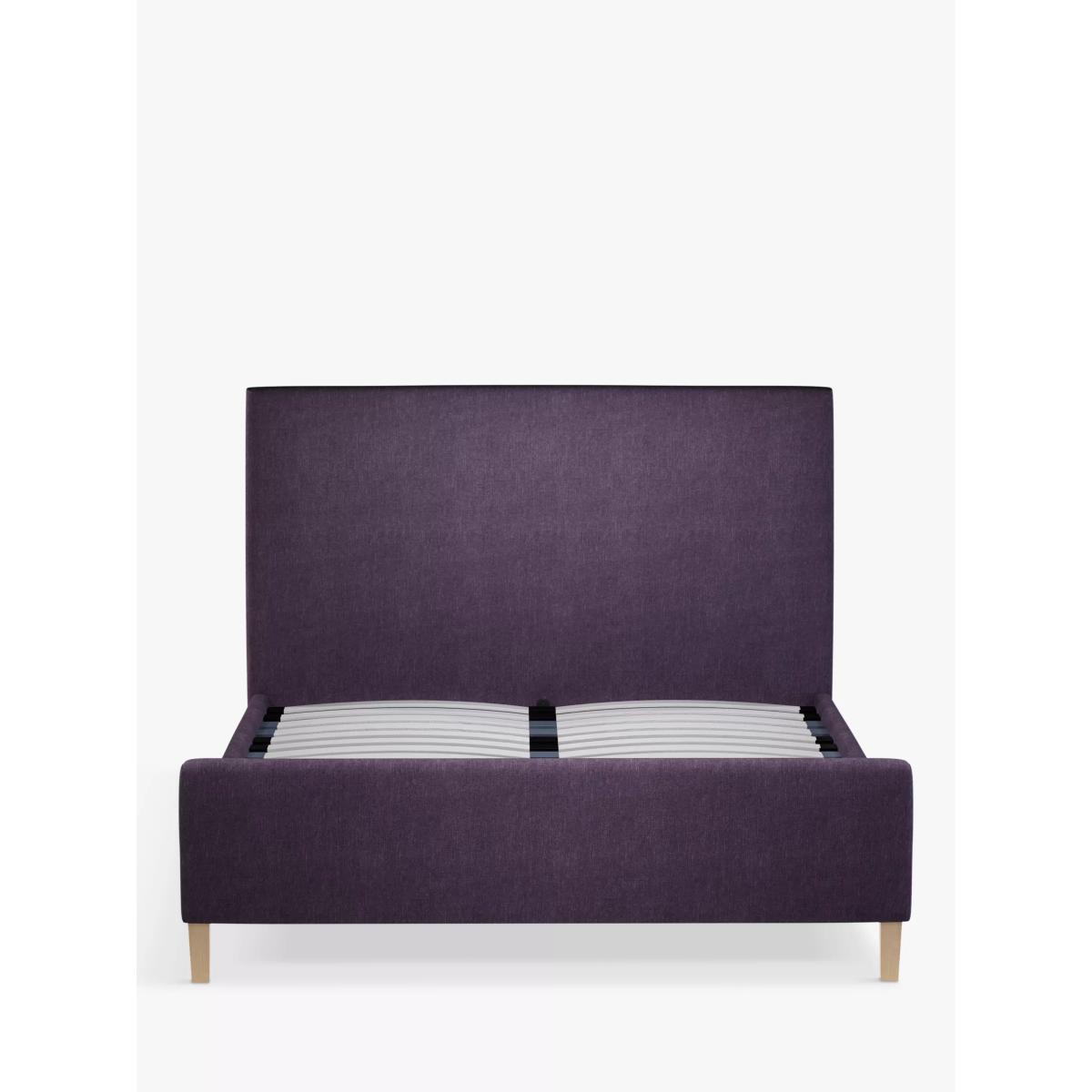 Taller in size and built with the addition of a footend, our Tall Emily bed frame is perfect for your modern bedroom. With a large headboard and minimalist wooden legs, it has a simple and clean-lined shape, and we've added supportive, sprung slats to the base. Built with Smart Slats This bed frame is designed with wider slats at the shoulders, lumbar and feet. They provide maximum support for you and your mattress so that you experience perfect spinal alignment while you sleep. The standard slat caps are black so we have added grey slat caps to ensure that you know where to place the wider slats. Choose from one of our fabrics: Our Band A fabric, Topaz is woven to create a linen-effect feel Our Band A fabric, Saga is woven with man-made fibres, making it exceptionally durable and versatile Our Band B fabric, Erin has a velvet-style, chenille feel. It's woven with man-made fibres to create a beautifully soft yarn and can appear two-tone in different lights Our Band B fabric, Opulence is a soft and luxurious velvet-like fabric Our Band B fabric, Mole is a soft and cosy woven wool-blend. Piling and bobbling may occur naturally over time Our Band B fabric, Relaxed Linen is durable, resilient and versatile, woven from man-made and natural fibres Our Band C fabric, Aquaclean Harriet is made from a short, dense pile of velvet that has a soft, brushed finish. An Aquaclean treatment has been applied to this resilient fabric which means you can banish the majority of household stains with water. The treatment covers every fibre with an invisible coating so it doesn't need to be retreated or re-coated. It will naturally develop lines, scuffs and shading over time. Want to see it first? You may want to see and get a feel for the furniture before ordering. Pop into one of our shops to see the full range of colours and fabrics on offer. We'll be able to tell you where the range you'd like to view is on display.