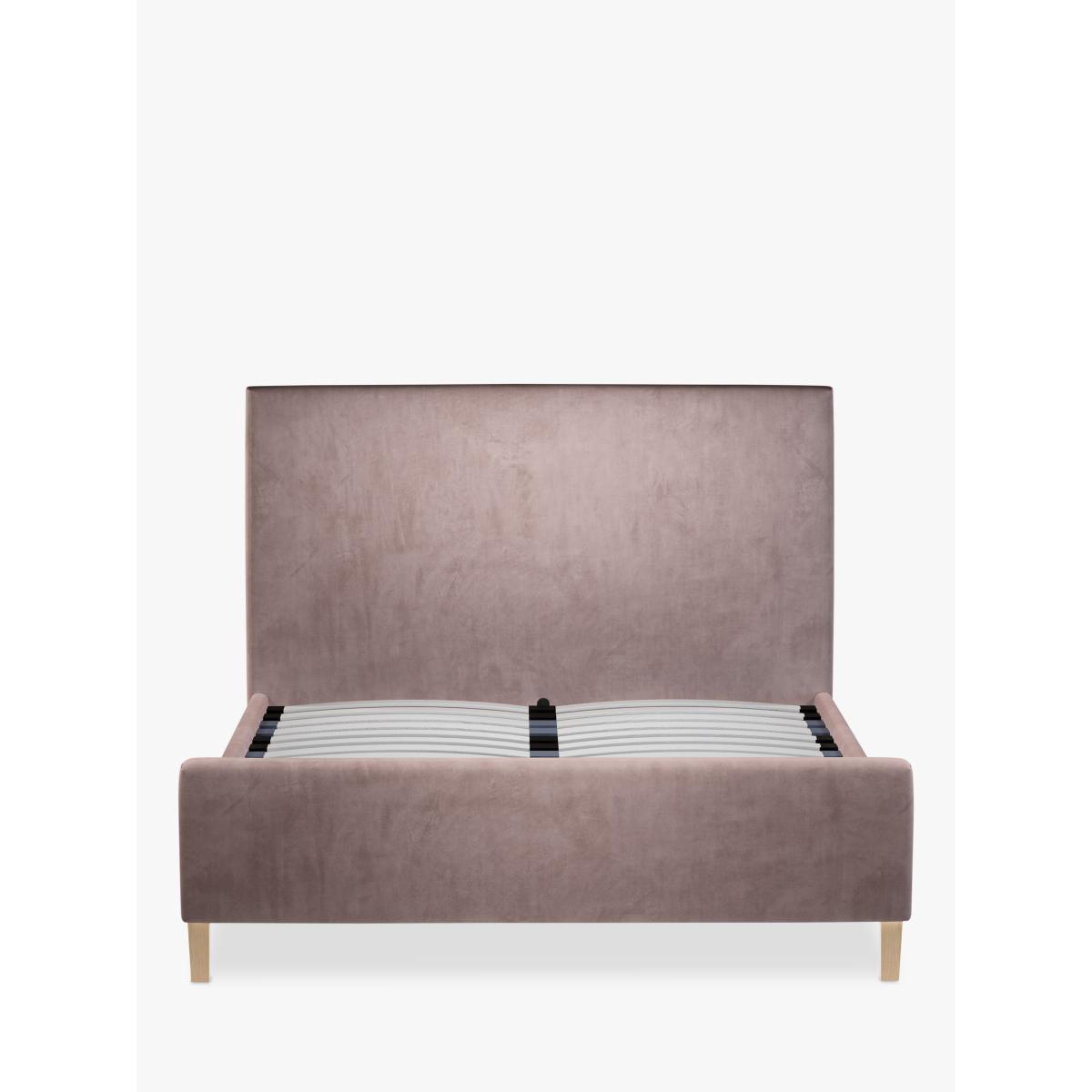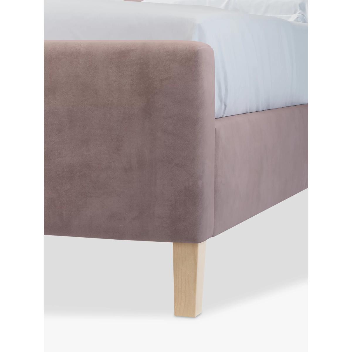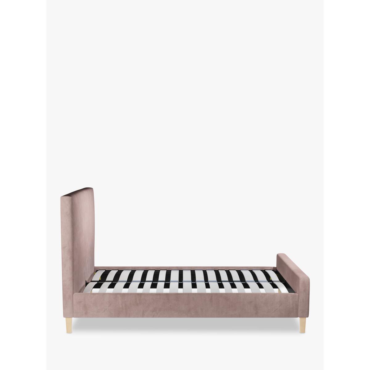Taller in size and built with the addition of a footend, our Tall Emily bed frame is perfect for your modern bedroom. With a large headboard and minimalist wooden legs, it has a simple and clean-lined shape, and we've added supportive, sprung slats to the base. Built with Smart Slats This bed frame is designed with wider slats at the shoulders, lumbar and feet. They provide maximum support for you and your mattress so that you experience perfect spinal alignment while you sleep. The standard slat caps are black so we have added grey slat caps to ensure that you know where to place the wider slats. Choose from one of our fabrics: Our Band A fabric, Topaz is woven to create a linen-effect feel Our Band A fabric, Saga is woven with man-made fibres, making it exceptionally durable and versatile Our Band B fabric, Erin has a velvet-style, chenille feel. It's woven with man-made fibres to create a beautifully soft yarn and can appear two-tone in different lights Our Band B fabric, Opulence is a soft and luxurious velvet-like fabric Our Band B fabric, Mole is a soft and cosy woven wool-blend. Piling and bobbling may occur naturally over time Our Band B fabric, Relaxed Linen is durable, resilient and versatile, woven from man-made and natural fibres Our Band C fabric, Aquaclean Harriet is made from a short, dense pile of velvet that has a soft, brushed finish. An Aquaclean treatment has been applied to this resilient fabric which means you can banish the majority of household stains with water. The treatment covers every fibre with an invisible coating so it doesn't need to be retreated or re-coated. It will naturally develop lines, scuffs and shading over time. Want to see it first? You may want to see and get a feel for the furniture before ordering. Pop into one of our shops to see the full range of colours and fabrics on offer. We'll be able to tell you where the range you'd like to view is on display.
