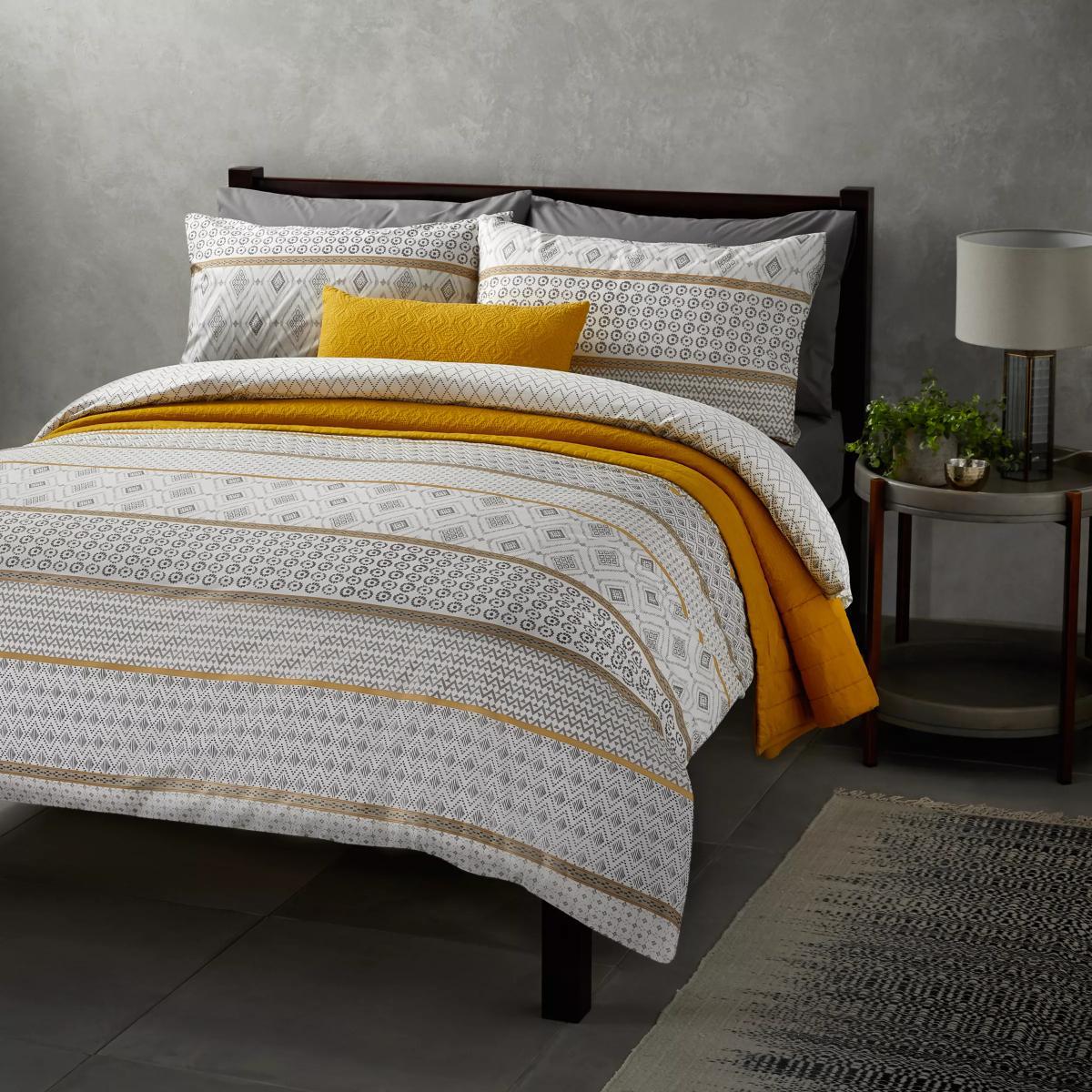 Elegant chevrons, timeless tones and luxurious textures bring touches of hotel-style glamour to your space. This bed linen is made on a dobby loom, which creates the striking geometric pattern and more textured feel. 100% Cotton The world's most widely used natural fibre, versatile cotton makes the perfect bed linen; cool, lightweight, soft and breathable. 250 Thread count This number refers to the number of threads per square inch. Typically, the higher the thread count, the softer and smoother the feel. Have you thought about sheeting? Shop here. Bedding sizes To fit duvet/pillow size (cm) Standard pillowcase, L75 x W50cm Single duvet cover, L200 x W135cm Double duvet cover, L200 x W200cm King duvet cover, L220 x W225cm Super king duvet cover, L220 x W260cm