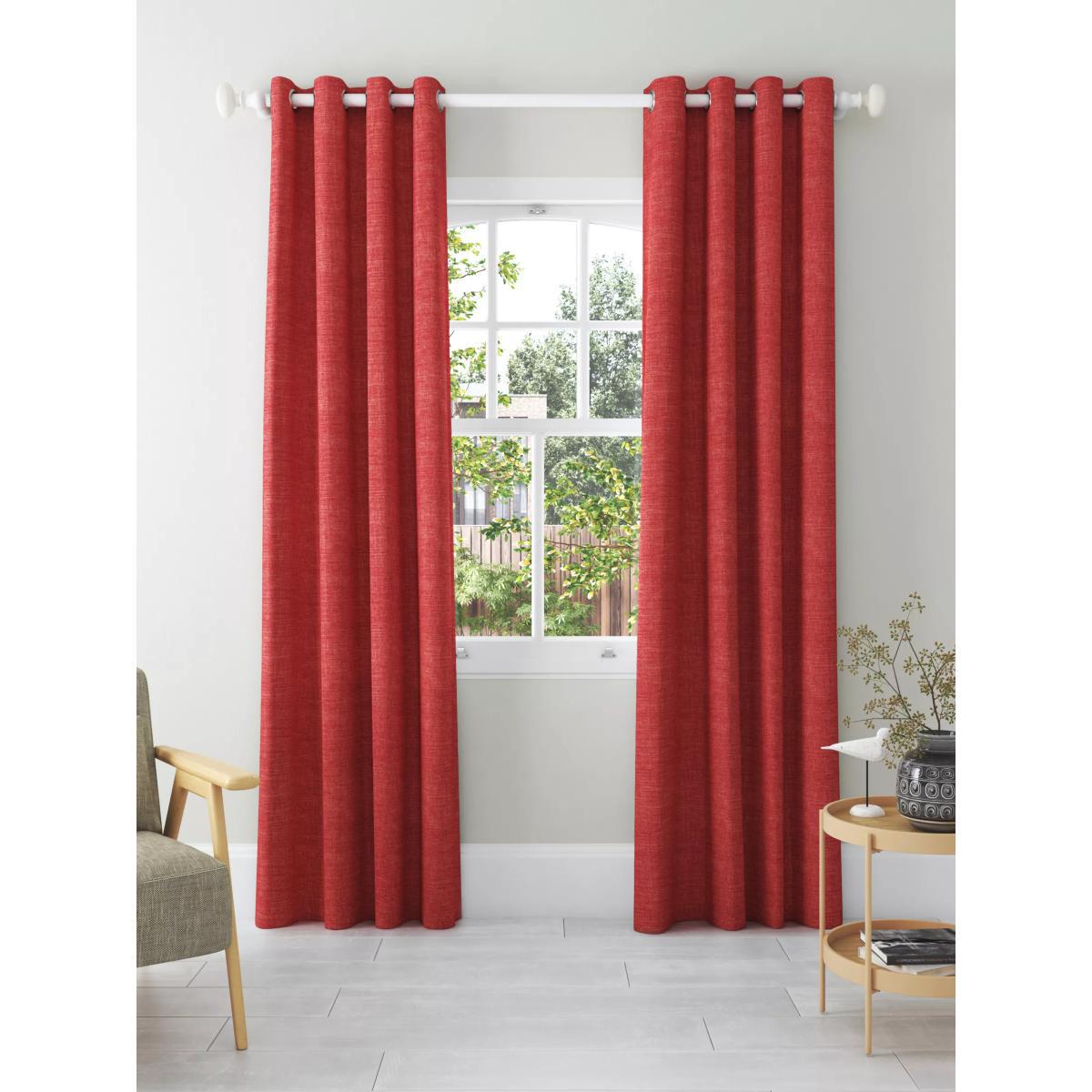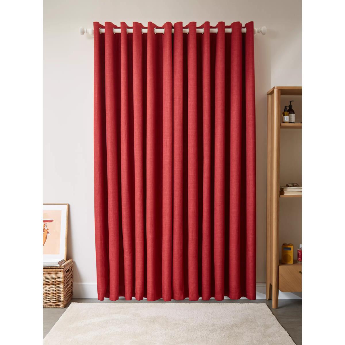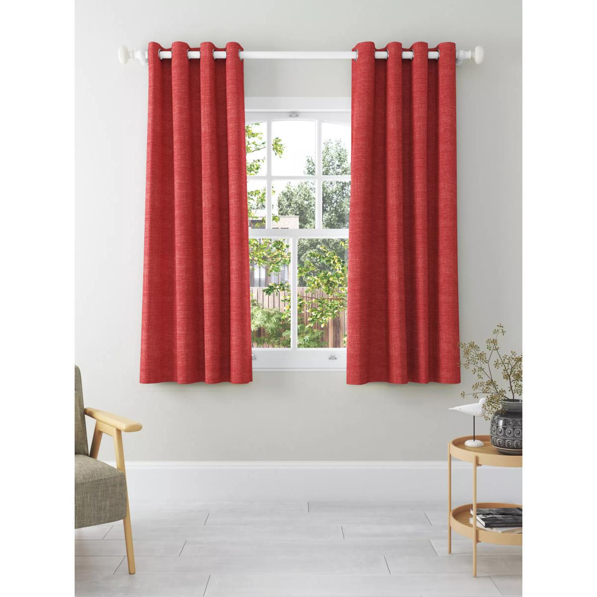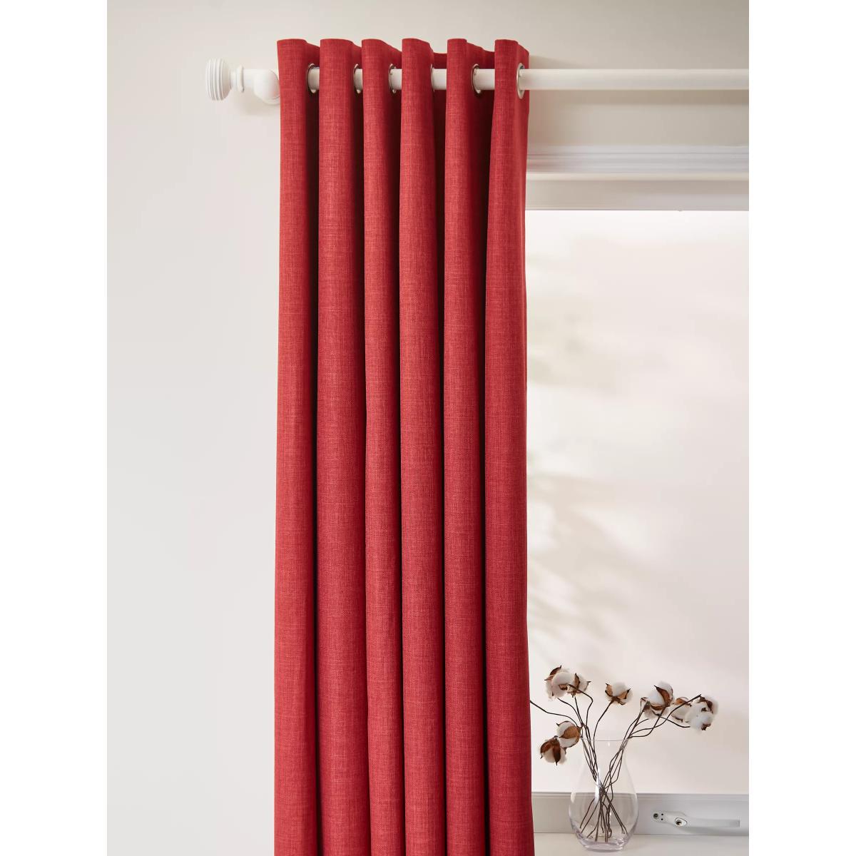 These curtains are plain-coloured with a textured weave that makes them an easy go-to option. The eyelet heading gives them a more contemporary look with large, even folds and the blackout lining both eliminates light and lends a full look to the curtains, improving the drape and enhancing the vibrancy of the pattern. Warm in winter, cool in summer As the blackout lining on these curtains blocks out sunlight they help keep your room cool as well as dark. This lining also adds an extra layer of insulation to the curtains, giving them the added benefit of being thermal. They protect against both heat loss and heat gain, regulating the temperature of your room so you're kept warm in winter and cool in summer. The width stated indicates the size of one curtain panel when laid completely flat. This pack contains two panels and the track/pole length we've recommended allows for the two panels to be gathered when the curtains are drawn. For a fuller look, increase the curtain width. One pair of 117cm width curtains will fit a curtain track/pole size 117-167cm One pair of 167cm width curtains will fit a curtain track/pole size 133-167cm One pair of 228cm width curtains will fit a curtain track/pole size 182-228cm Worth knowing... We package our curtains in recycled materials to keep them protected whilst they make their way to you. This means that when they arrive there could be some creases in them. We recommend you hang them for a few days to allow them to flatten and for the creases to fall out. If after this period your curtains still show signs of being folded then follow the ironing instructions on the back of the packaging. Be aware that each style of curtain has different ironing instructions, including heat limitations according to the fabric, so do make sure you follow the guidance provided to get the best results. Do you need a curtain pole and accessories? Shop them here.