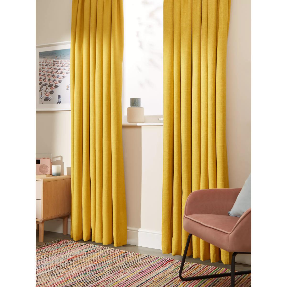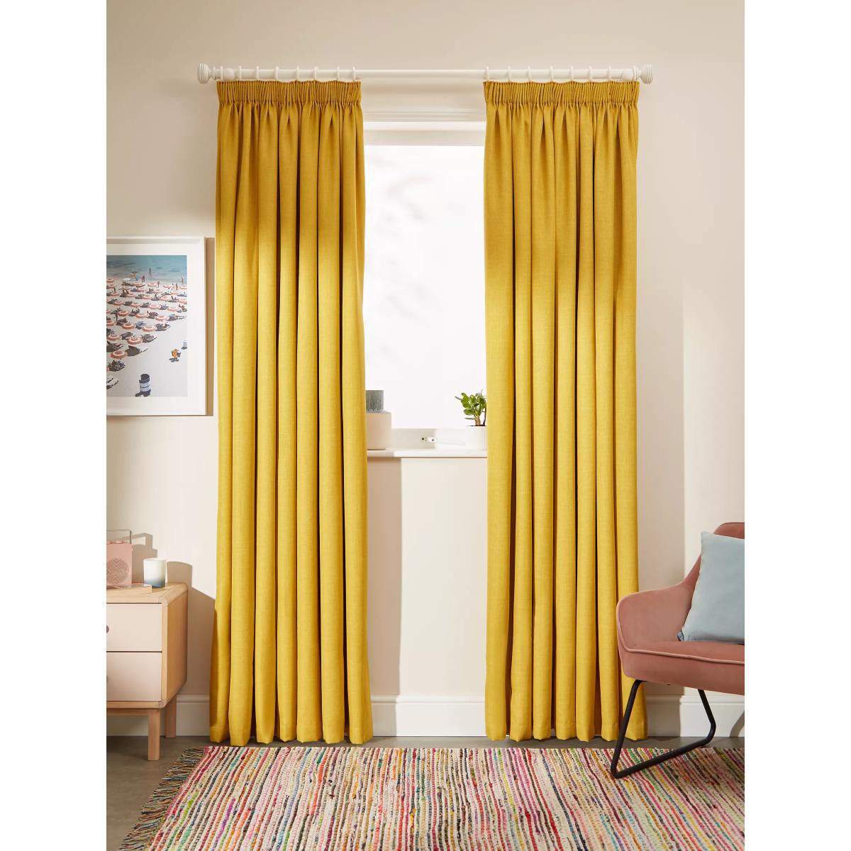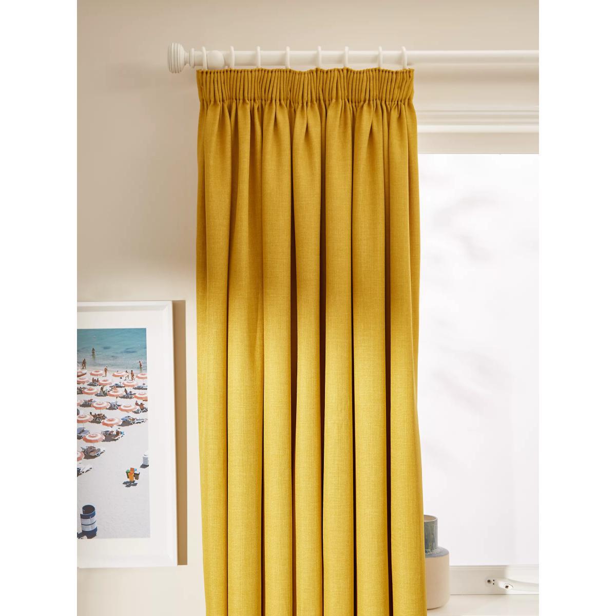 These curtains are plain-coloured with a textured weave that makes them an easy go-to option. The pencil pleat heading creates small, neat folds at the top of the curtain and the blackout lining both eliminates light and lends a full look to the curtains, improving the drape and enhancing the vibrancy of the pattern. Warm in winter, cool in summer As the blackout lining on these curtains blocks out sunlight they help keep your room cool as well as dark. This lining also adds an extra layer of insulation to the curtains, giving them the added benefit of being thermal. They protect against both heat loss and heat gain, regulating the temperature of your room so you’re kept warm in winter and cool in summer. Choosing the right size These curtains can be hung with a pole or track using curtain hooks (not included). There are three hook positions on the heading, allowing you to choose how your curtains sit against the track or pole. For example, if you're using a track you may want to use the middle or lower row of hooks to cover the track, whereas if you're using a pole you may want to use the top row of hooks so the curtains hang below the rings. The specified drop is taken from the top row of hook pockets to the bottom edge of the curtain. The width stated indicates the size of one curtain panel when laid completely flat. This pack contains two panels, and the track/pole length we've recommended allows for the two panels to be gathered when the curtains are drawn. For a fuller look, increase the curtain width. One pair of 117cm width curtains will fit a curtain track/pole size 117-167cm One pair of 167cm width curtains will fit a curtain track/pole size 133-167cm One pair of 228cm width curtains will fit a curtain track/pole size 182-228cm Worth knowing... We package our curtains in recycled materials to keep them protected whilst they make their way to you. This means that when they arrive there could be some creases in them. We recommend you hang them for a few days to allow them to flatten and for the creases to fall out. If after this period your curtains still show signs of being folded then follow the ironing instructions on the back of the packaging. Be aware that each style of curtain has different ironing instructions, including heat limitations according to the fabric, so do make sure you follow the guidance provided to get the best results. Do you need a curtain pole and accessories?