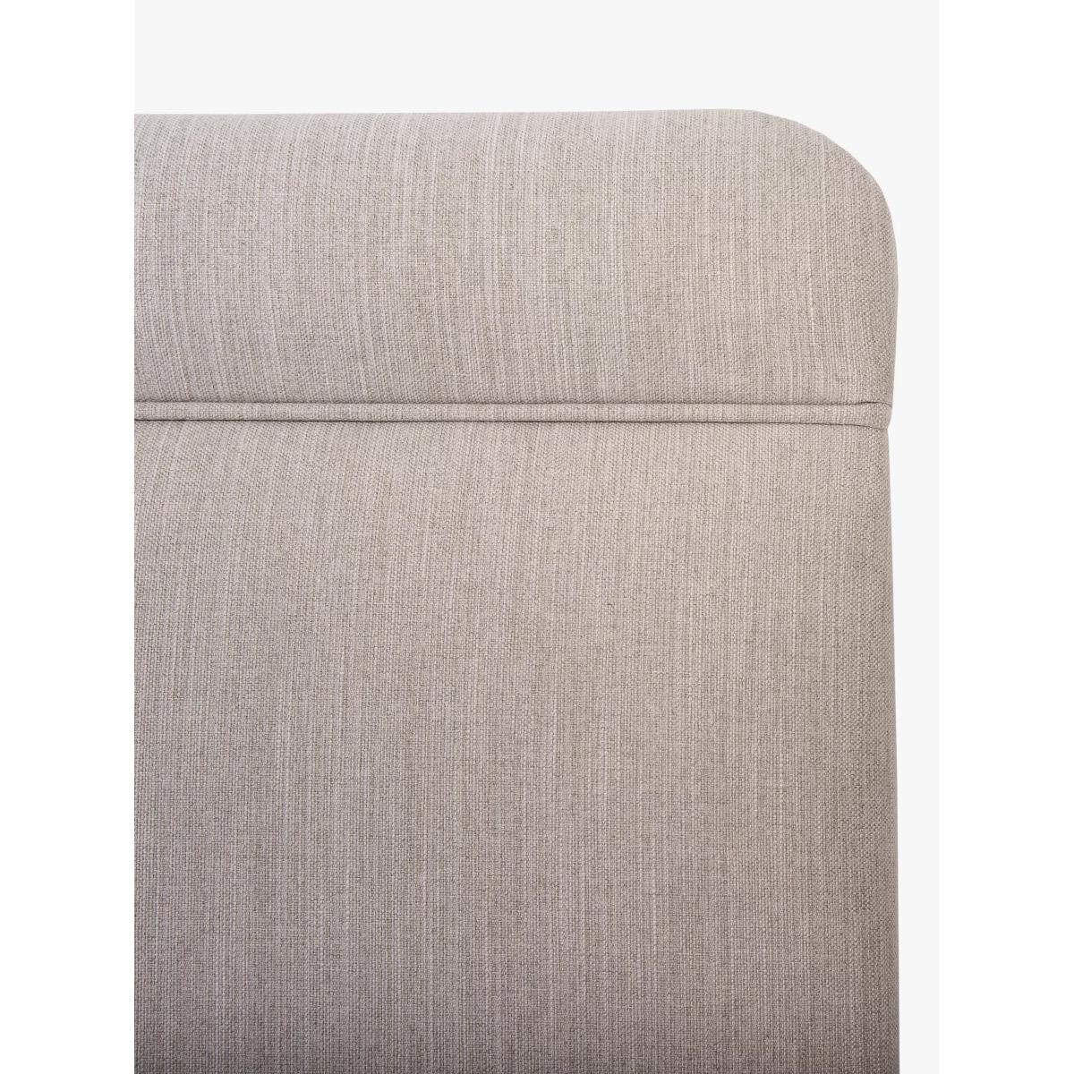 Made in the UK, our Theale headboard has a simple design with curved edges and a seam detail across the top. It's a modern and well-padded attachment for your upholstered divan base and the sturdy wooden slats allow you to fit it easily at your desired height. Choose from one of our fabrics: Our Band A fabric, Canvas is a durable fabric with a textured feel and it's ideal for styling with bold colours and darker shades Our Band A fabric, Topaz is woven to create a linen-effect feel Want to see it first? You may want to see and get a feel for the furniture before ordering. Pop into one of our shops to see the full range of colours and fabrics on offer. We'll be able to tell you where the range you'd like to view is on display.