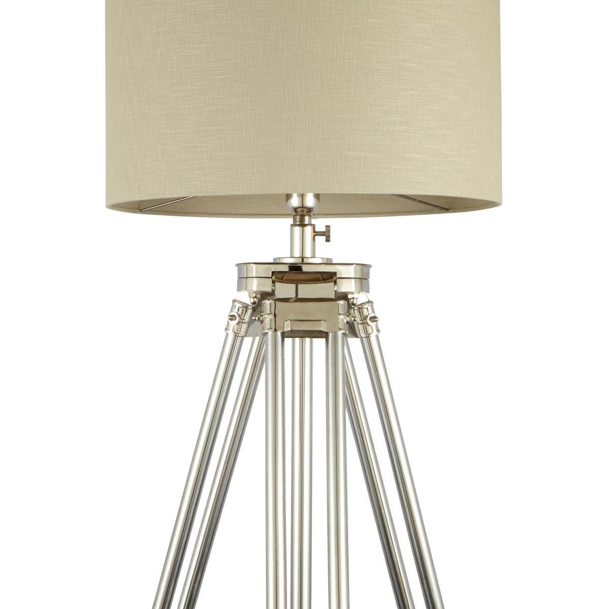Fusing natural materials with modern styling, our Tommy floor lamp is a functional piece for your living spaces. Its classic tripod silhouette is crafted from Indian wood and accented with shiny nickel for a restorative design flair. Complemented with a polycotton fabric lampshade, it's easy to adjust the height of this piece so it will seamlessly tie in with your home decor.