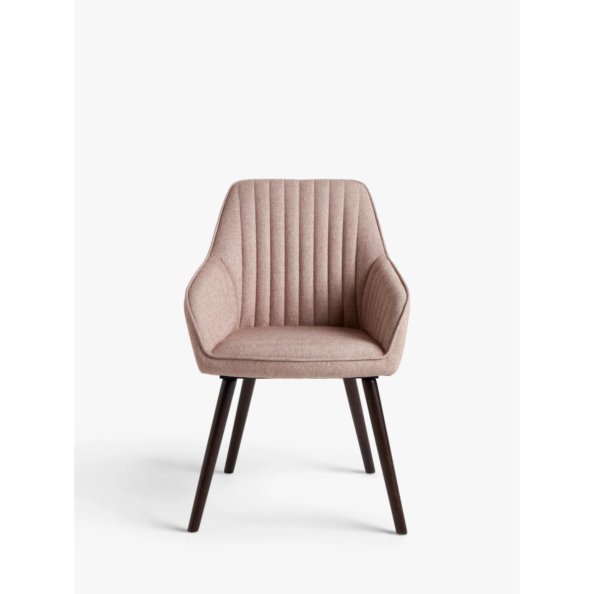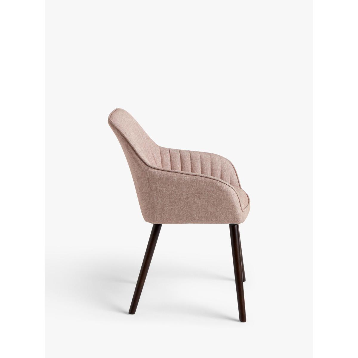 Designed for comfort and supplied as a pair, these dining chairs are upholstered in a soft fabric and foam-filled for extra cushioning. The supportive backrest and integrated armrests encourage a better posture and the splayed legs honour recognisable Scandi-inspired shapes. We've made them from sturdy red oak in an espresso brown lacquer for a durable finish and sleek design contrast. Want to see it first? You may want to see and get a feel for the furniture in one of our shops before ordering. We'll be able to tell you where the range you'd like to view is on display.