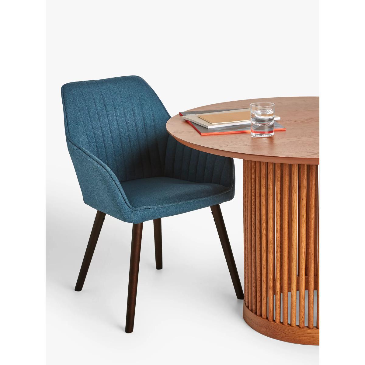 Designed for comfort and supplied as a pair, these dining chairs are upholstered in a soft fabric and foam-filled for extra cushioning. The supportive backrest and integrated armrests encourage a better posture and the splayed legs honour recognisable Scandi-inspired shapes. We've made them from sturdy red oak in an espresso brown lacquer for a durable finish and sleek design contrast. Want to see it first? You may want to see and get a feel for the furniture in one of our shops before ordering. We'll be able to tell you where the range you'd like to view is on display.