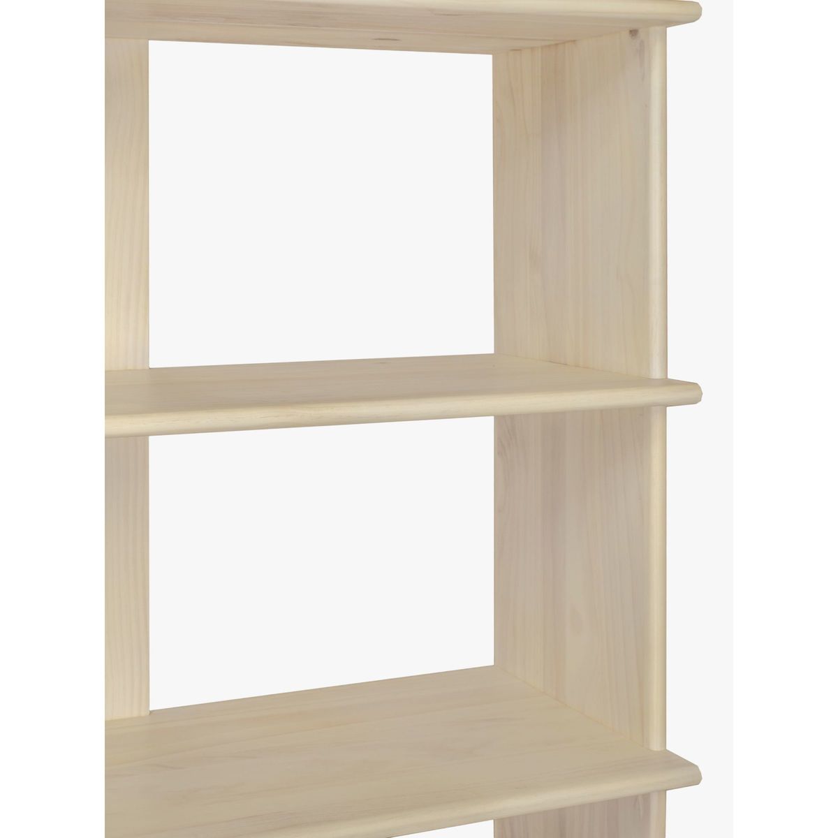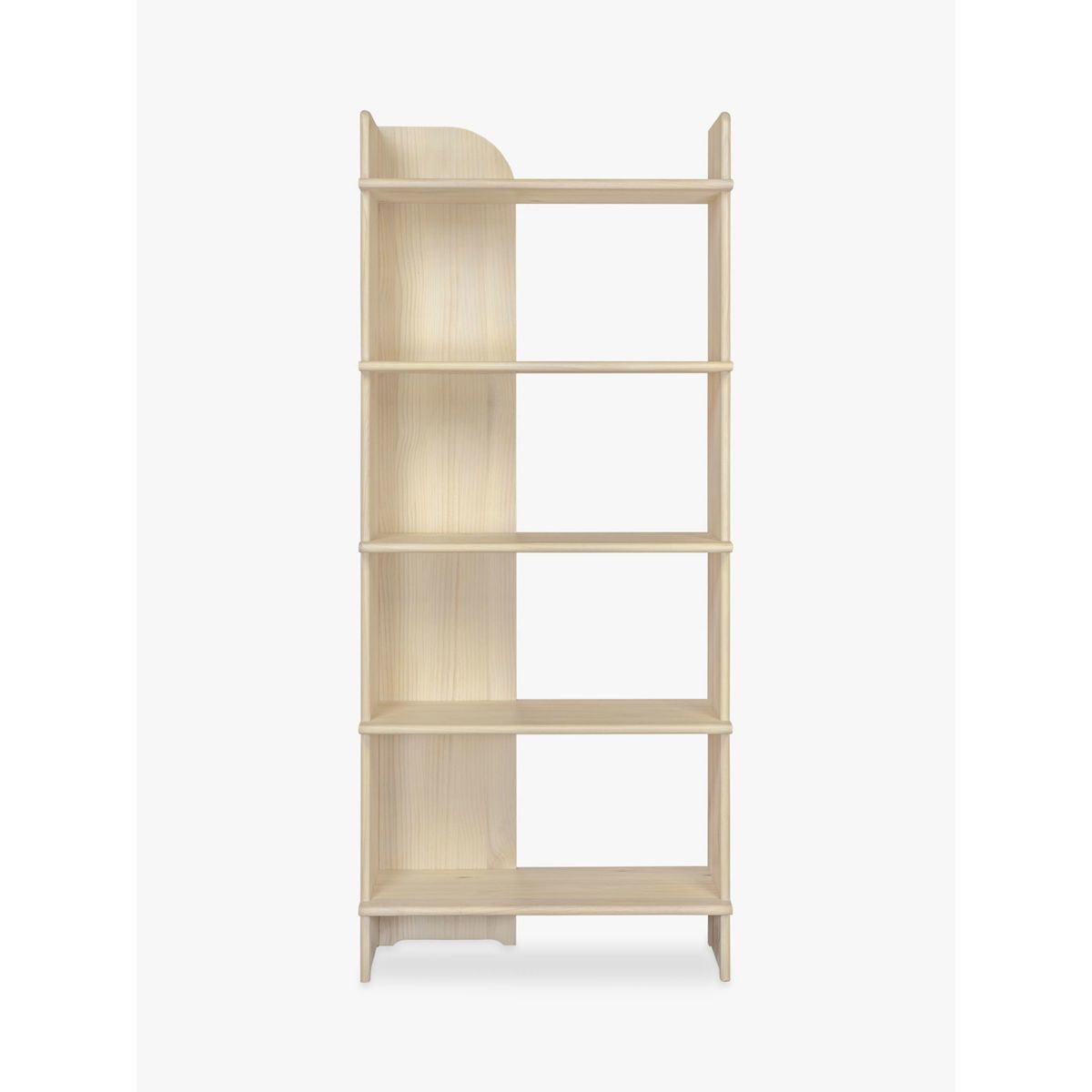 Curate a calm and relaxing environment at home with furniture that showcases neutral tones and soft, curved shapes. Our in-house Design Studio created the Tranquil range to enhance a minimalist, Scandi-inspired theme for your interior. This bookcase is made from solid pine wood, with minimalist knots and grains to keep the finish clean and contemporary. It's coated in a lacquer for durability and features five spacious shelves, each designed with curved edges. The back of the frame is semi-exposed for a modern look. You can place it in front of a statement painted wall to let the colour seep through. Want to see it first? You may want to see and get a feel for the furniture in one of our shops before ordering. We'll be able to tell you where the range you'd like to view is on display.
