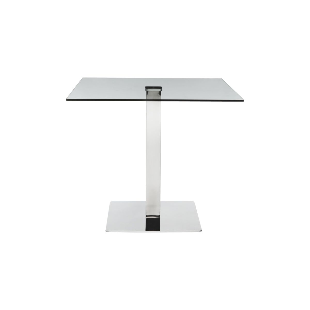 Contemporary and minimalist in design, our Tropez square dining table creates an instant sense of light and space. Made with 10mm tempered glass that rests atop a solid 201 grade polished stainless steel leg, it comfortably seats up-to four diners and is ideal for clean and simplistic interior styles.